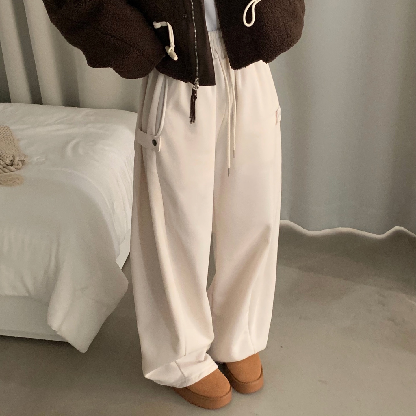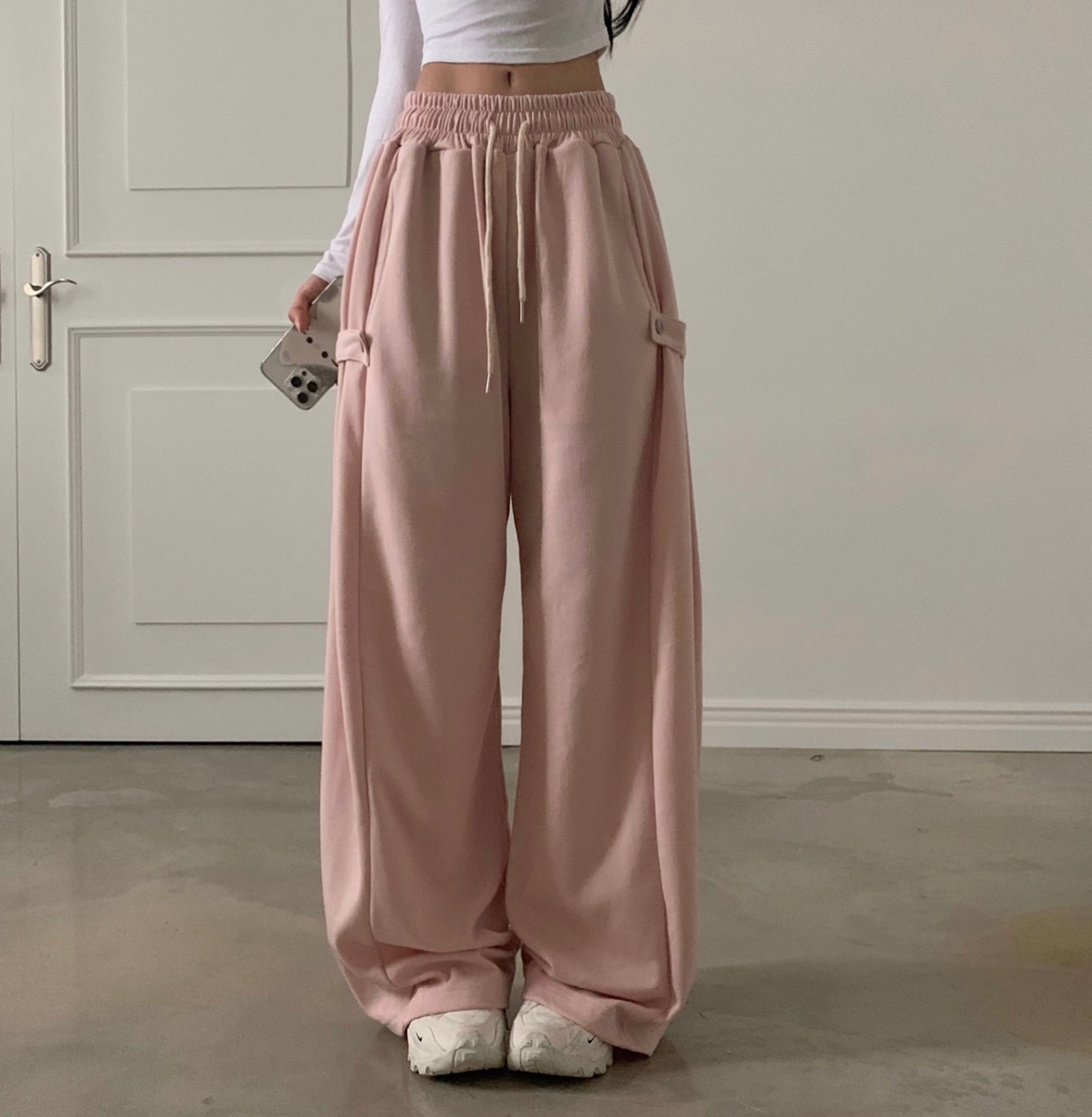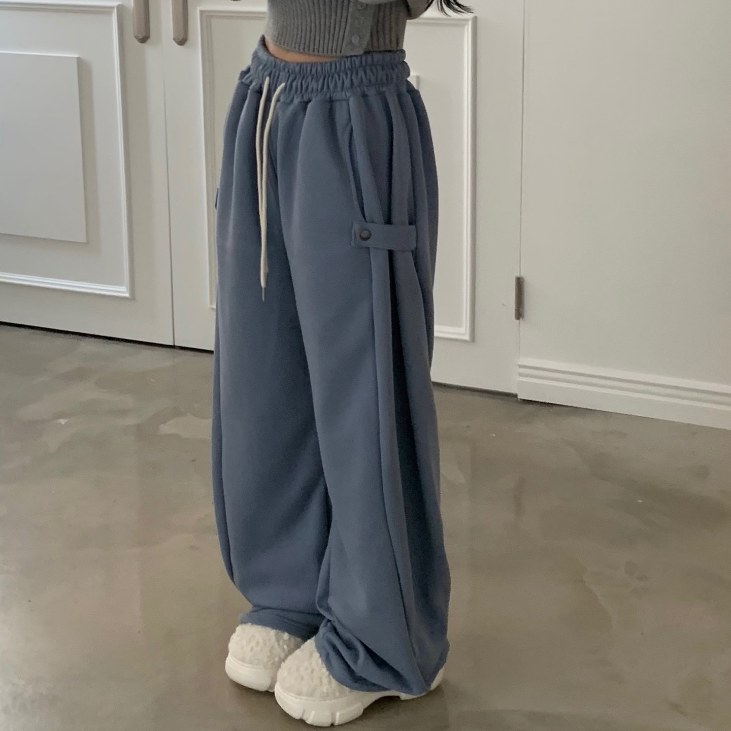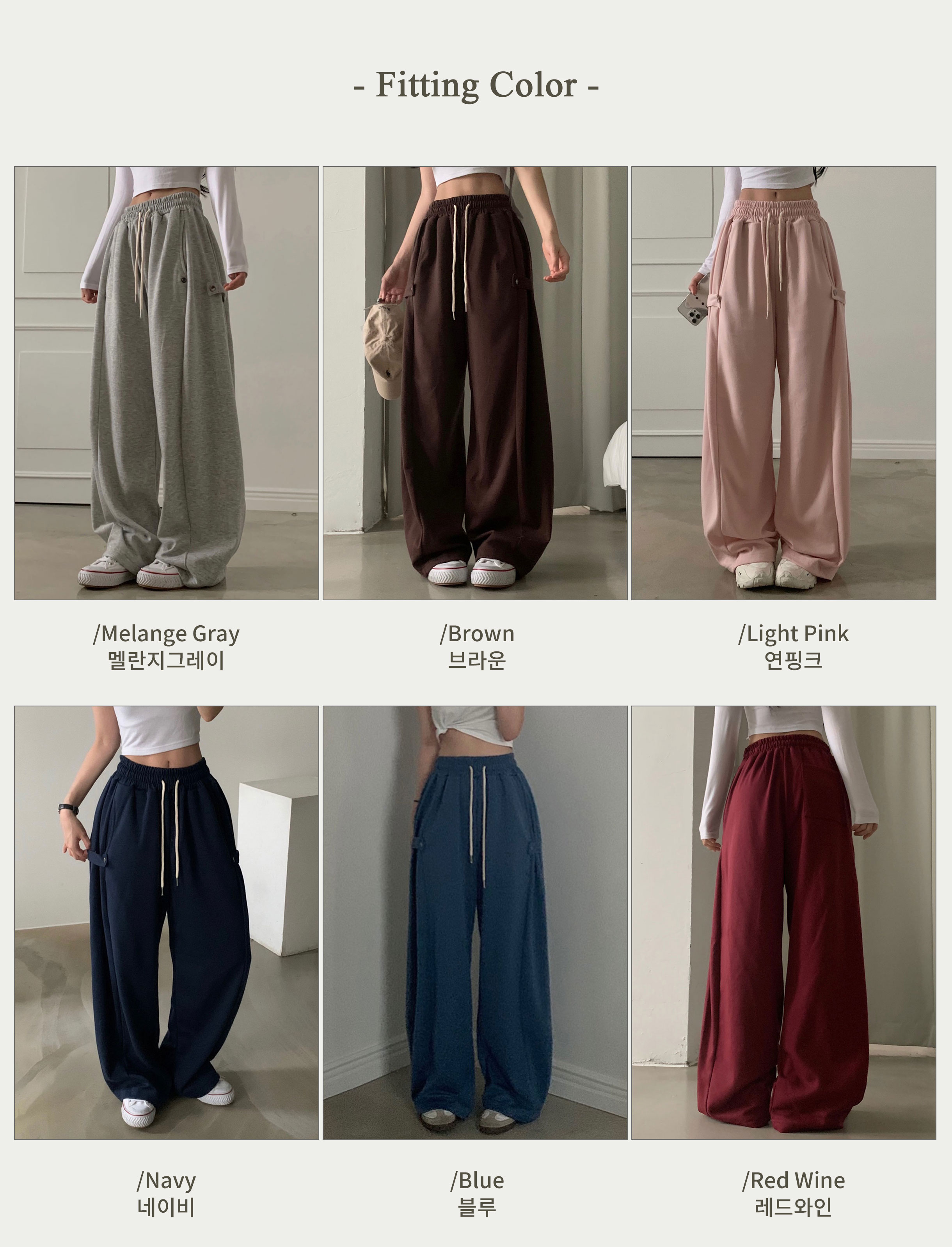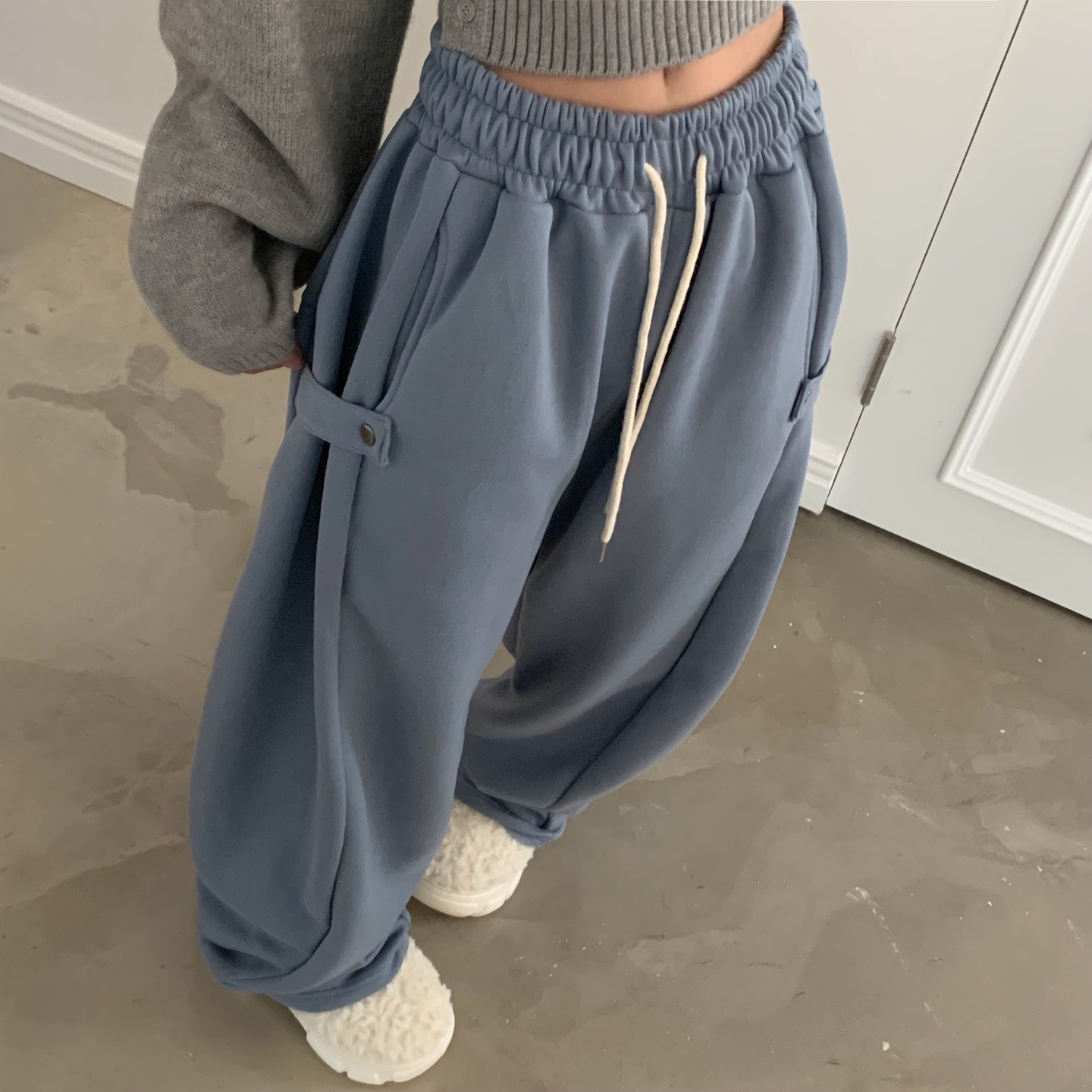 (9color)ボタンロングワイドトレーニングゴムパンツ