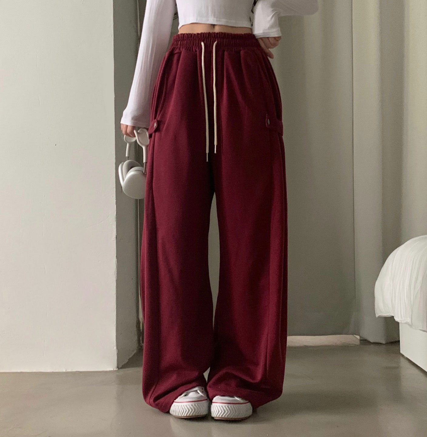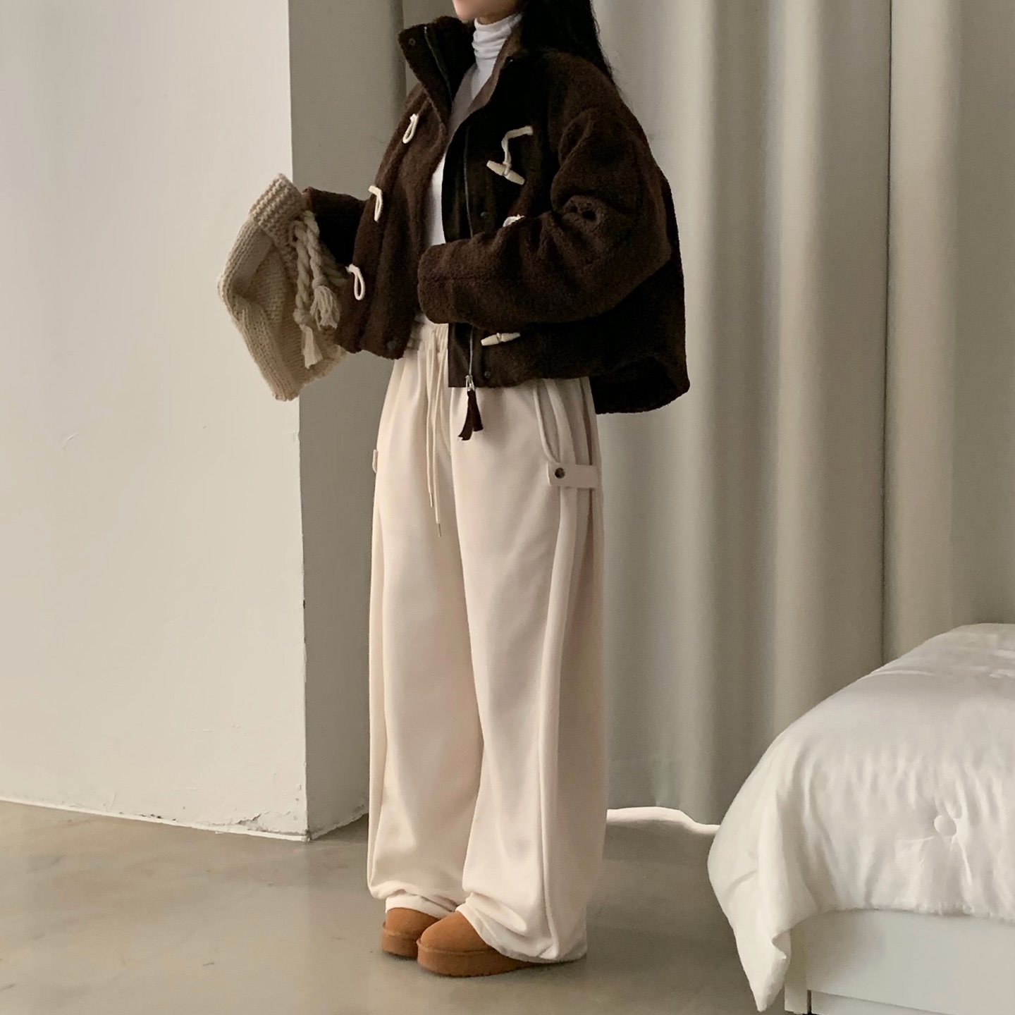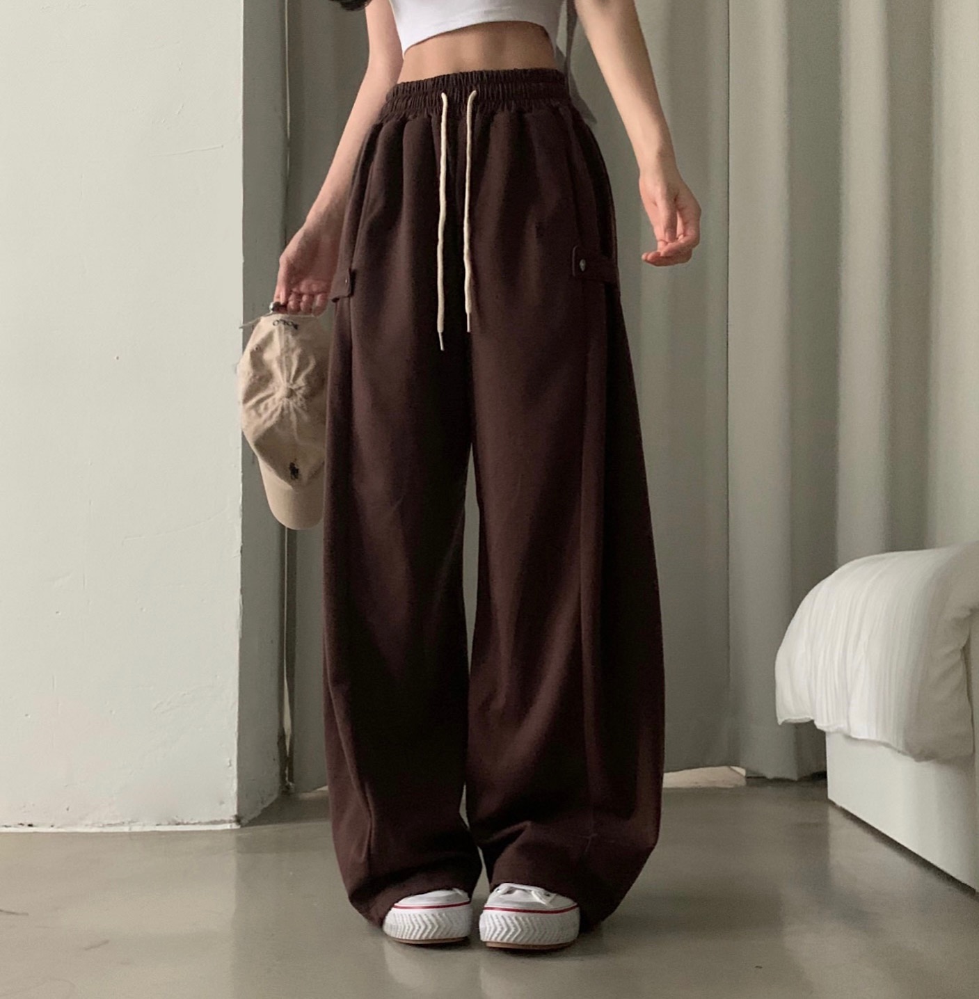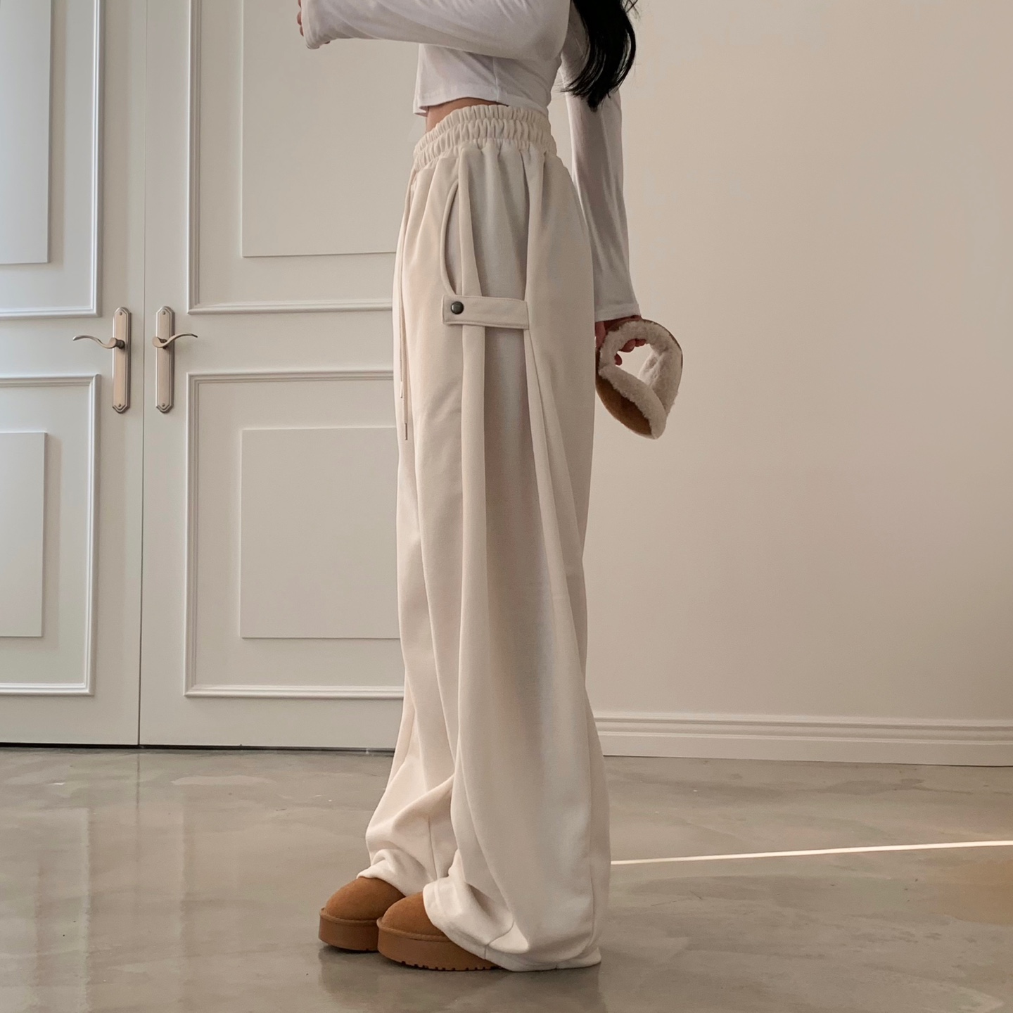 (9color)ボタンロングワイドトレーニングゴムパンツ