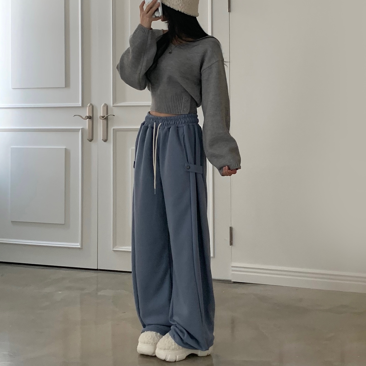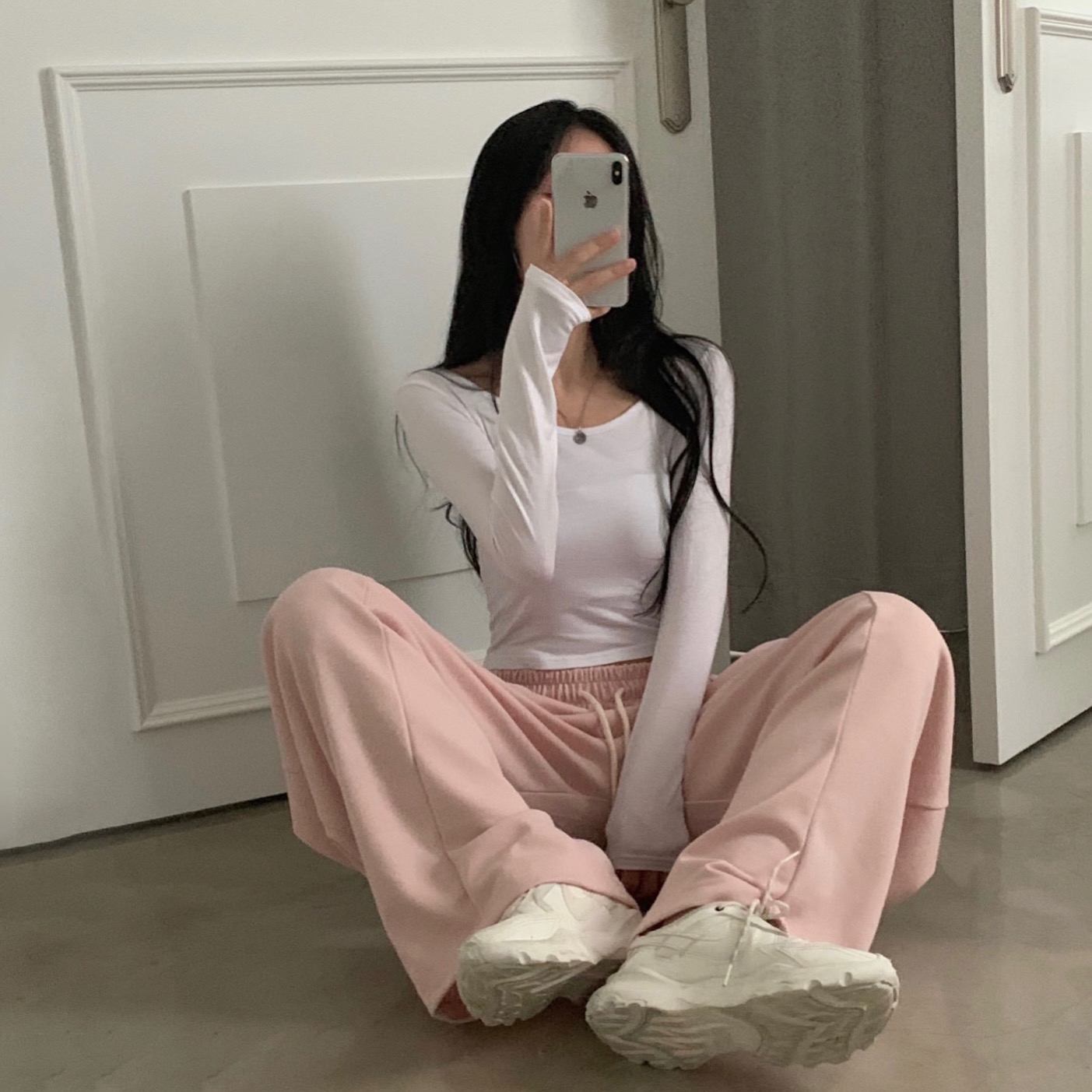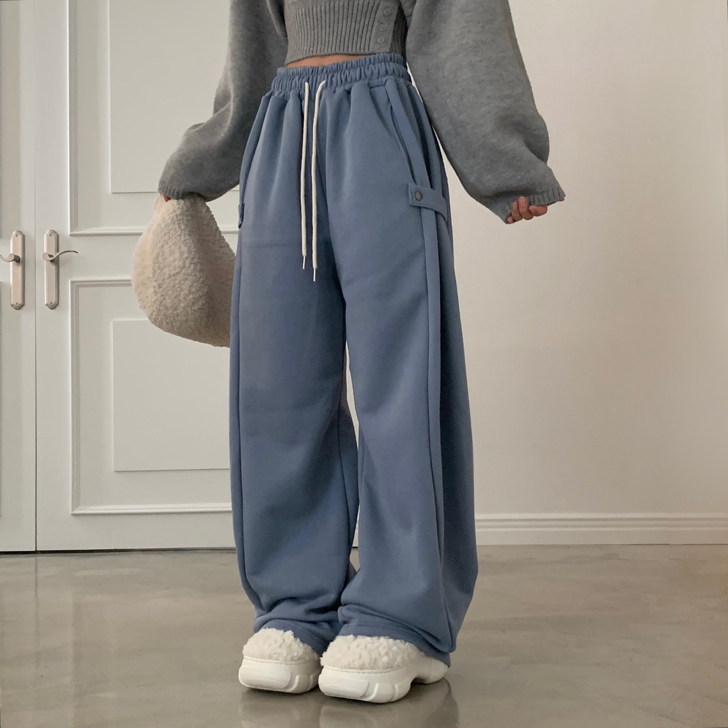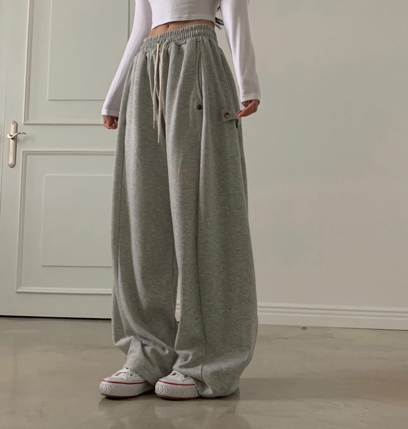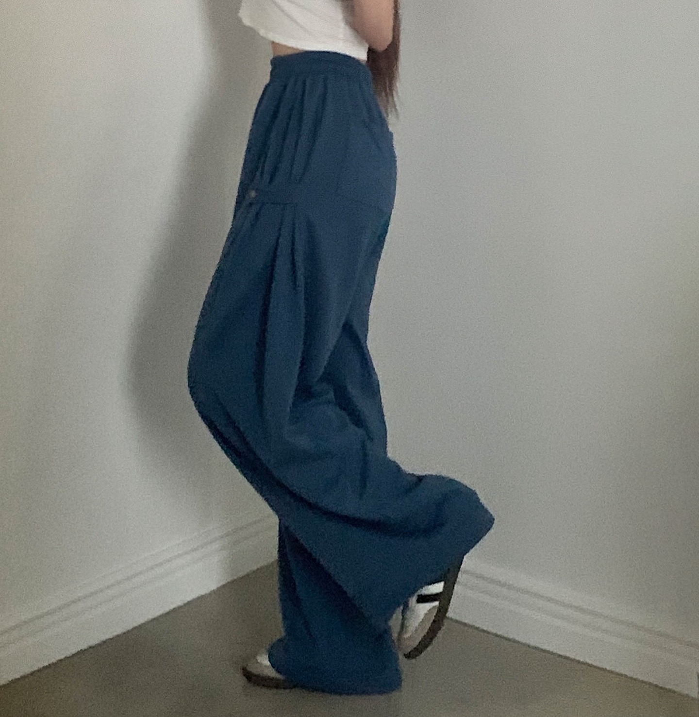 (9color)ボタンロングワイドトレーニングゴムパンツ