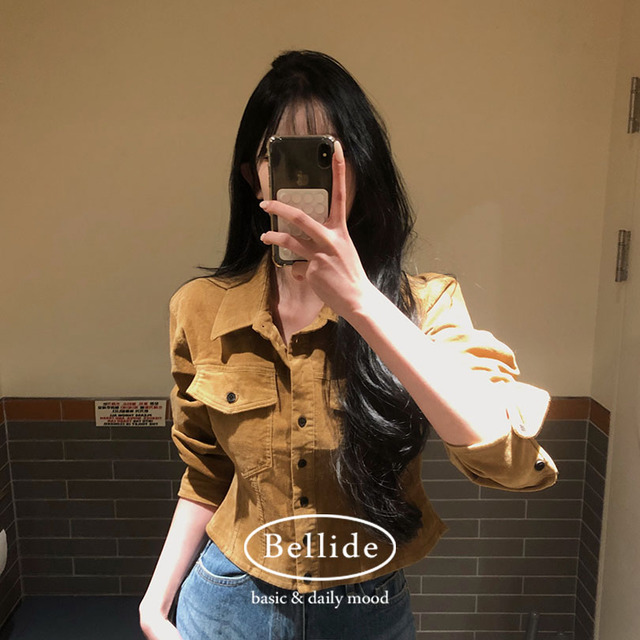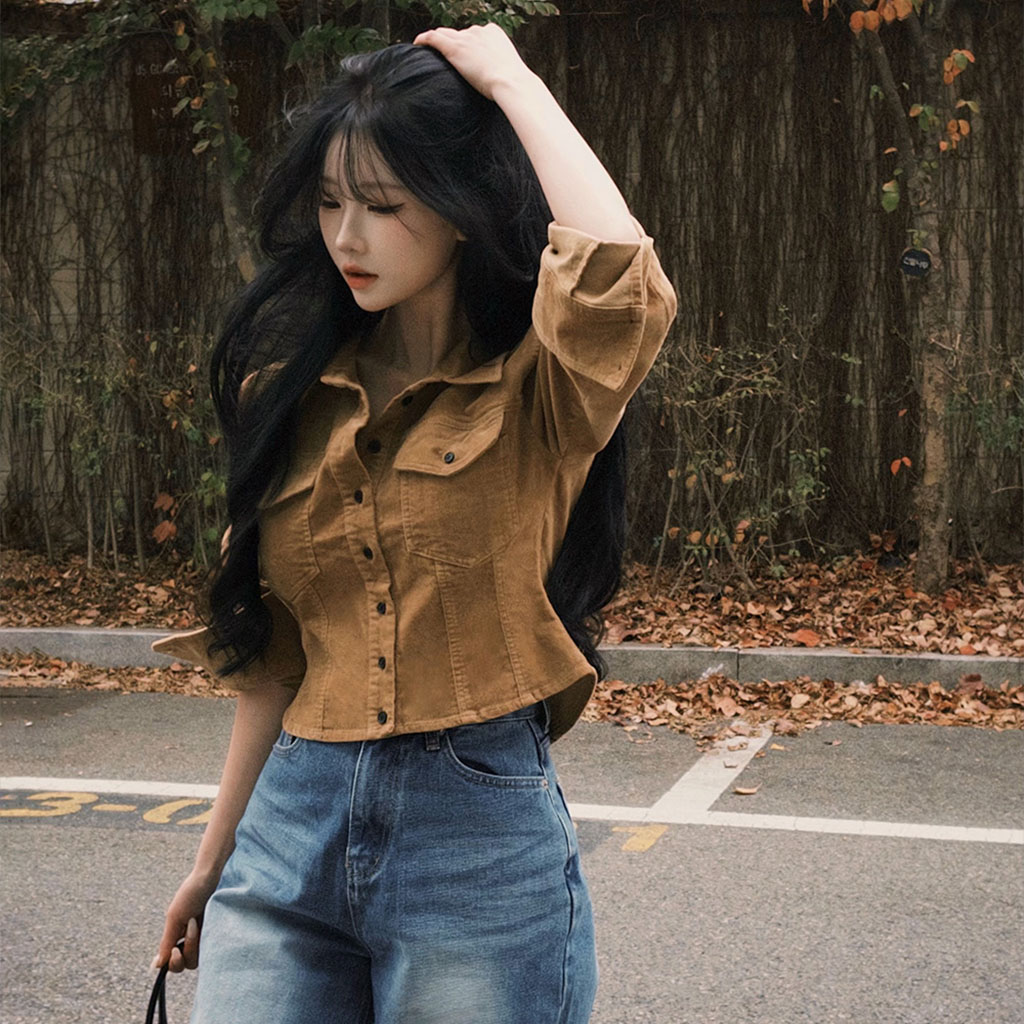 (ORIGINAL) ナッツ、スエードピンタックセミクロップドブラウス