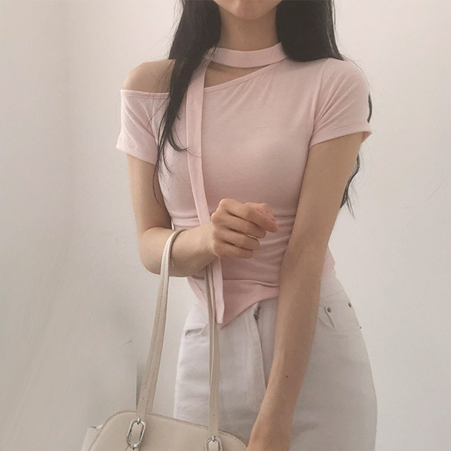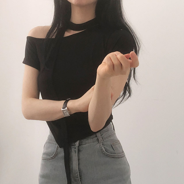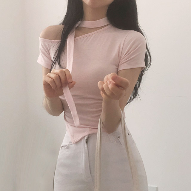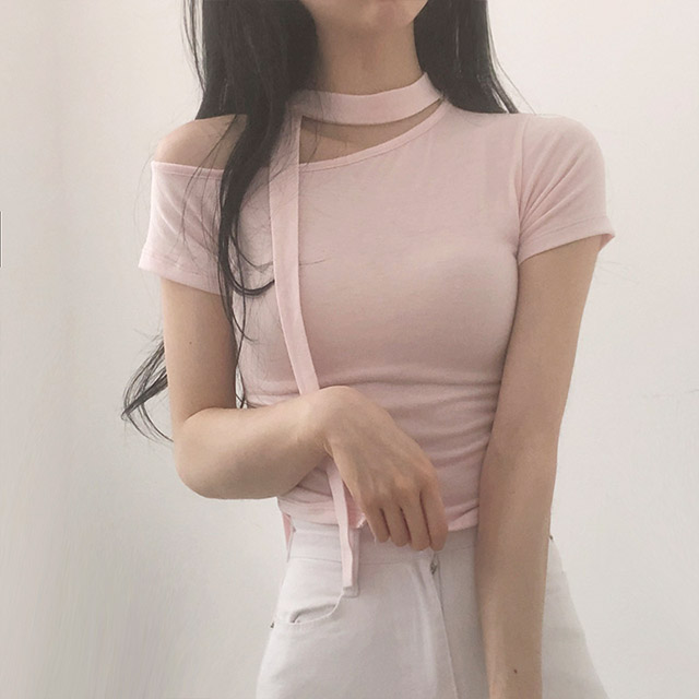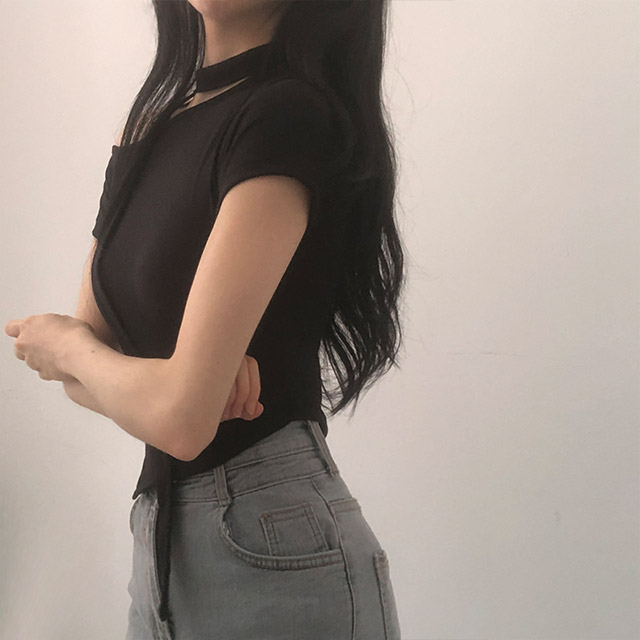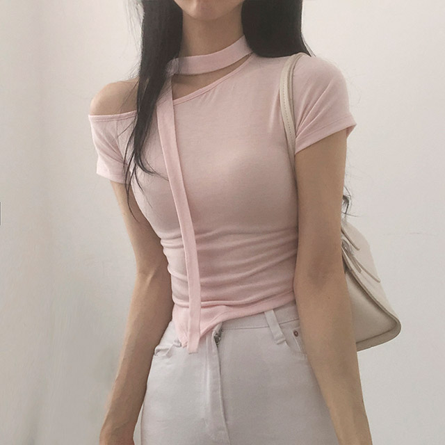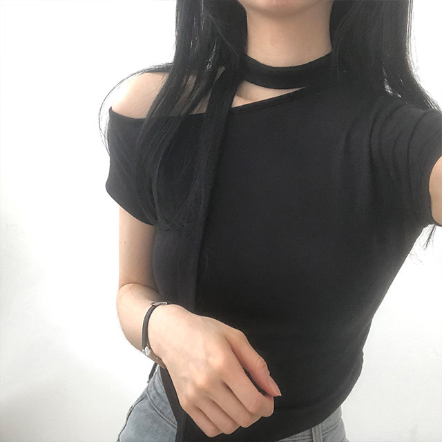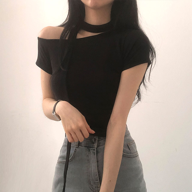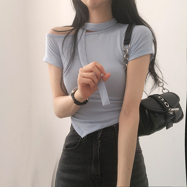 [マフラーセット] 斜めストライプクロップド半袖Tシャツ