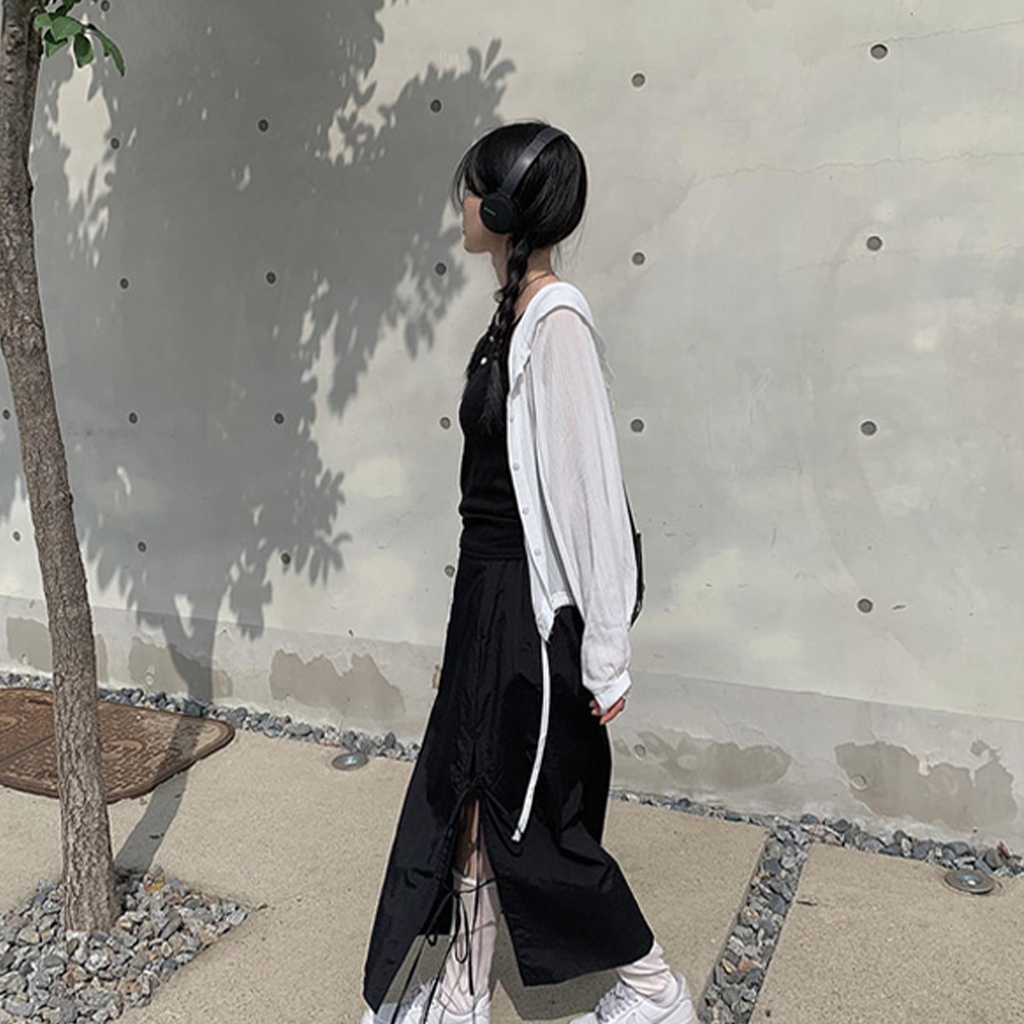 サイドスリットリボンナイロンロングスカート (3color)