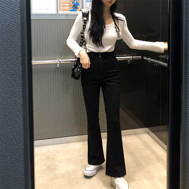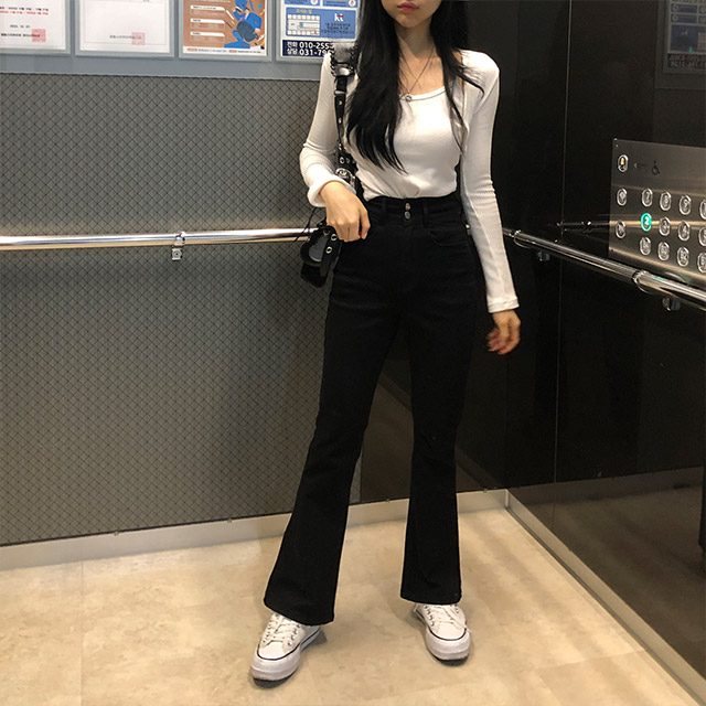 ハイウエストスパンブーツカットパンツ