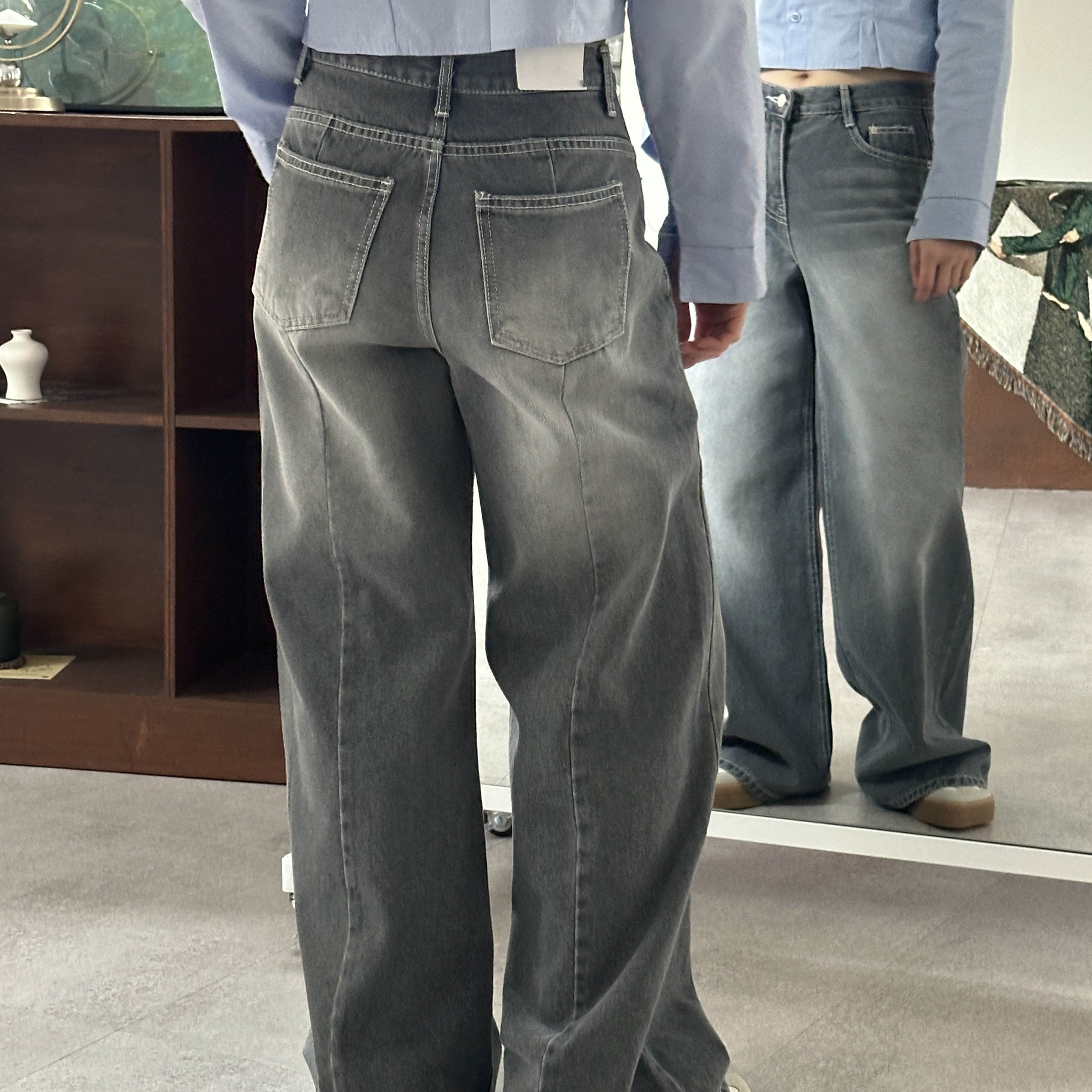 ウォッシュグレーデニムワイドロングパンツ[1color]