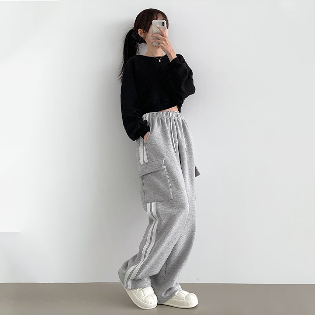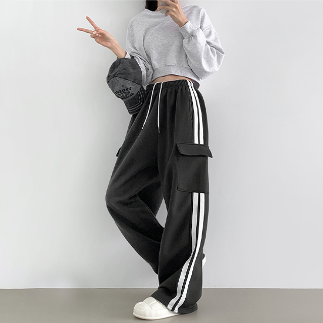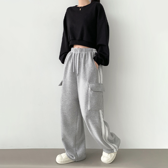 [裏地起毛] カーゴゴムロングワイドトレーニングパンツ