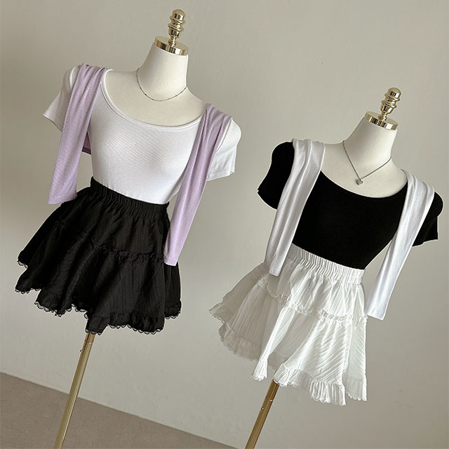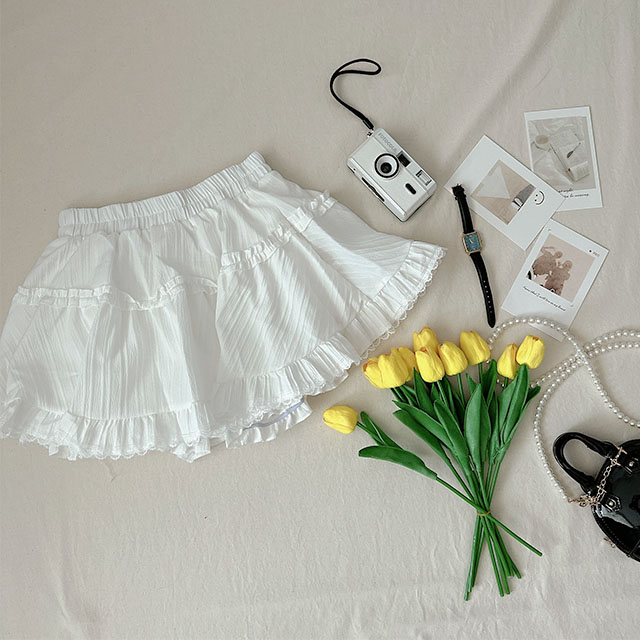 [パンツ型裏地付き] ゴムティアードフレアスカート