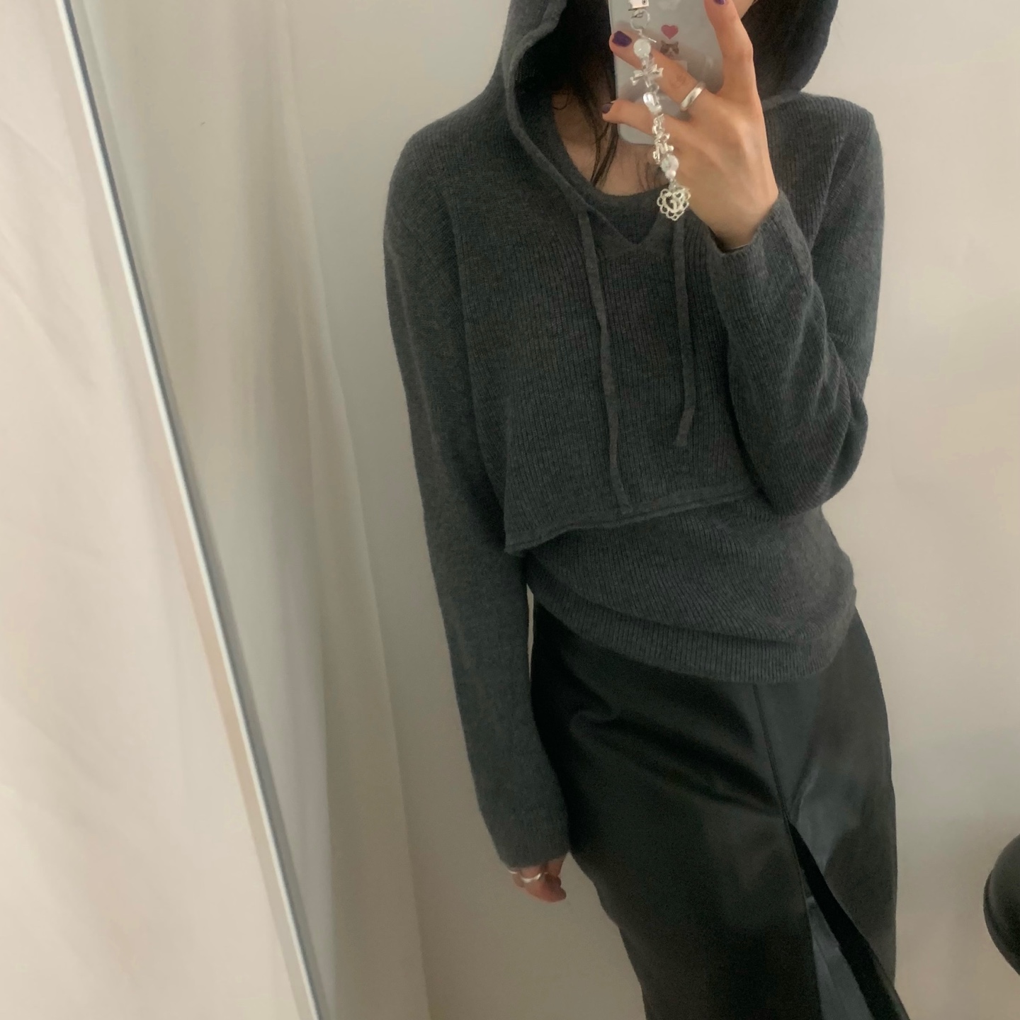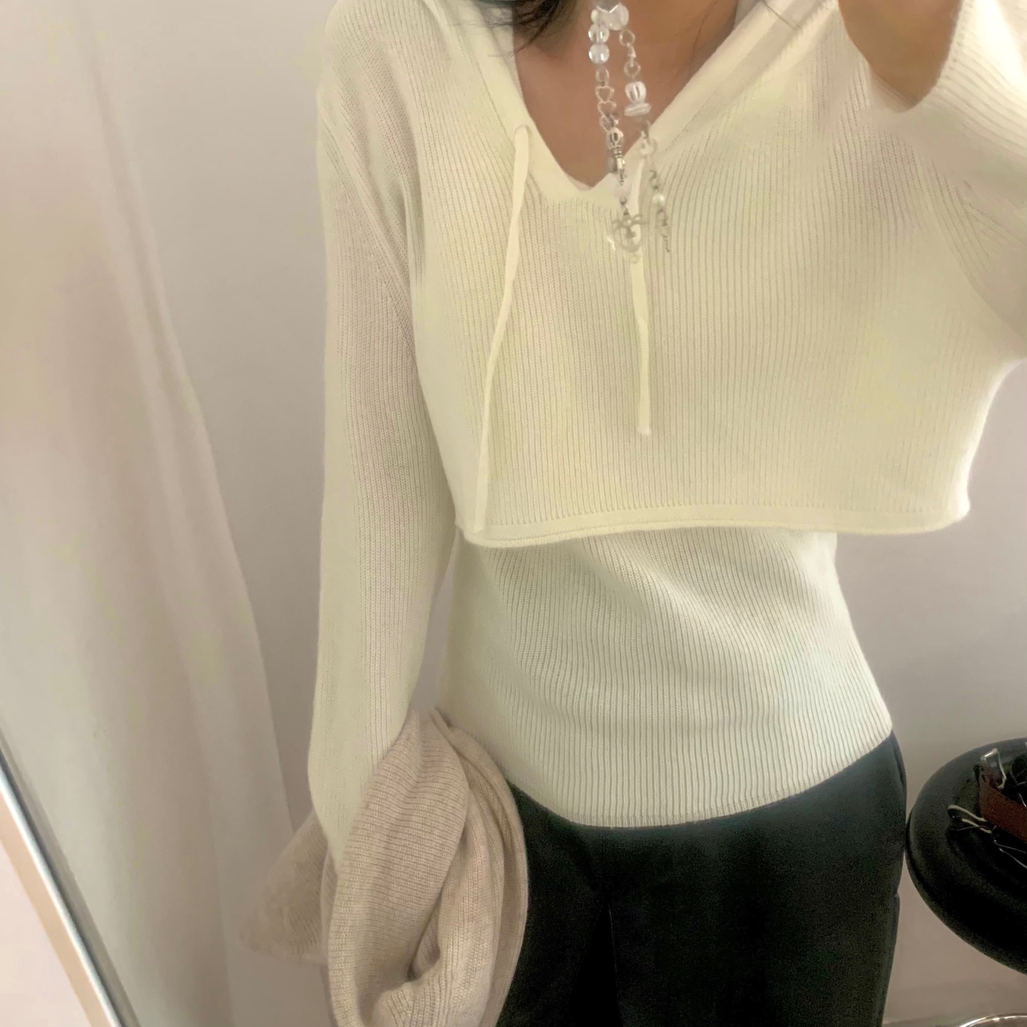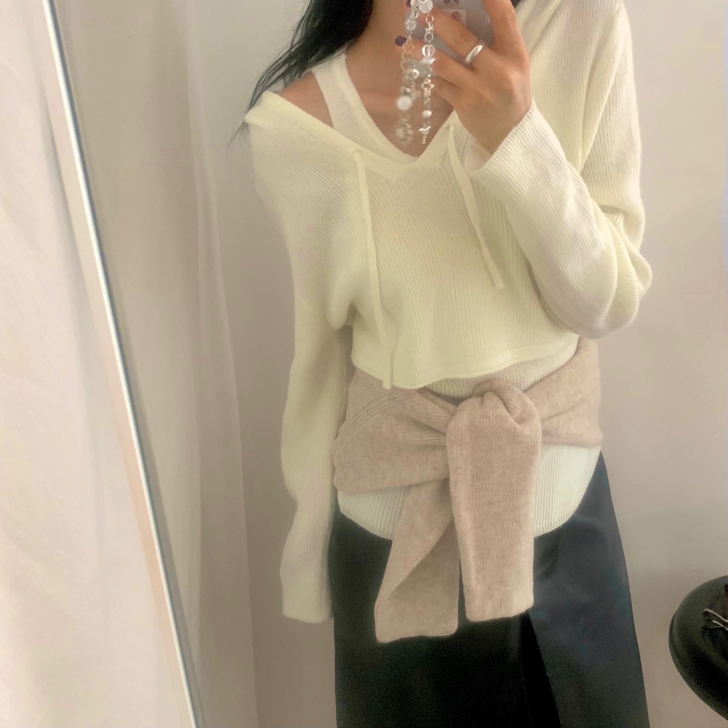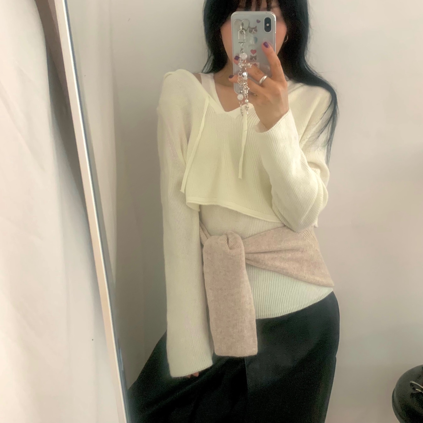 [SET]クロップドフード付きTシャツ&ニットノースリーブセット