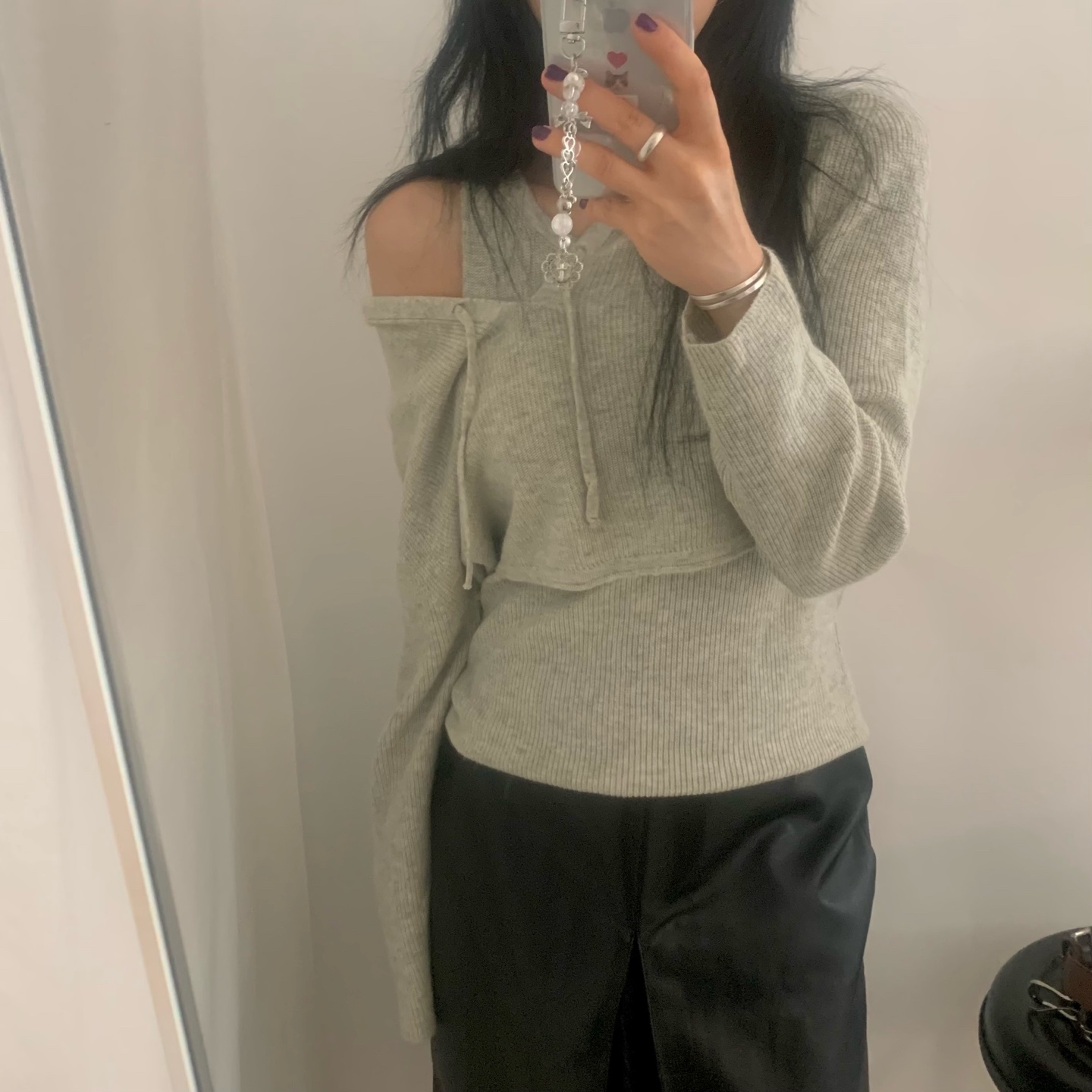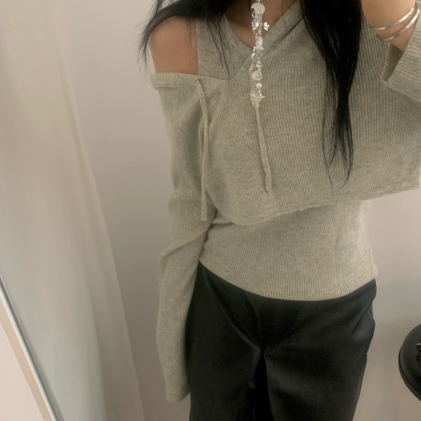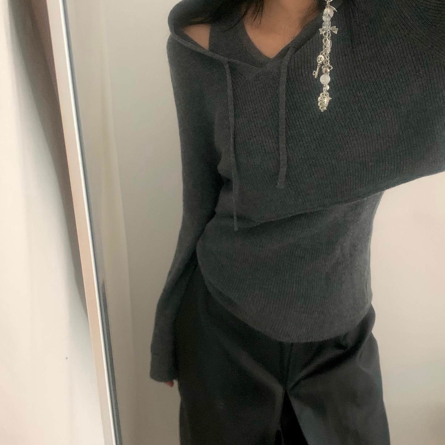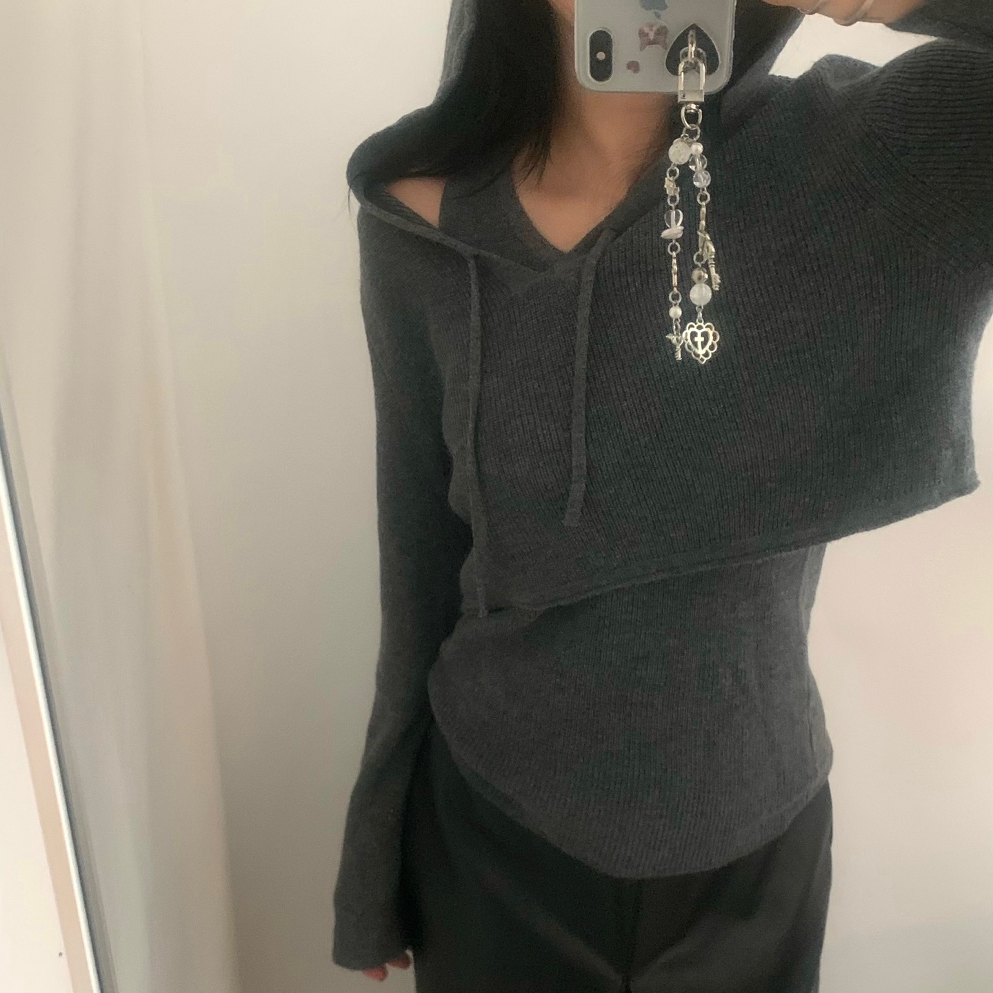 [SET]クロップドフード付きTシャツ&ニットノースリーブセット