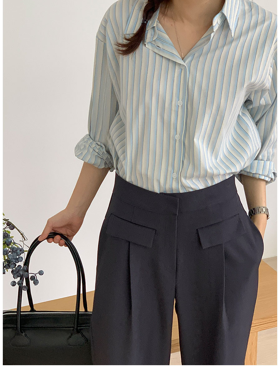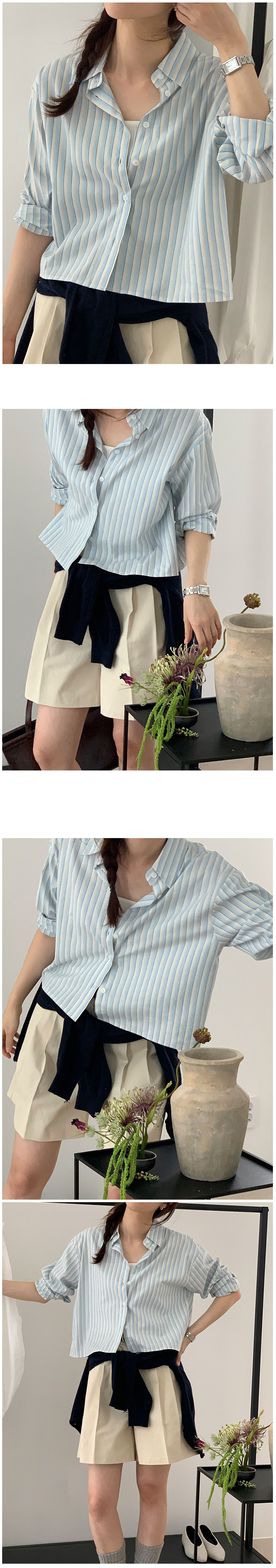 バイカラーストライプクロップドシャツ2color