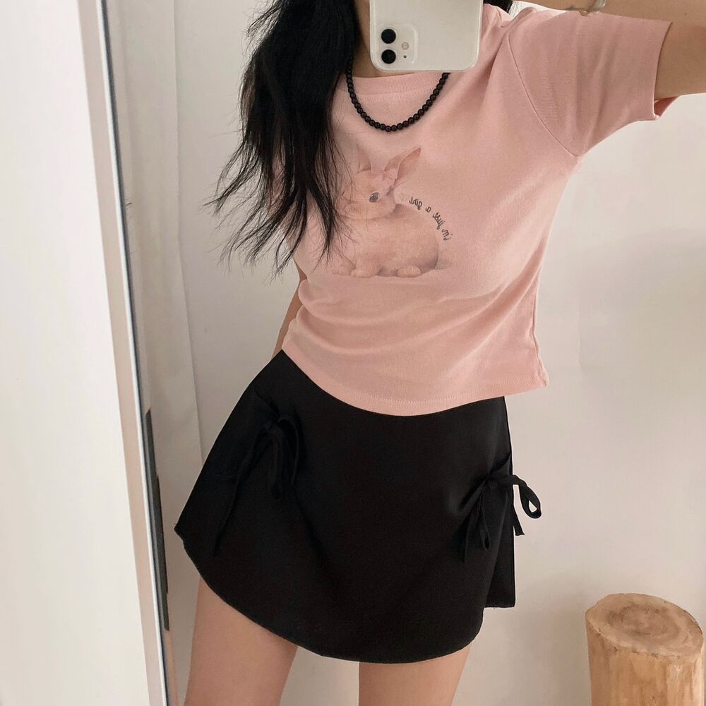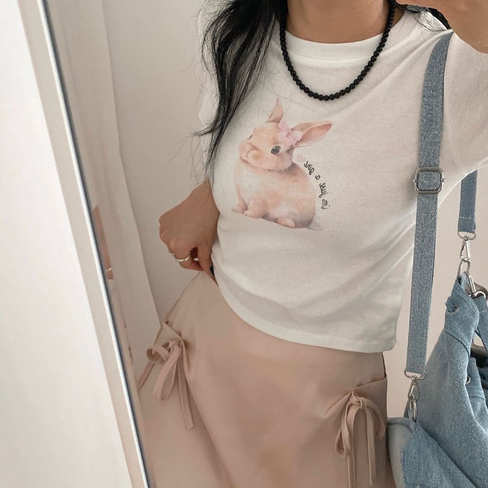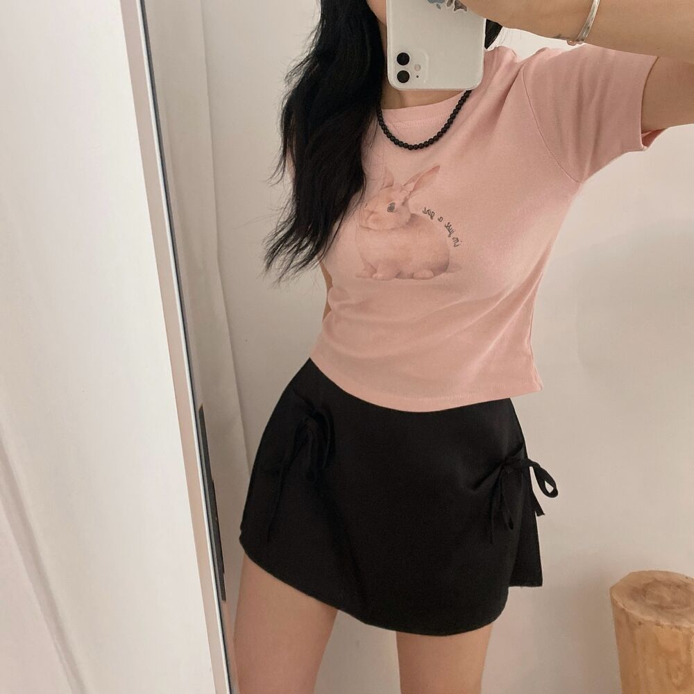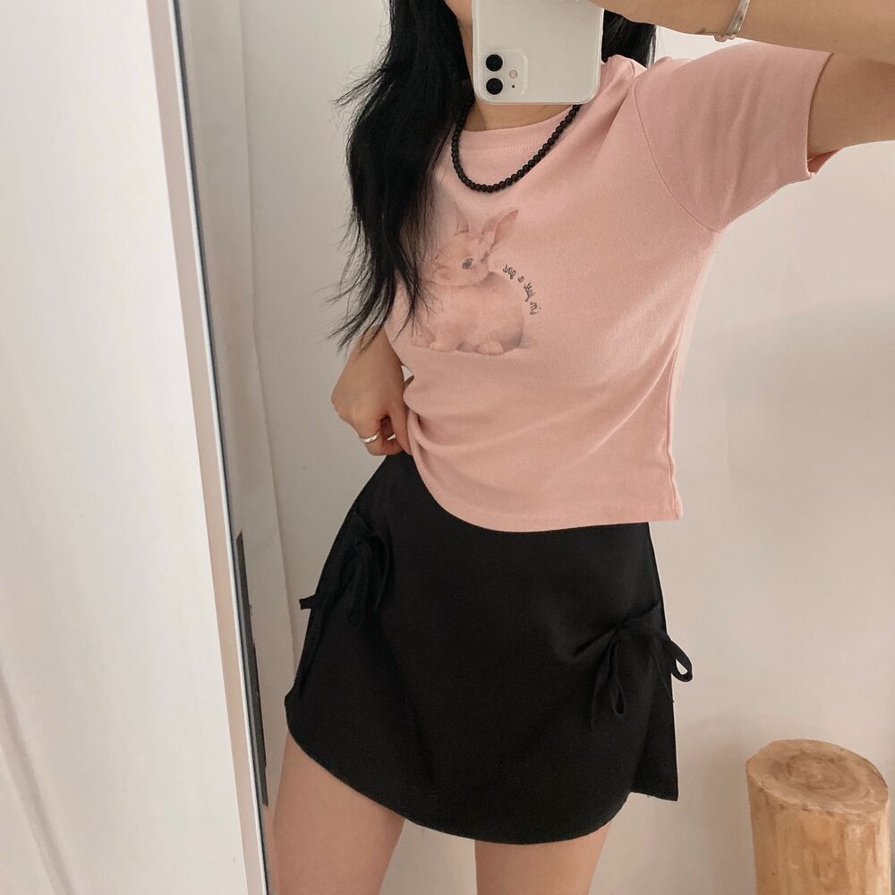 プリントクロップド半袖Tシャツ