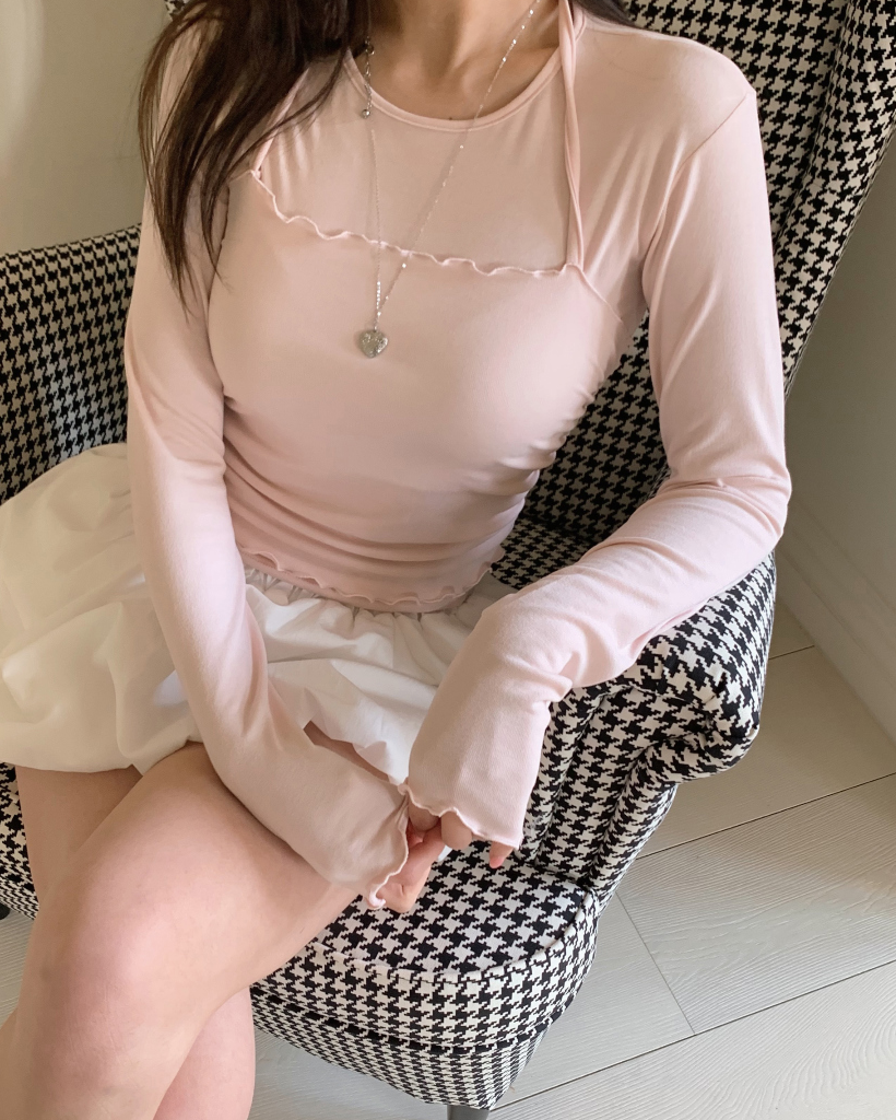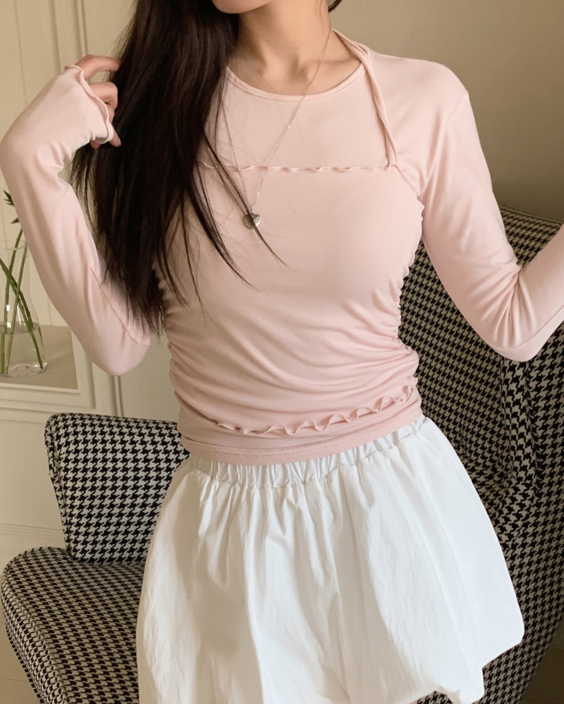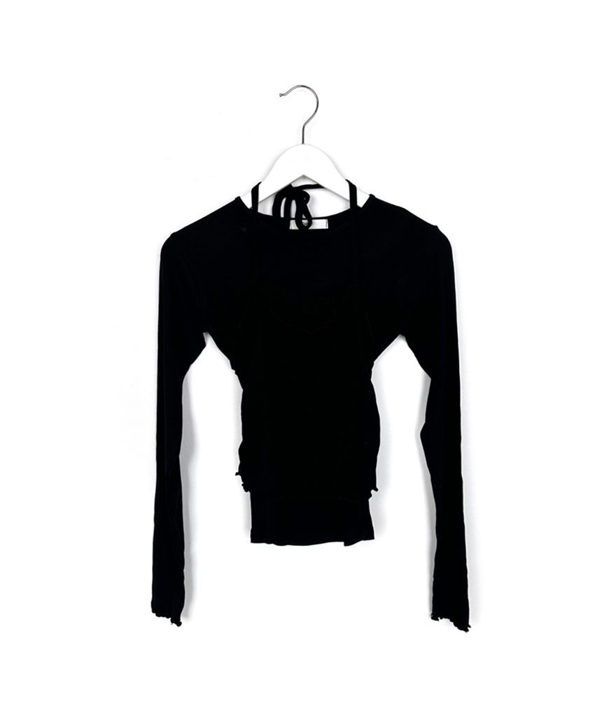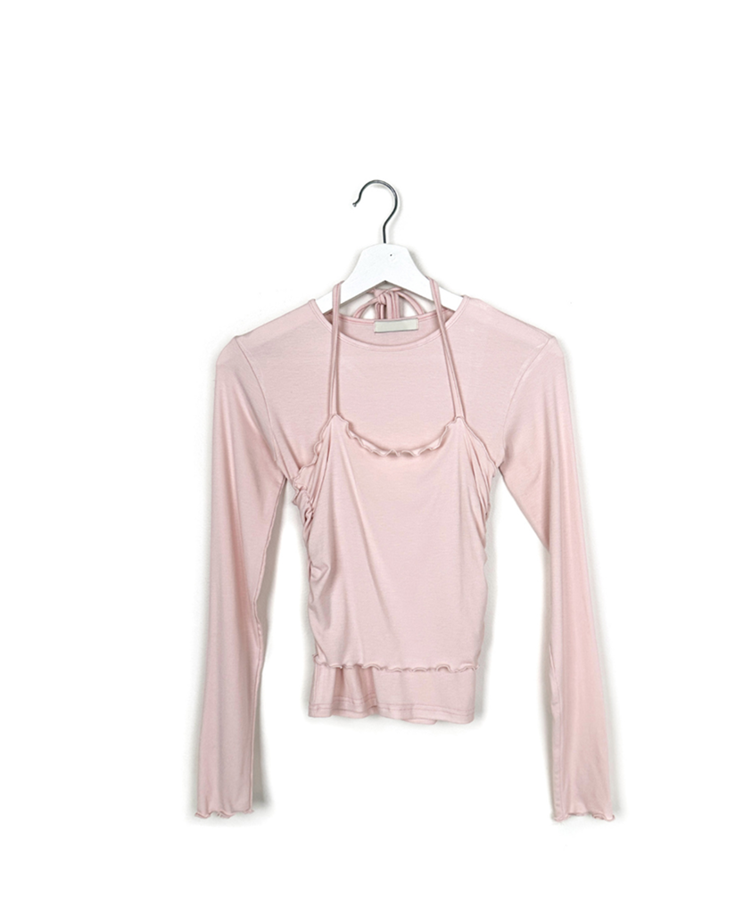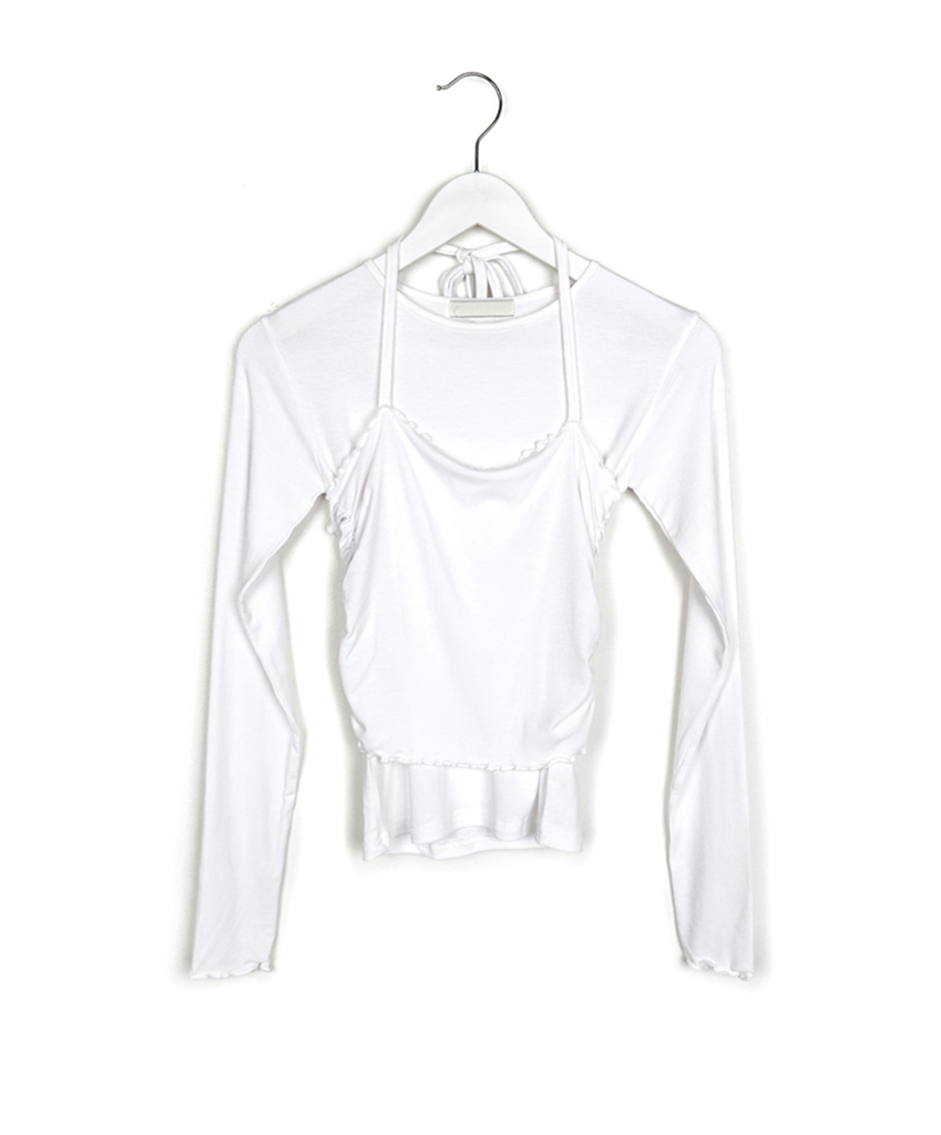 ホルターネックレイヤードストラップフリルTシャツ