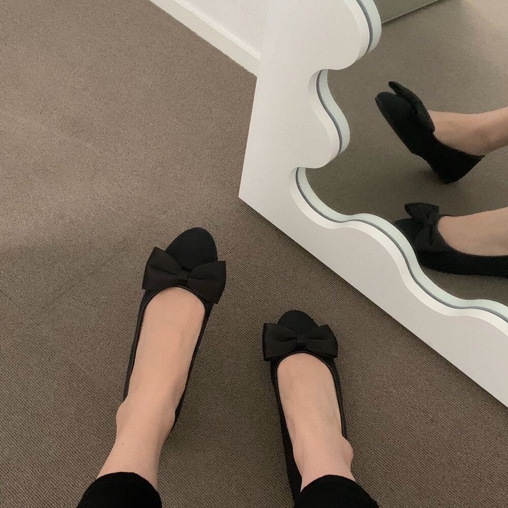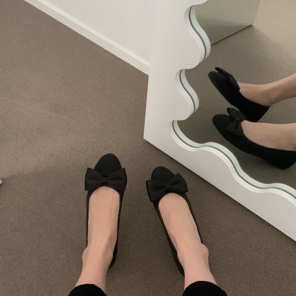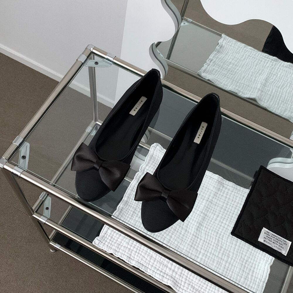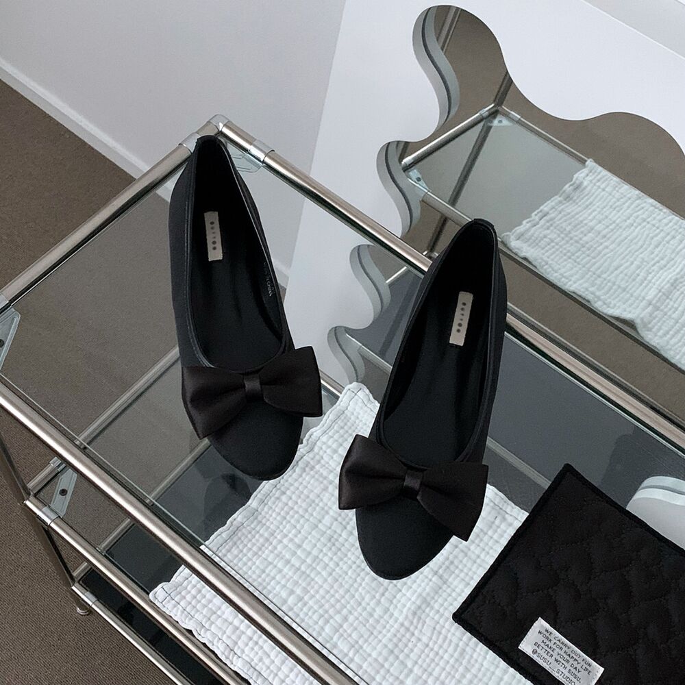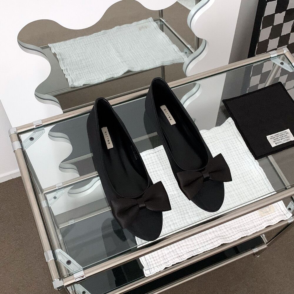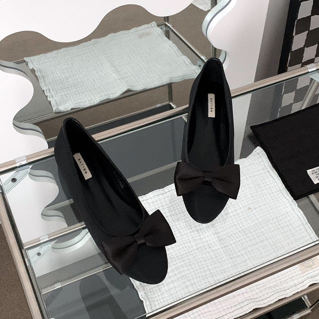 ブラックリボンフラットシューズ