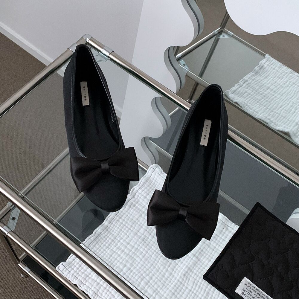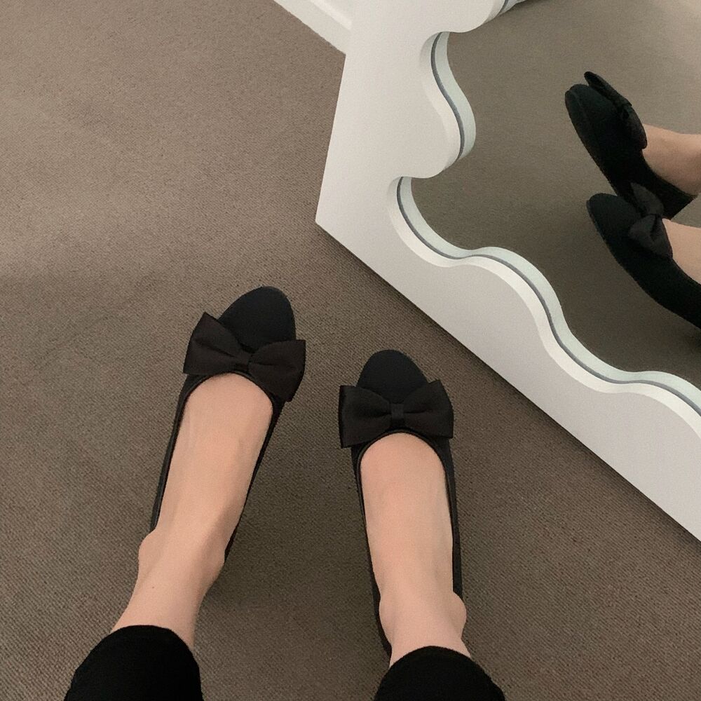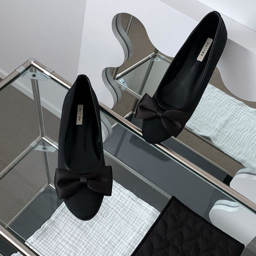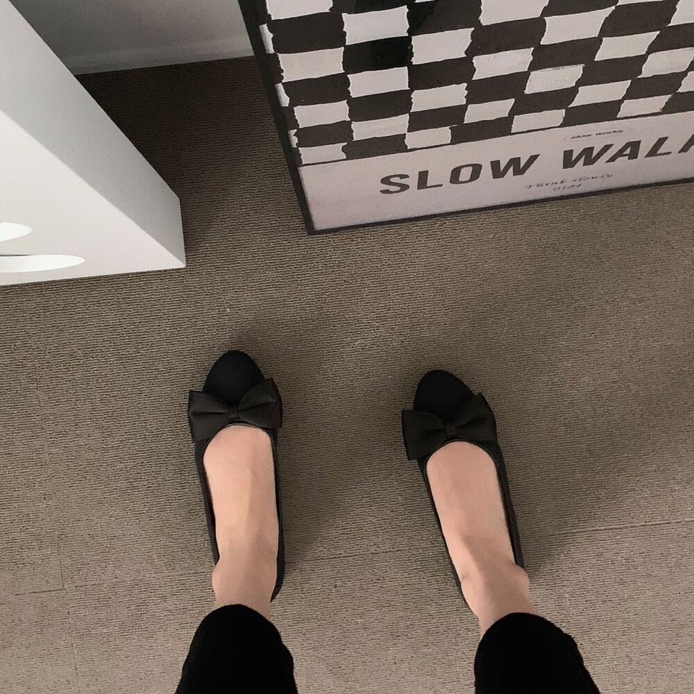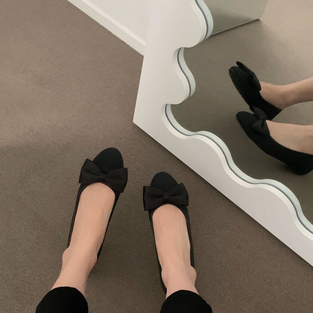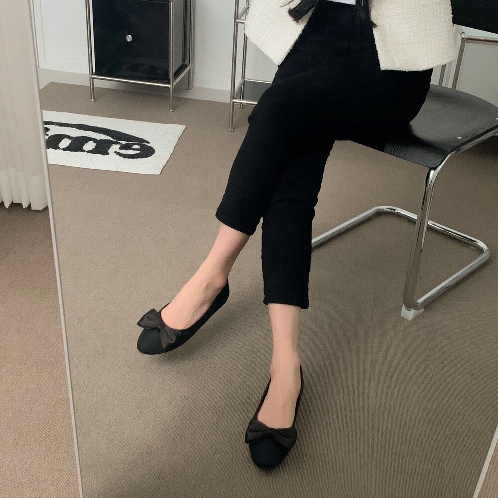 ブラックリボンフラットシューズ