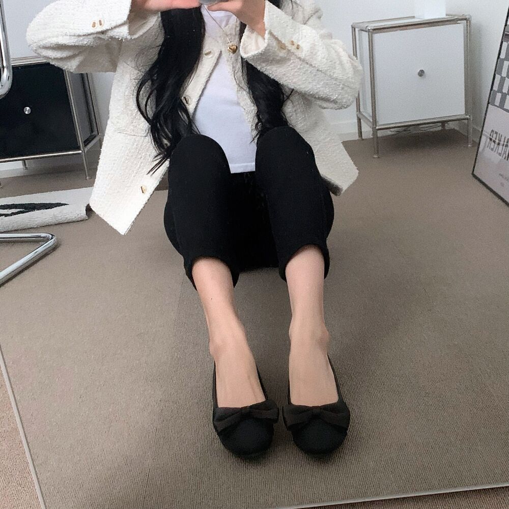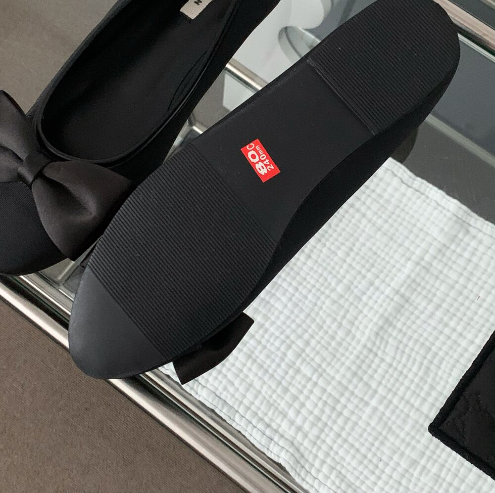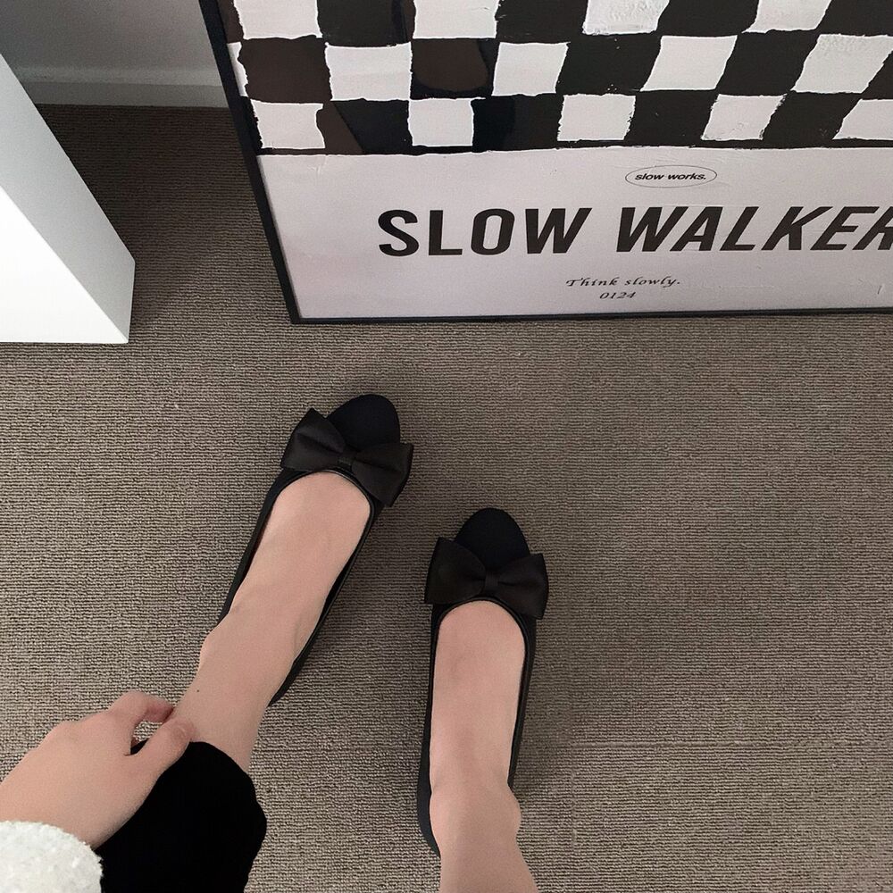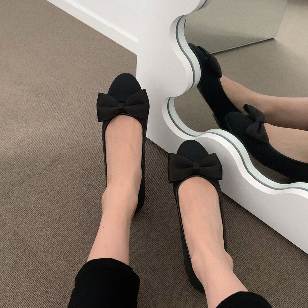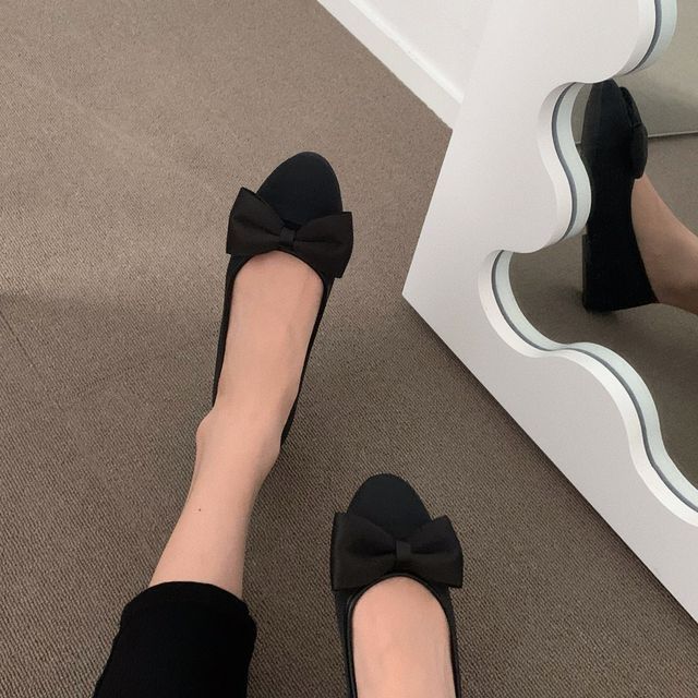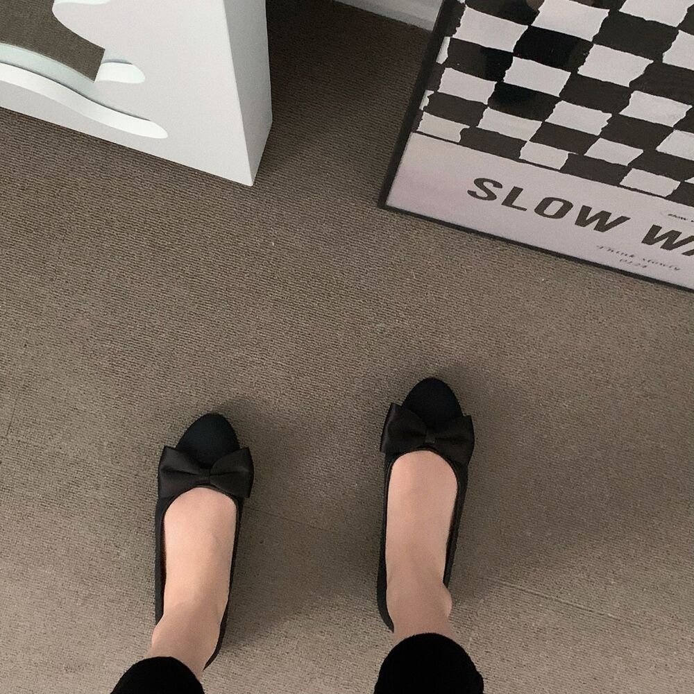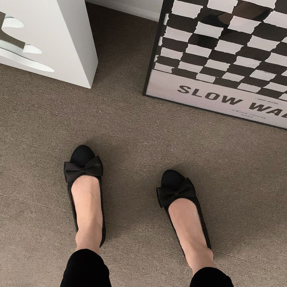 ブラックリボンフラットシューズ