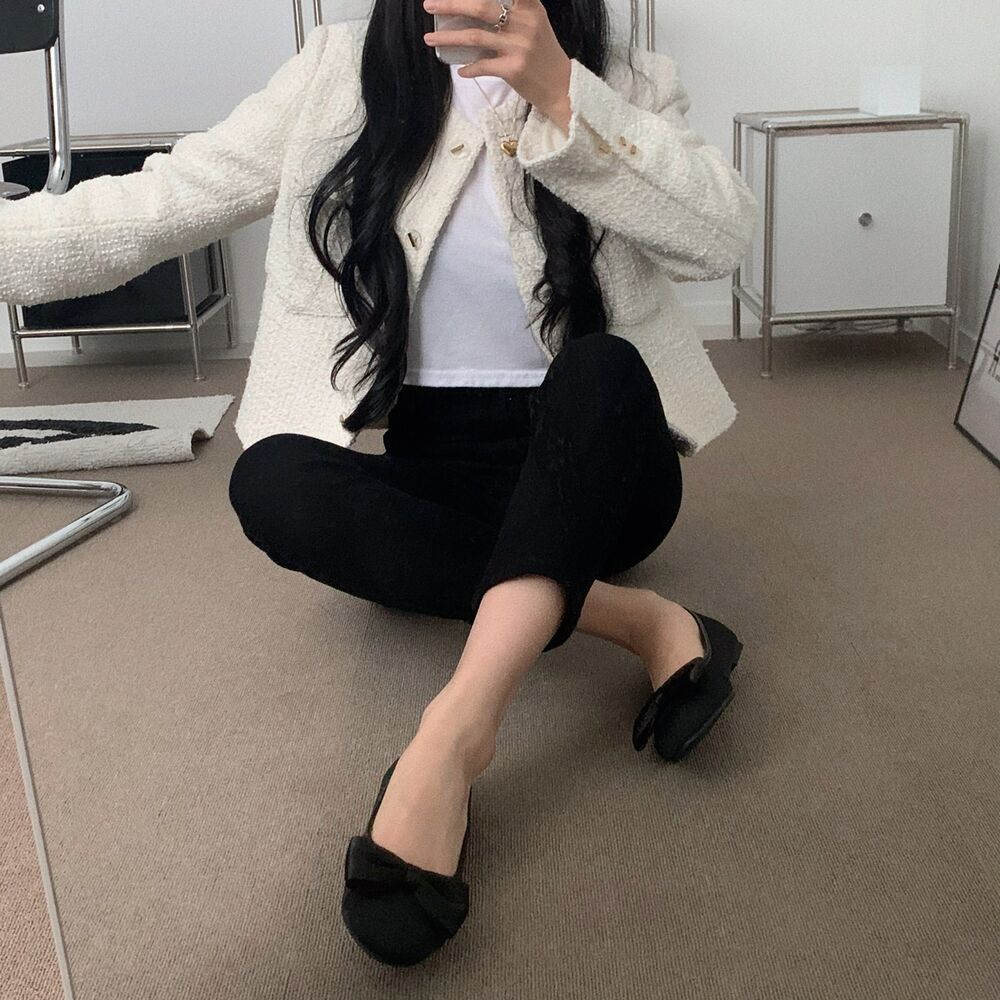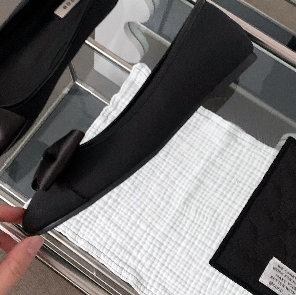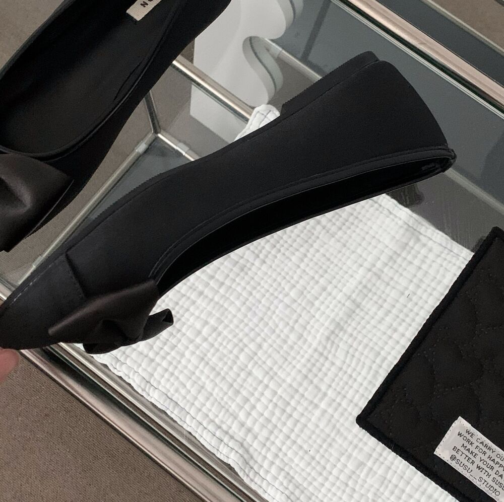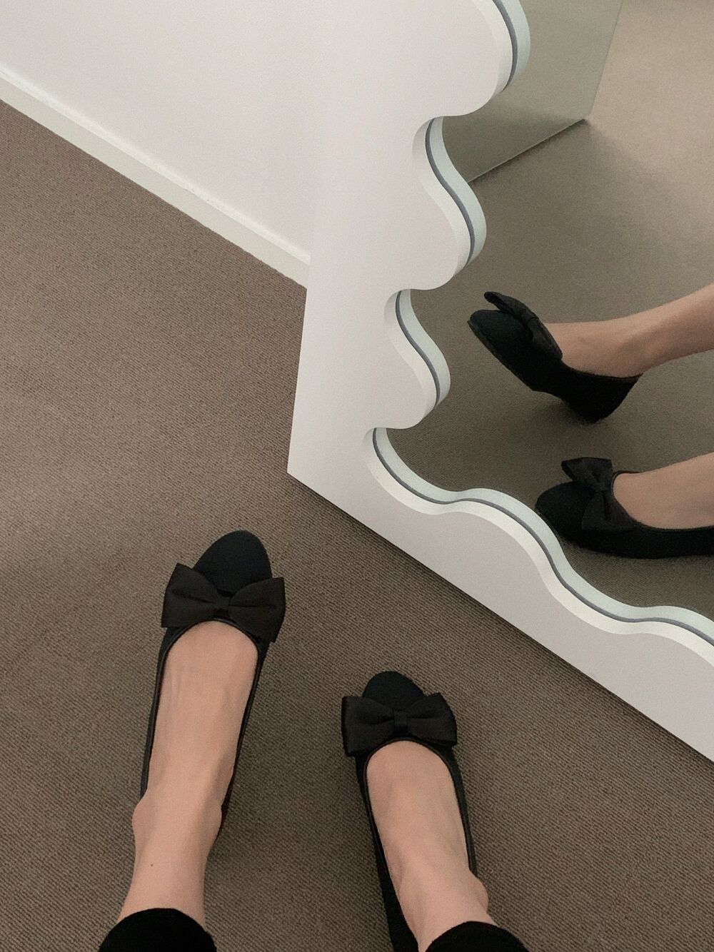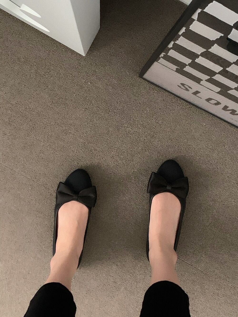 ブラックリボンフラットシューズ