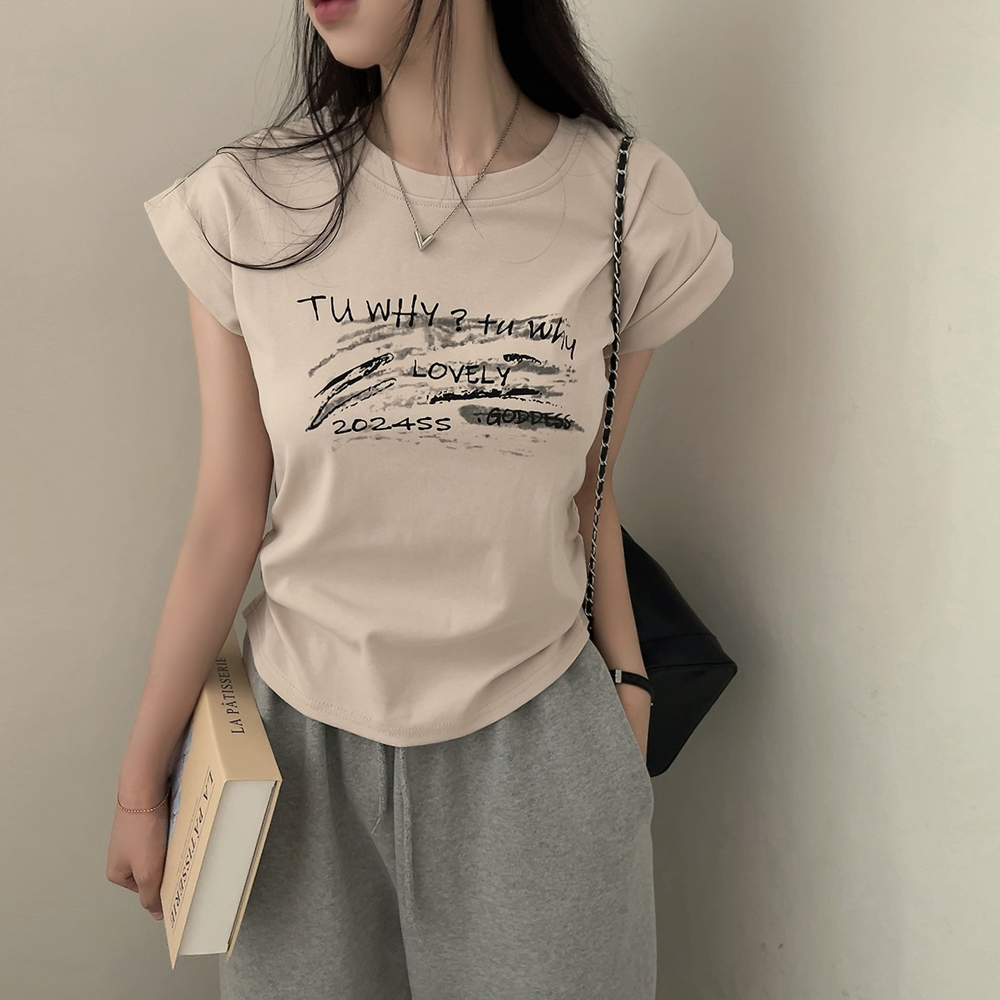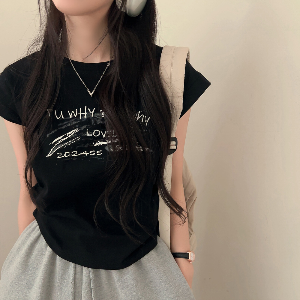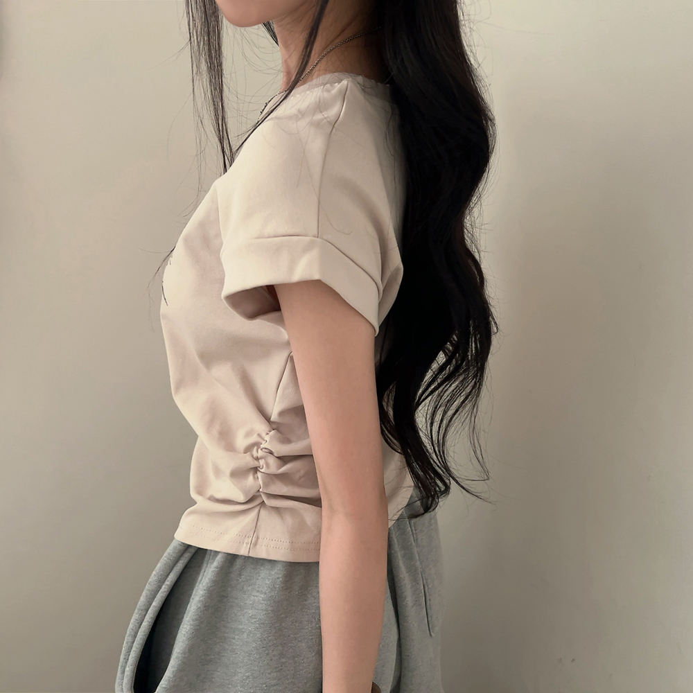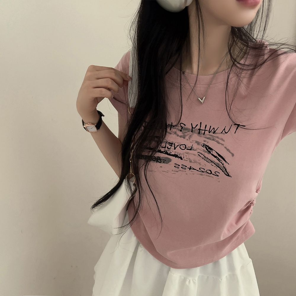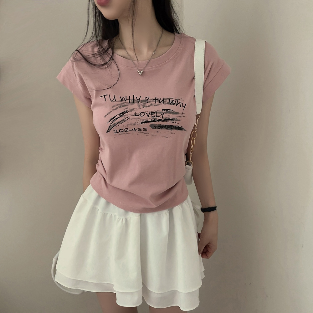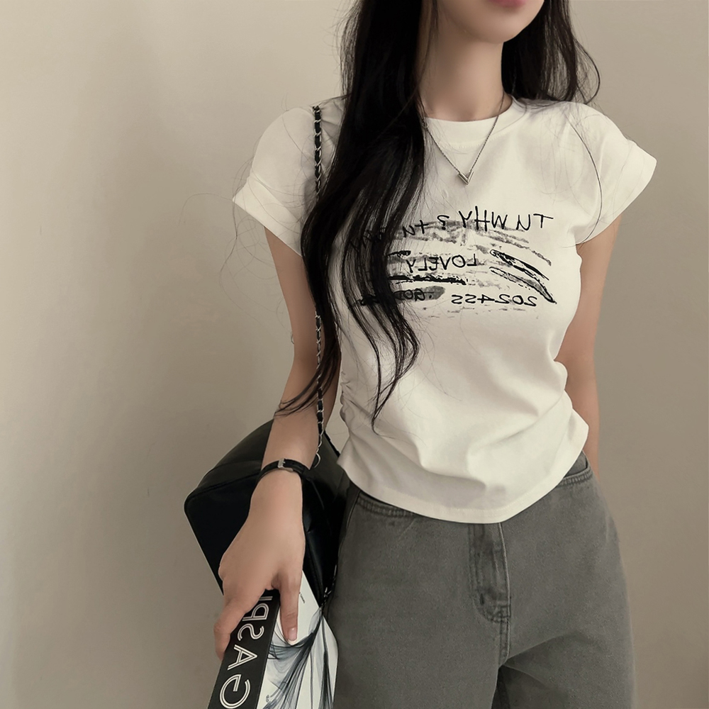 プリントラウンドサイドシャーリング半袖Tシャツ