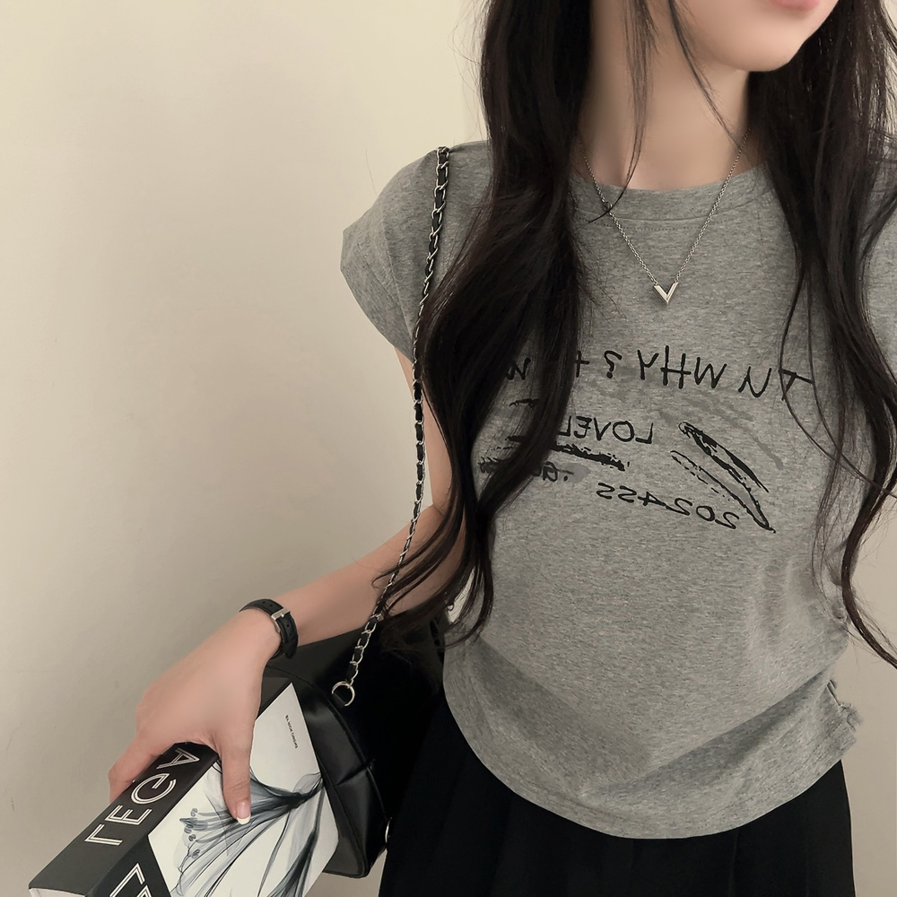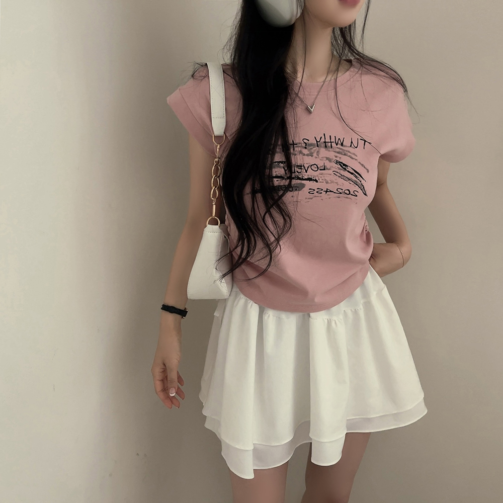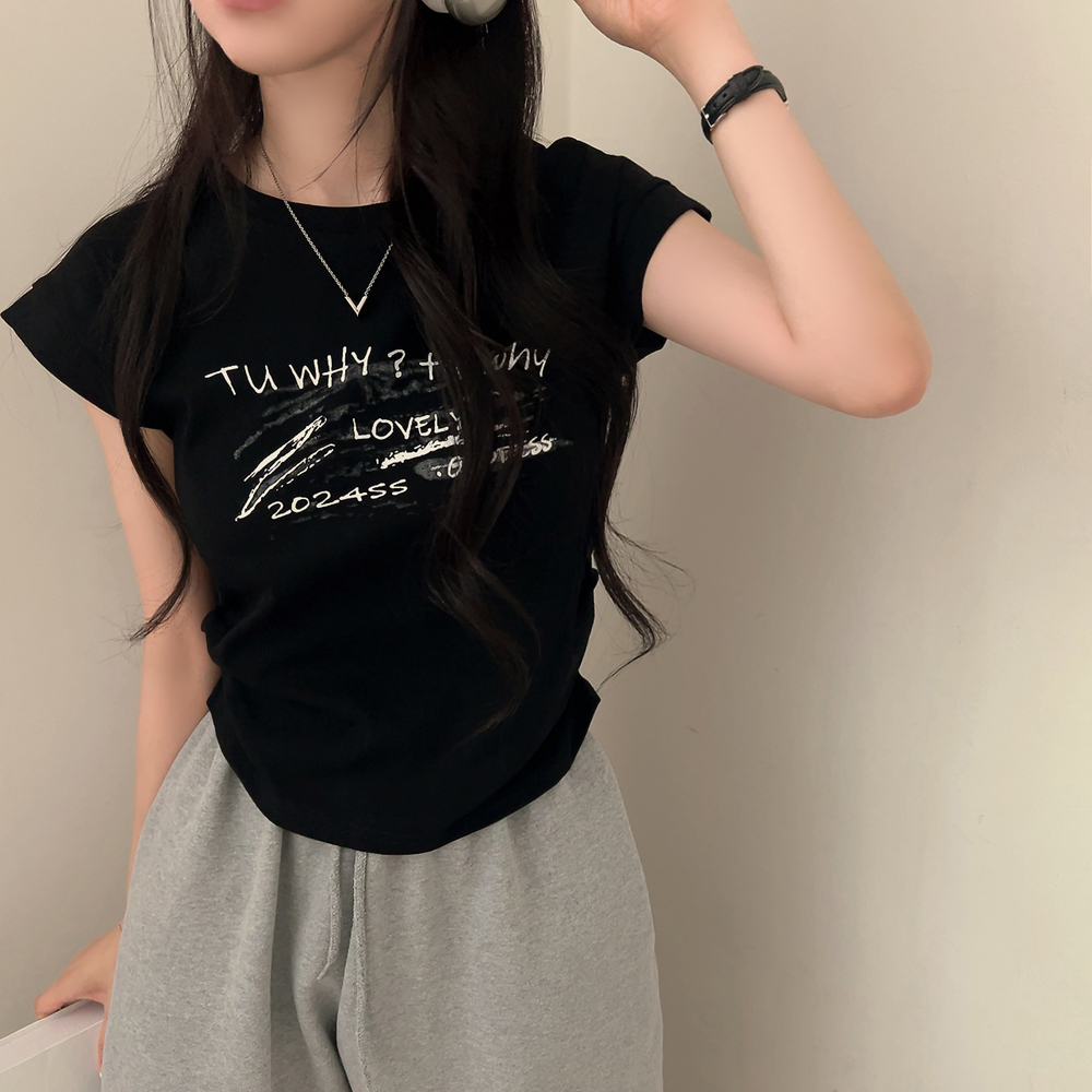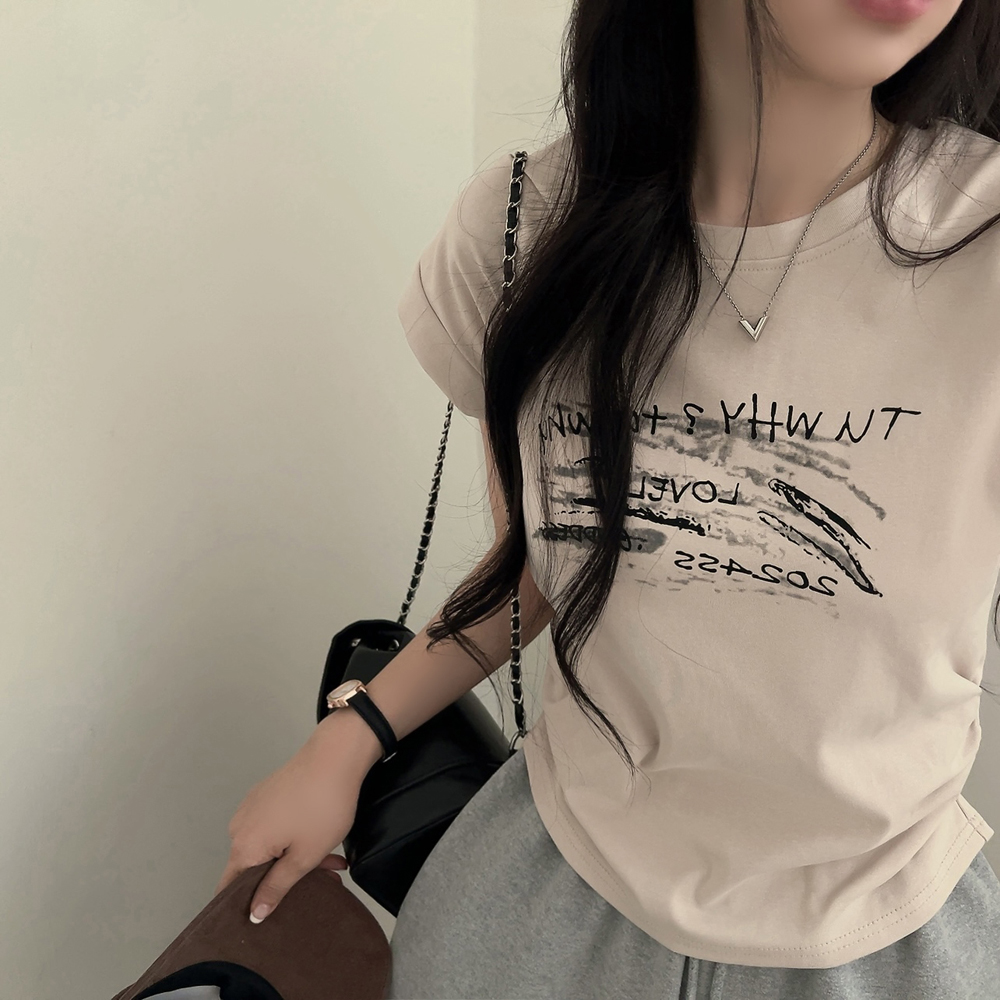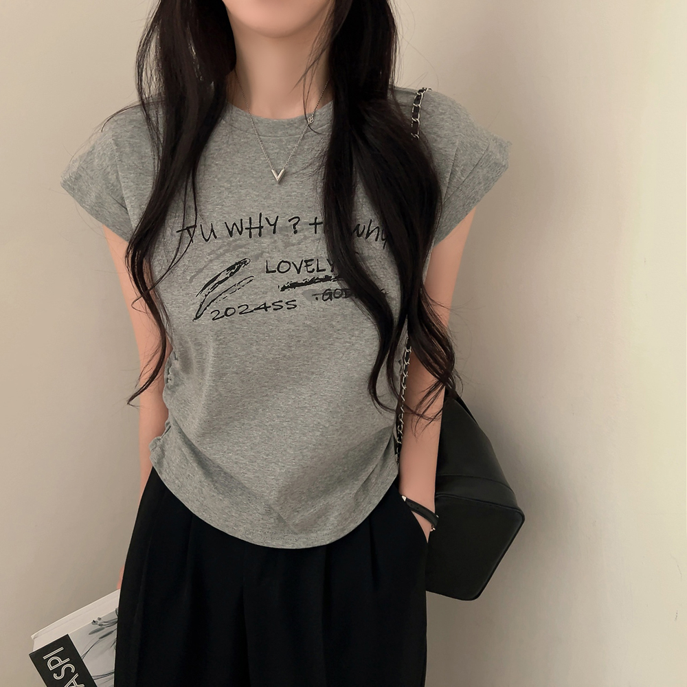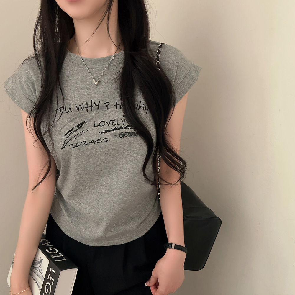 プリントラウンドサイドシャーリング半袖Tシャツ