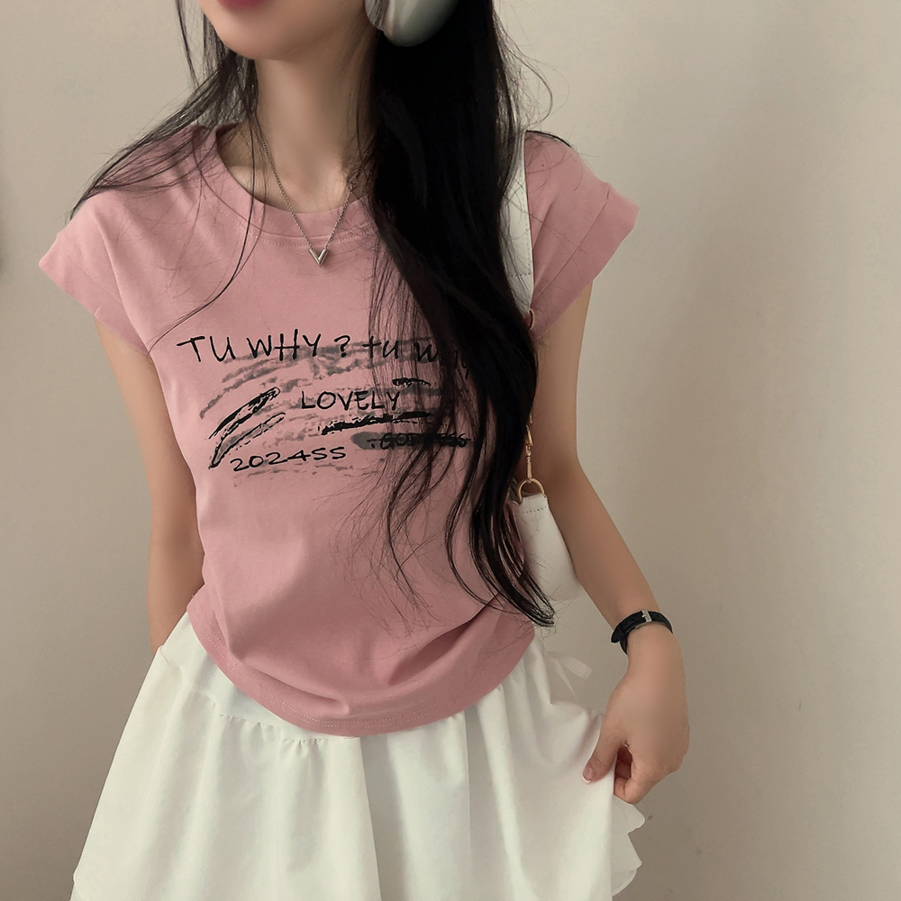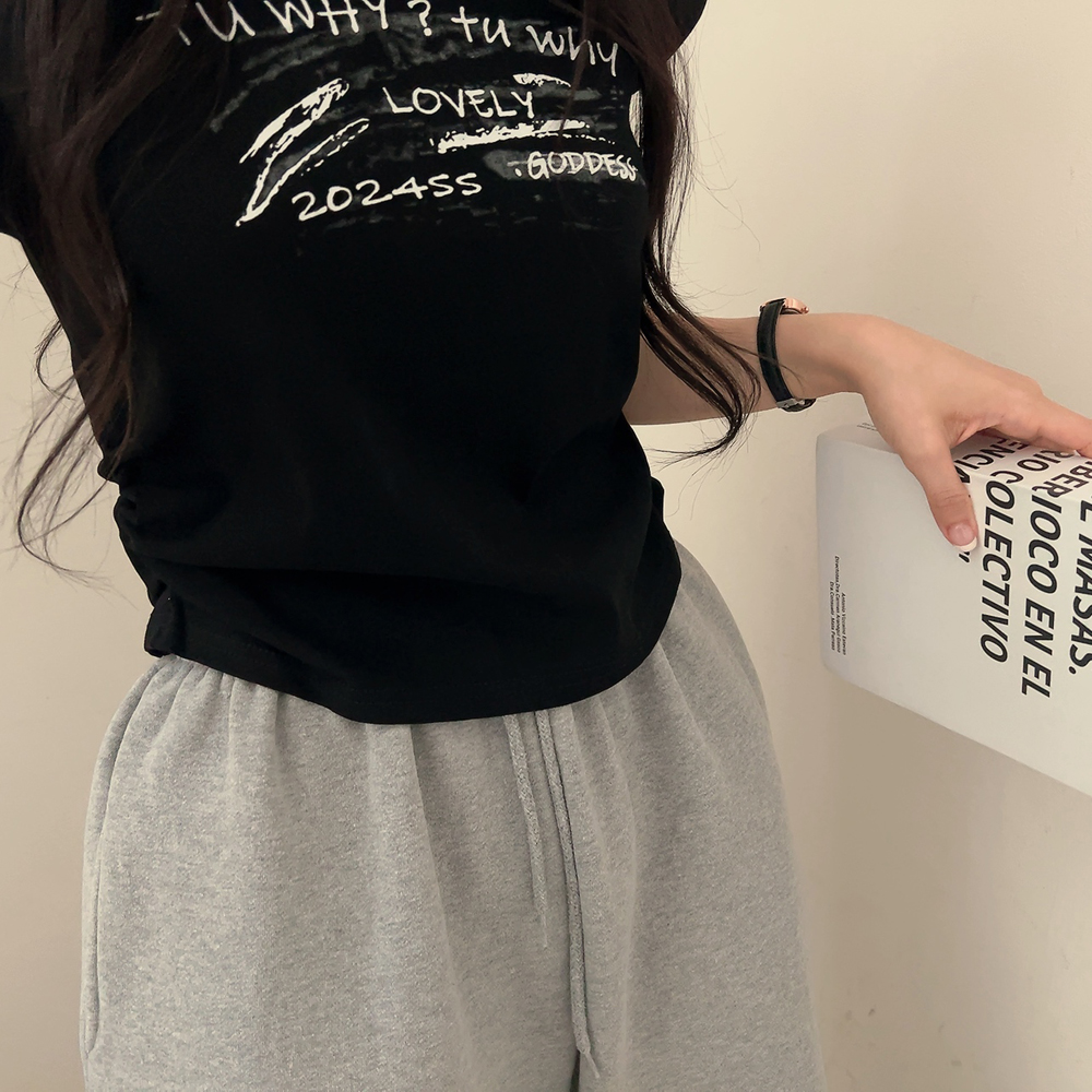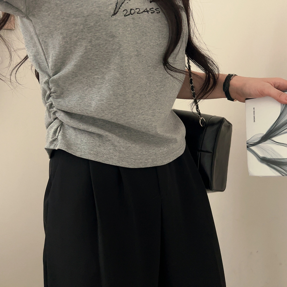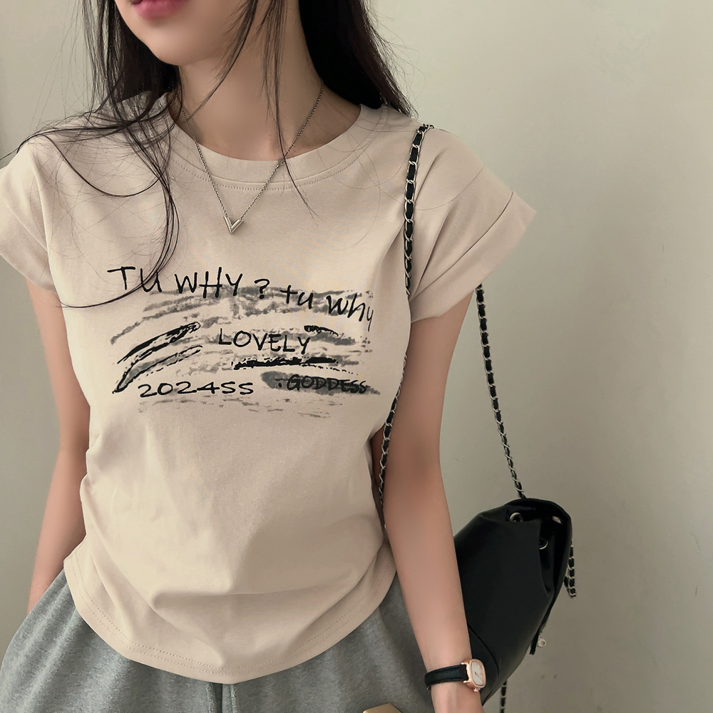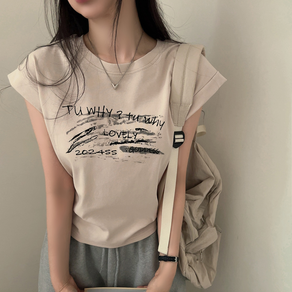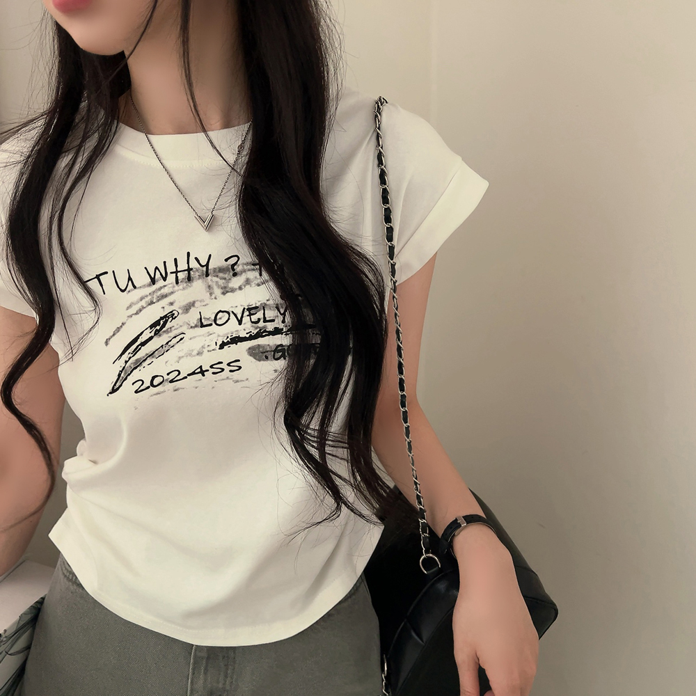 プリントラウンドサイドシャーリング半袖Tシャツ