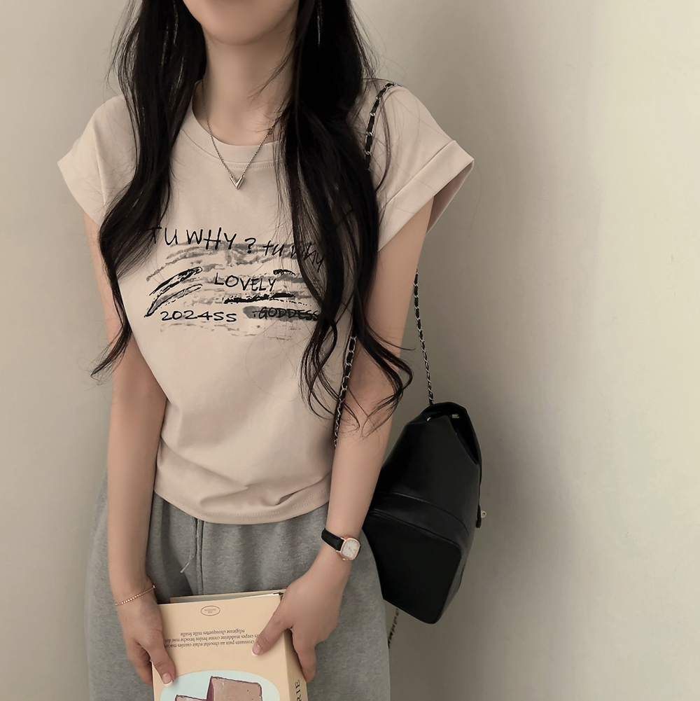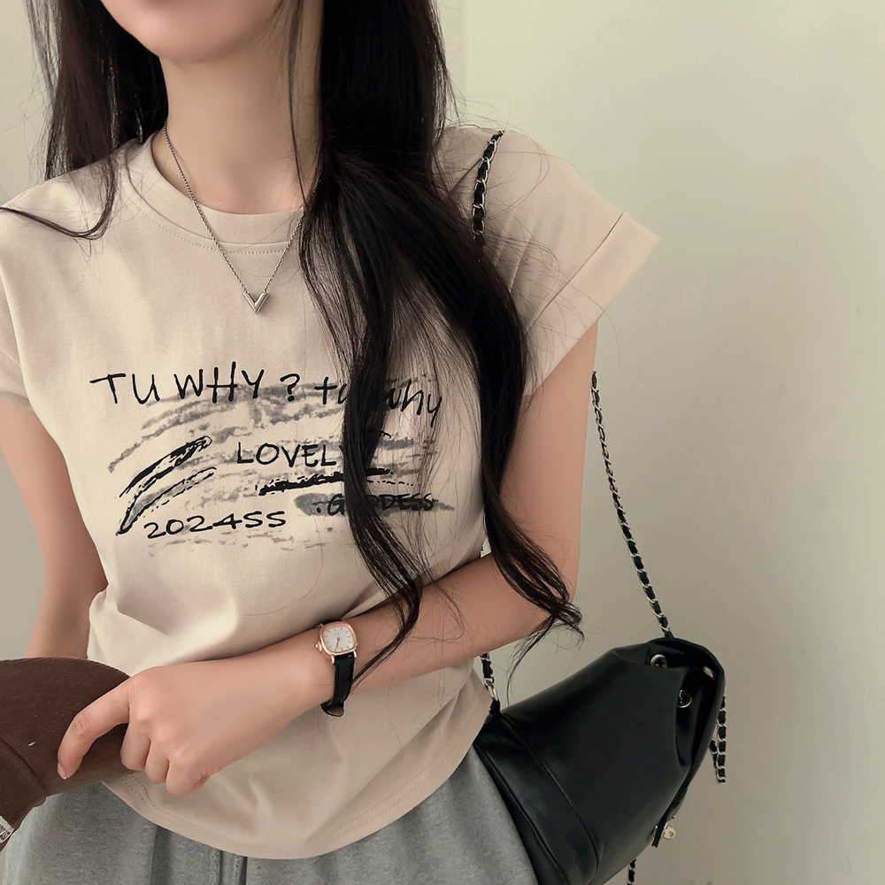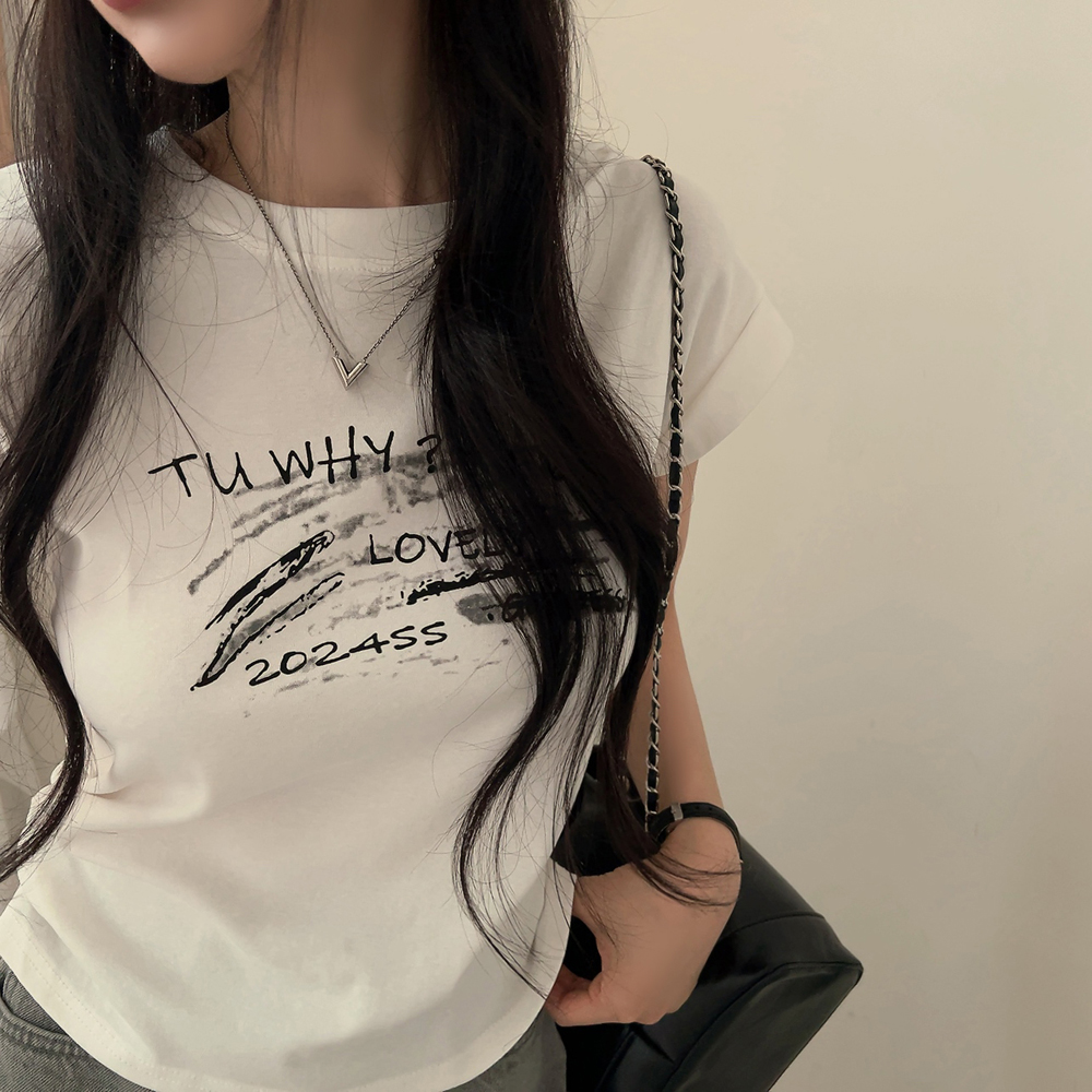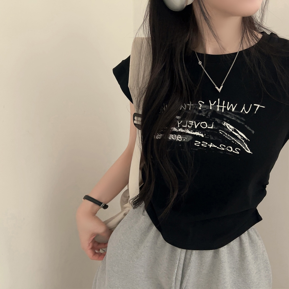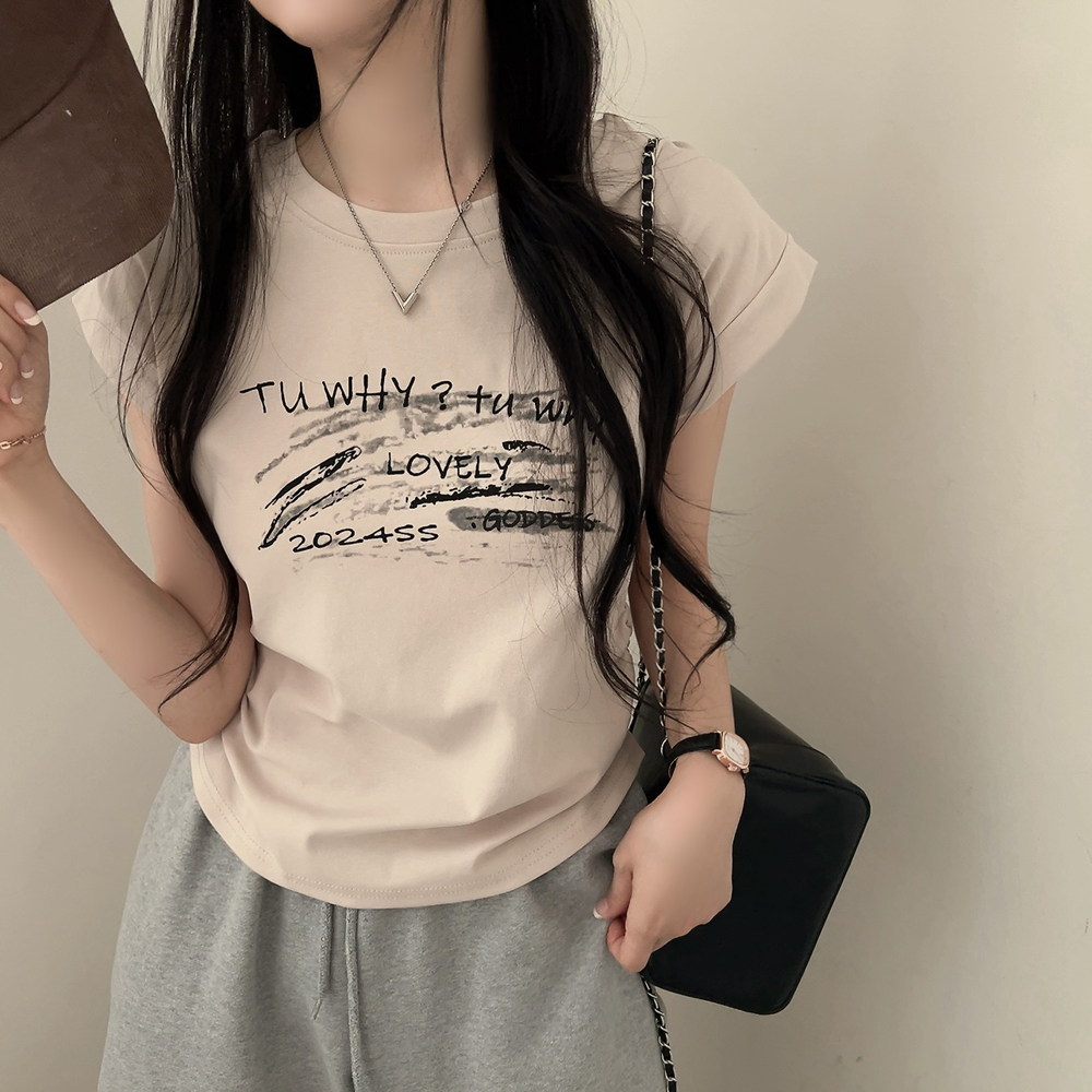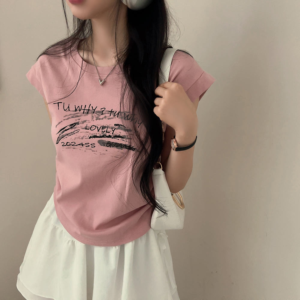 プリントラウンドサイドシャーリング半袖Tシャツ