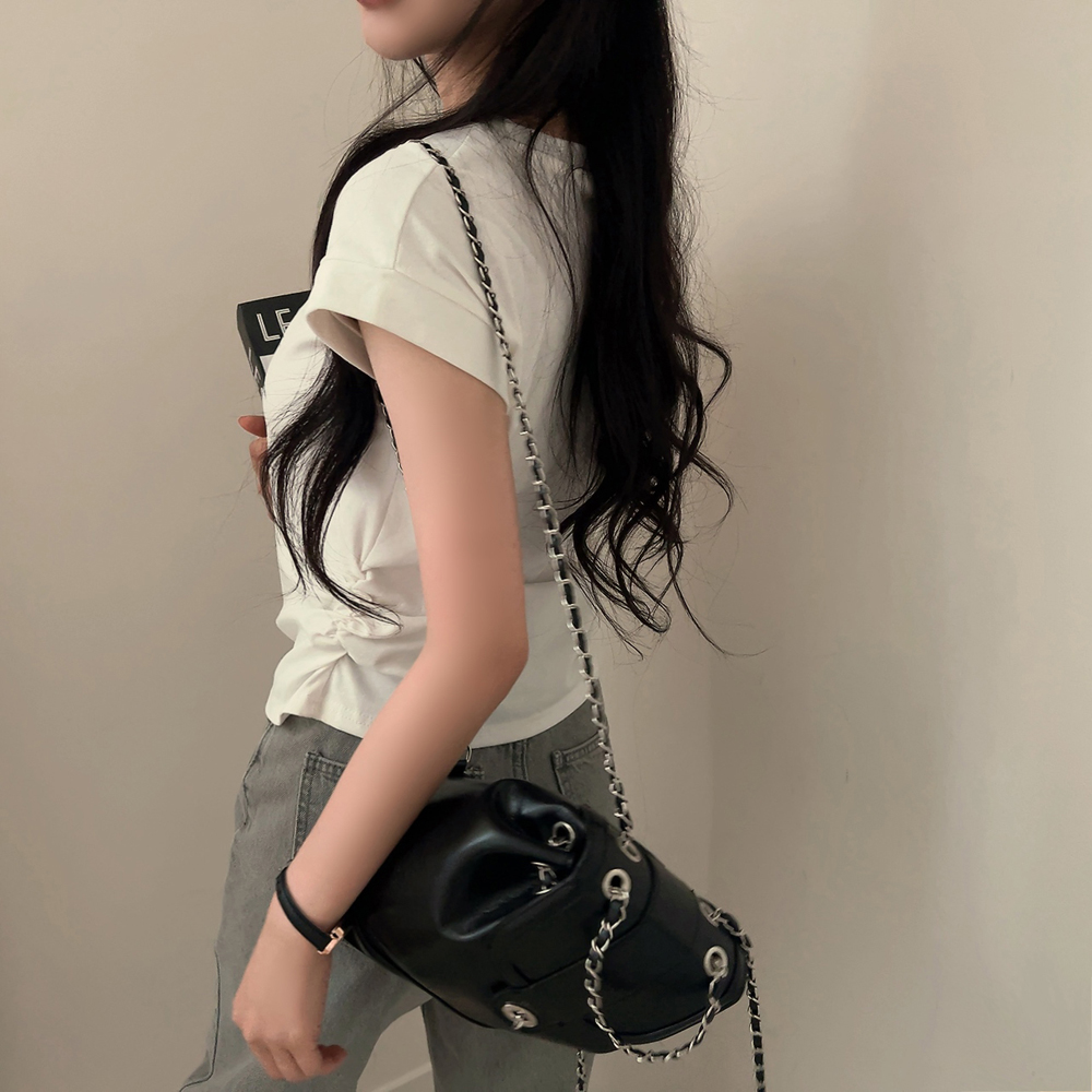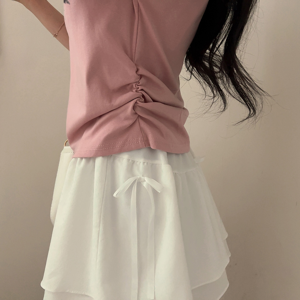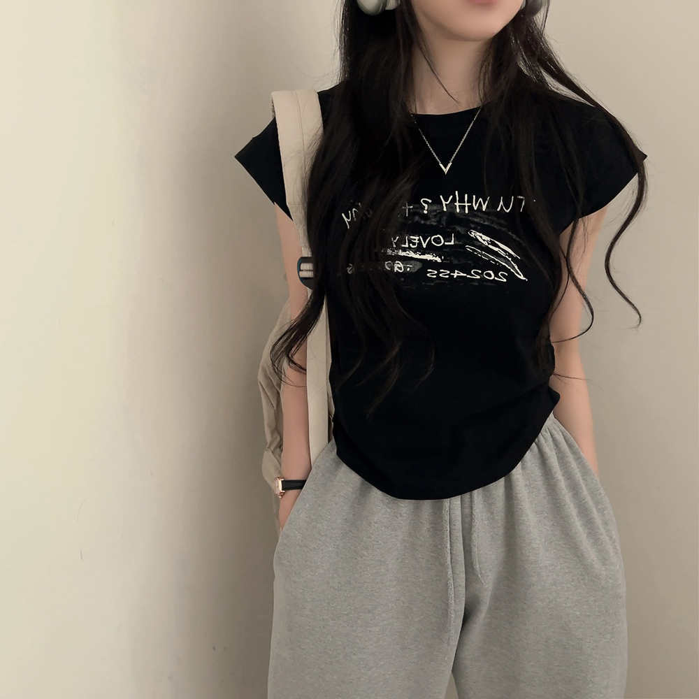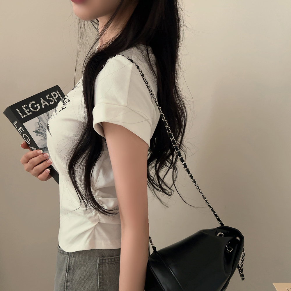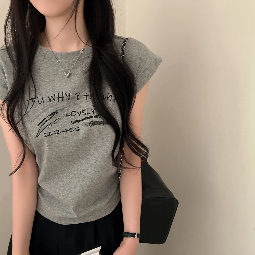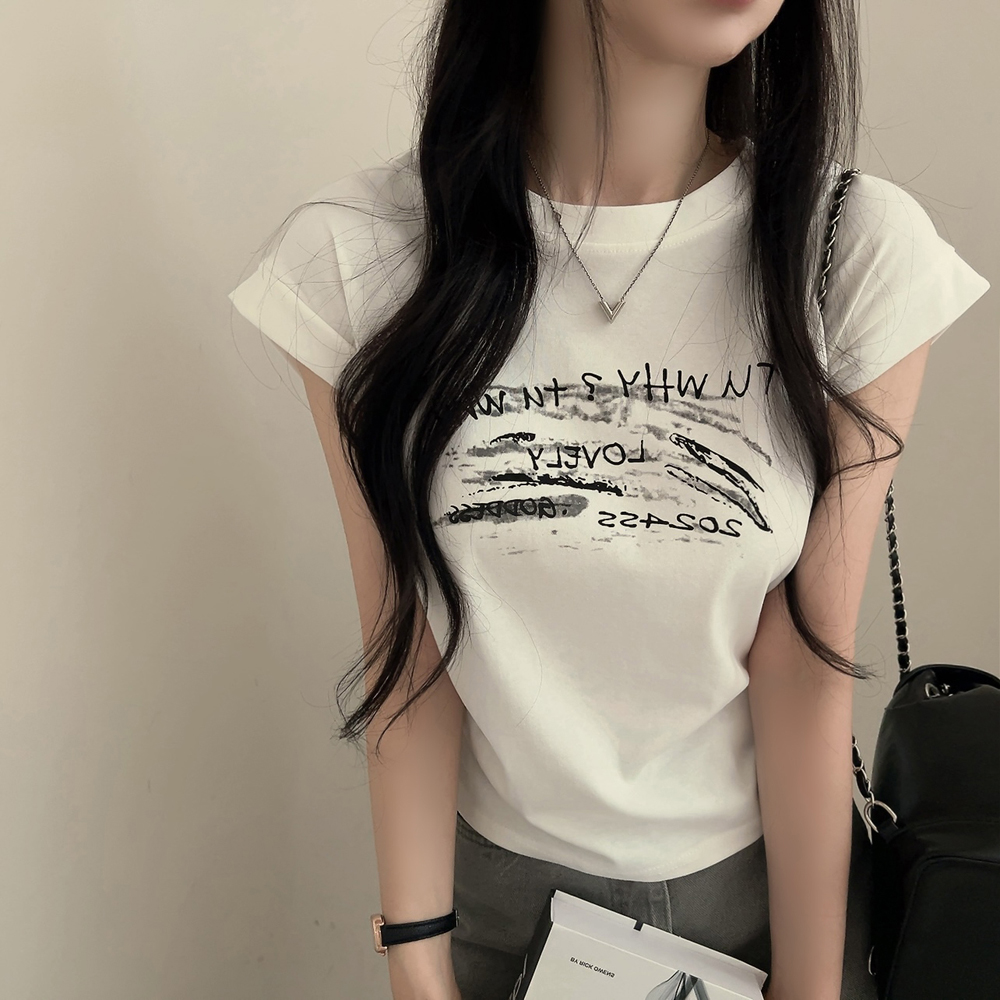 プリントラウンドサイドシャーリング半袖Tシャツ
