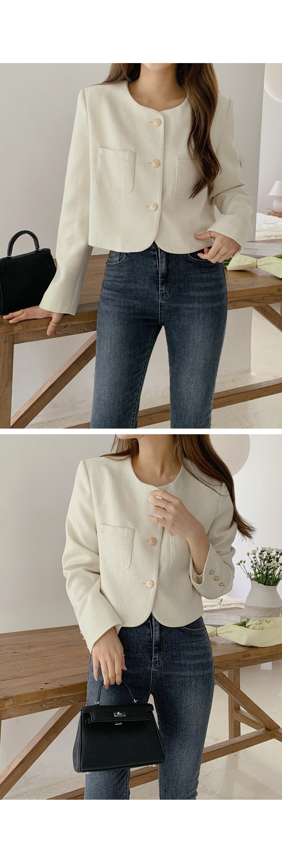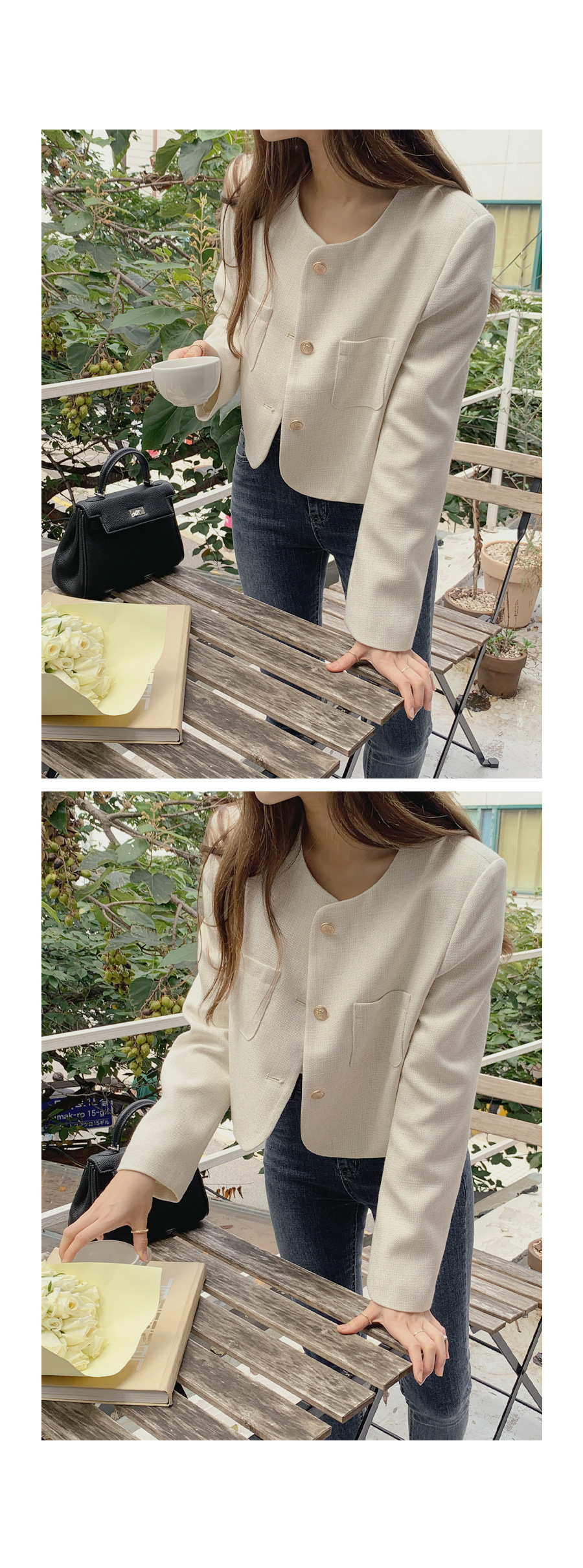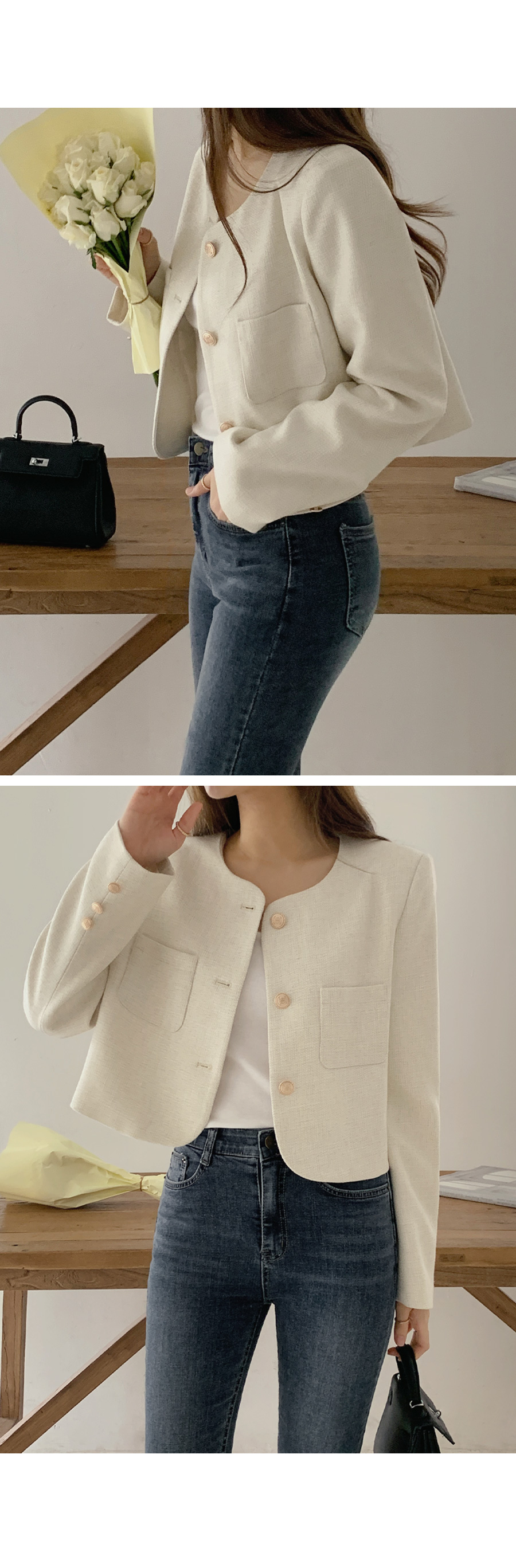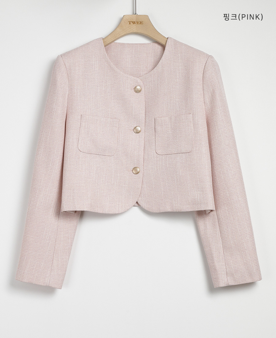 [original]ゴールドボタンポイントラウンドツイードジャケット