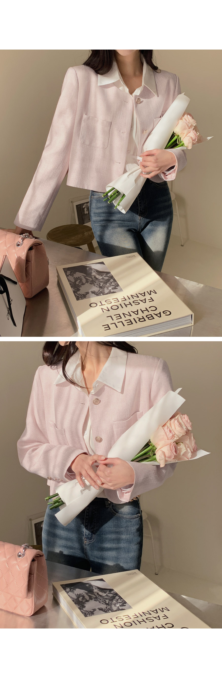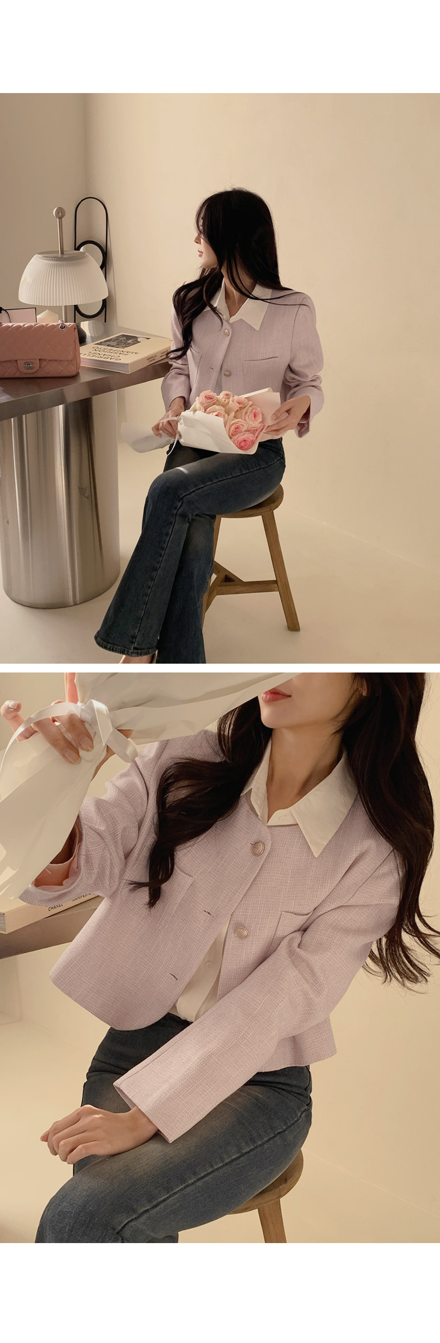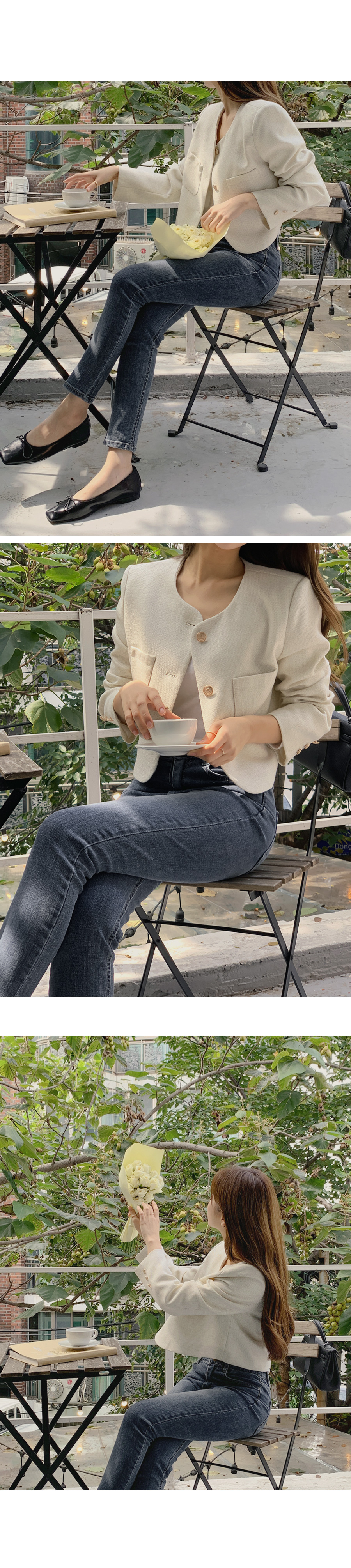 [original]ゴールドボタンポイントラウンドツイードジャケット