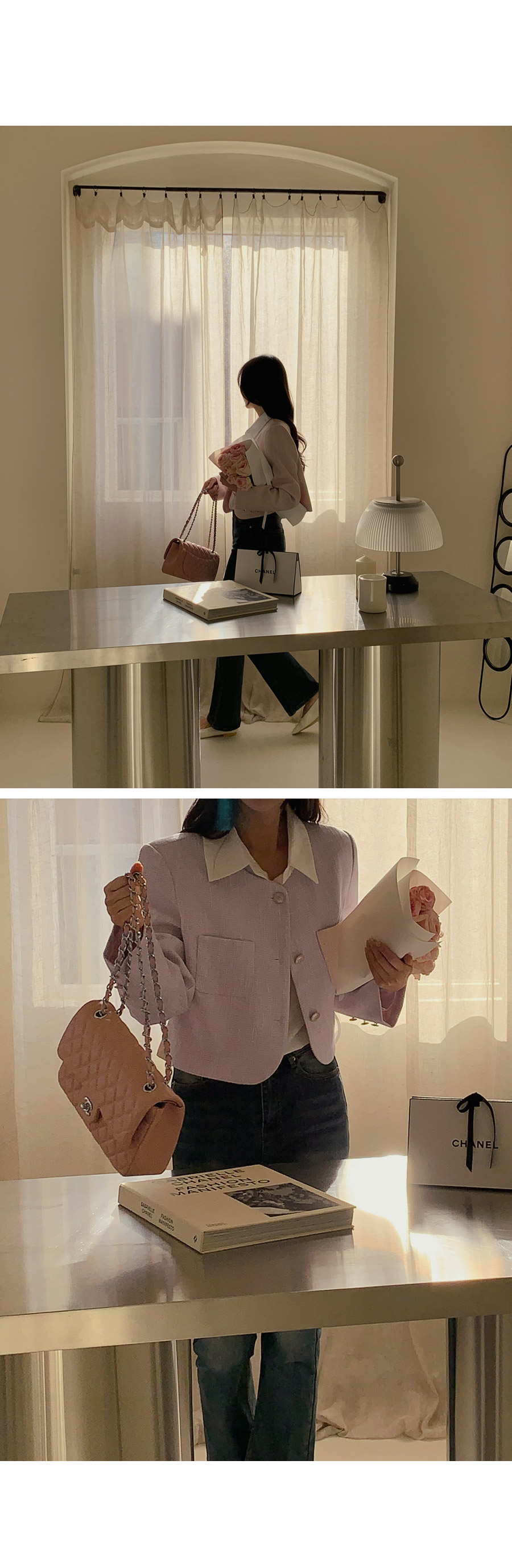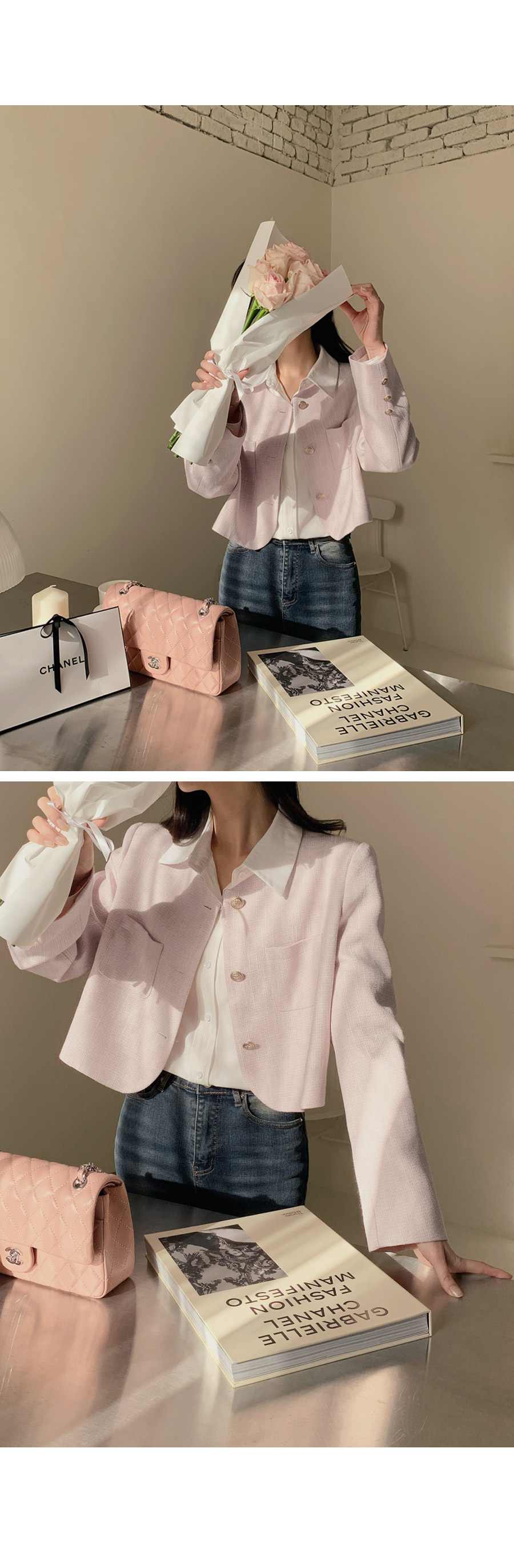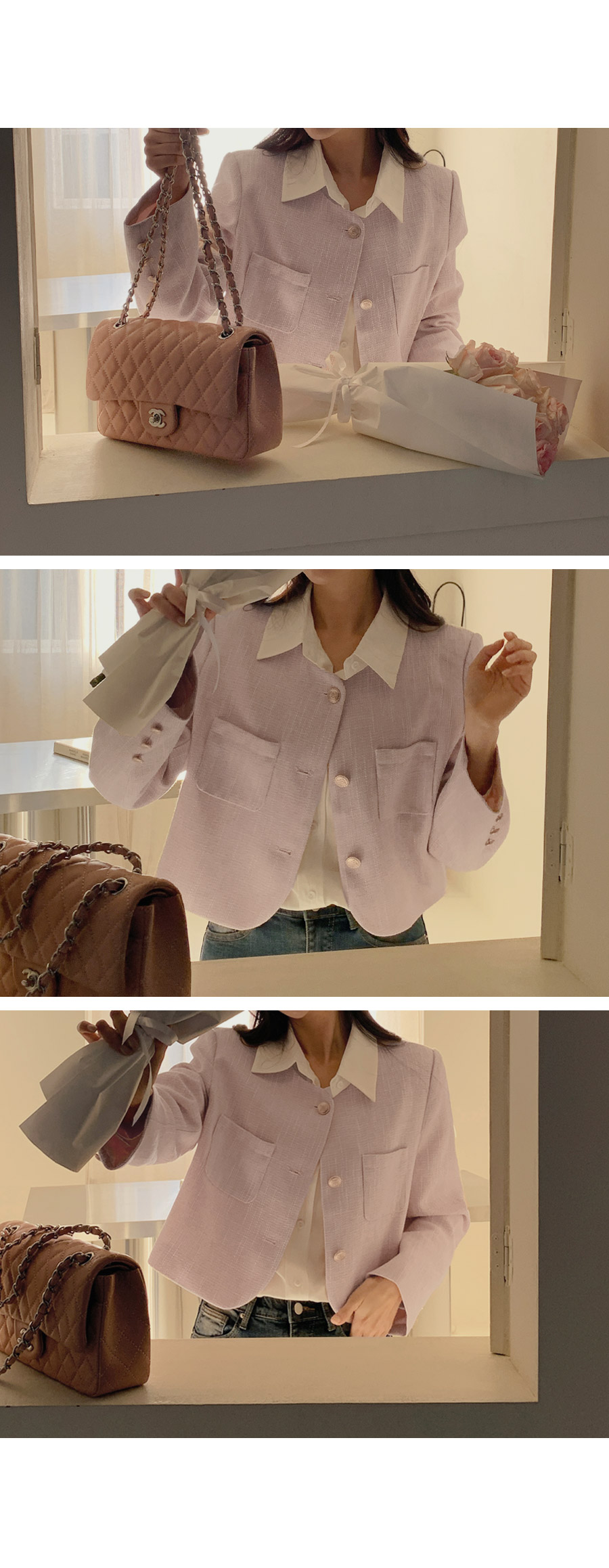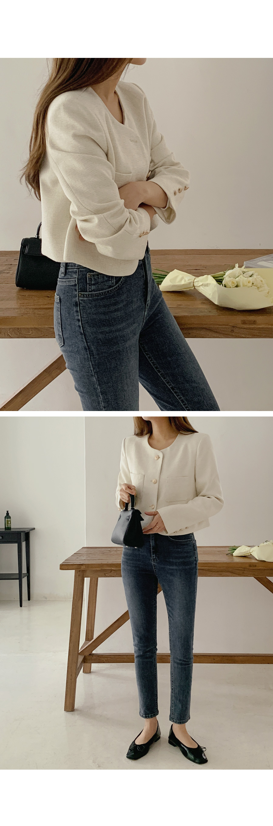 [original]ゴールドボタンポイントラウンドツイードジャケット