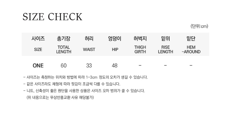 "サイズの測定方法によっては1~3cmほど誤差が生じる場合があります。