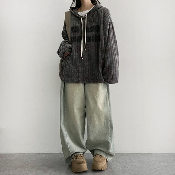 リブニットフードパーカー