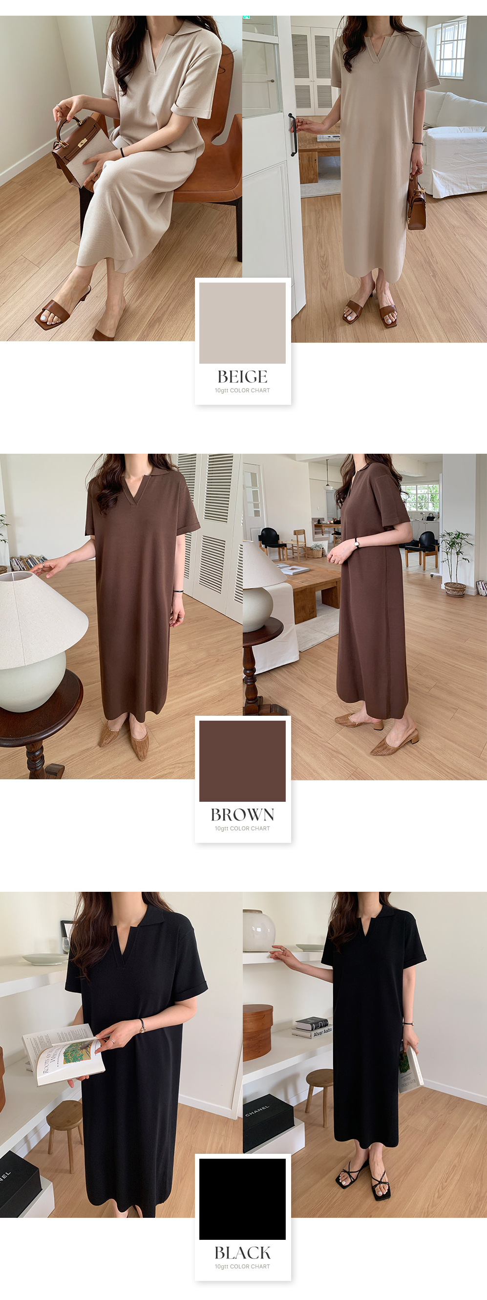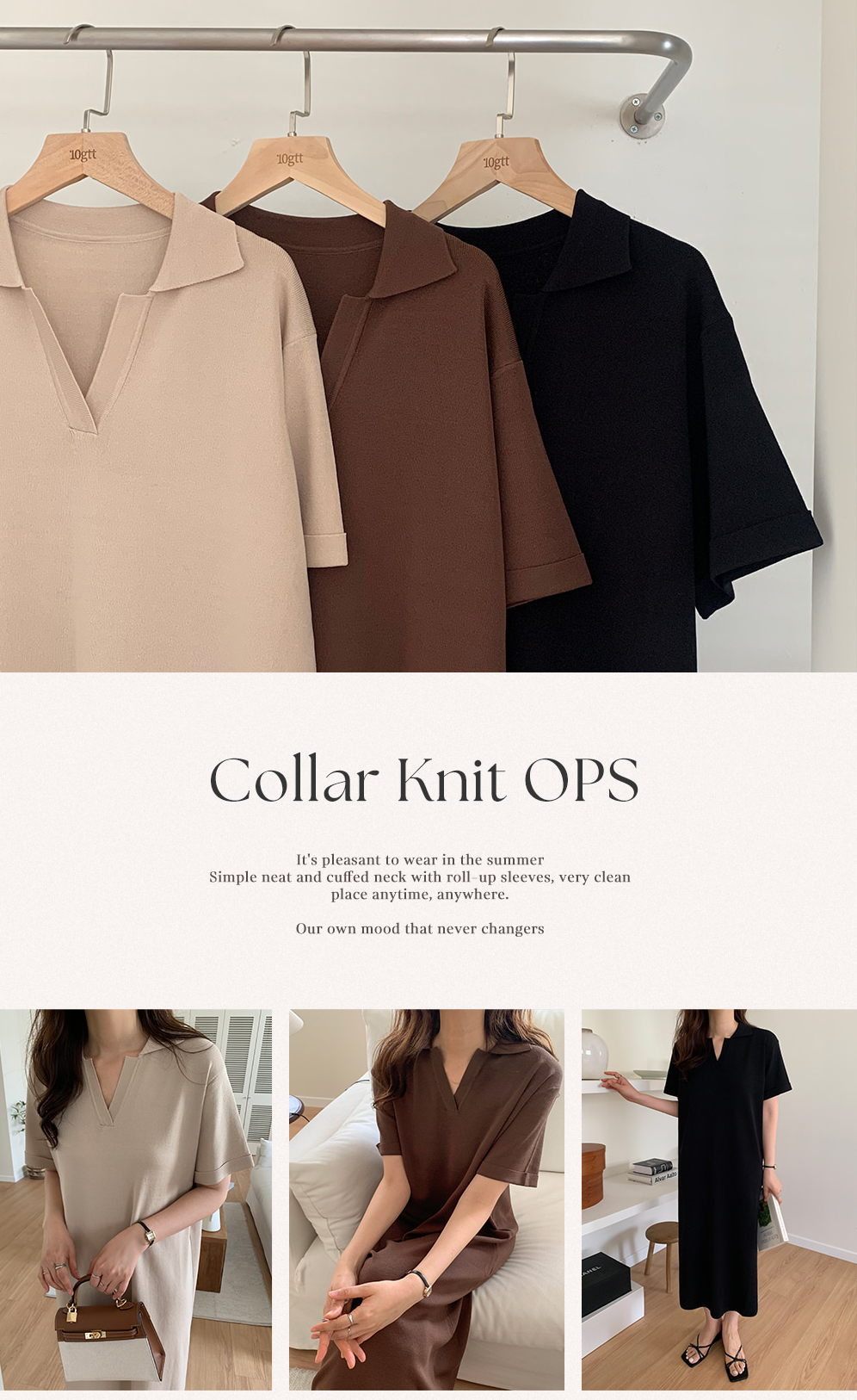 ルーズフィットカラーロールアップマキシニットロングワンピース