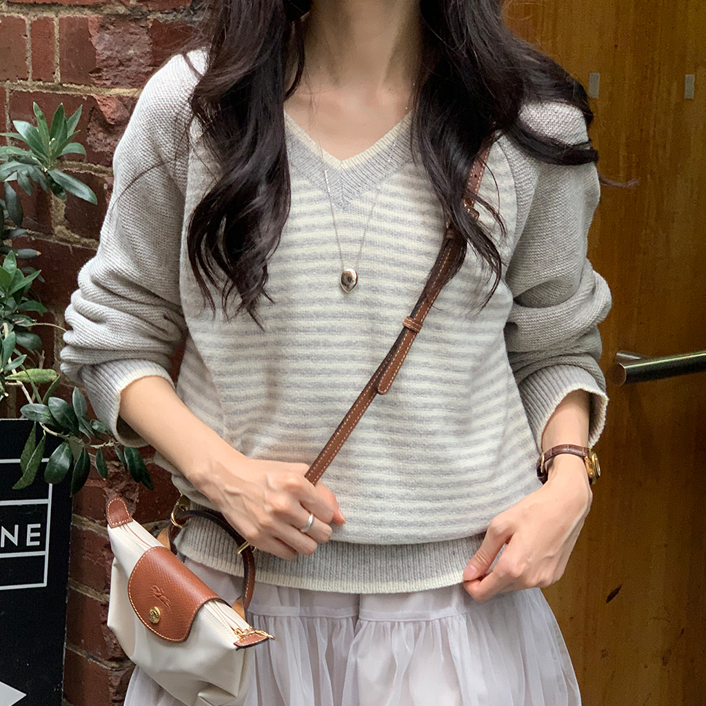 [original]ストライプVネックニット
