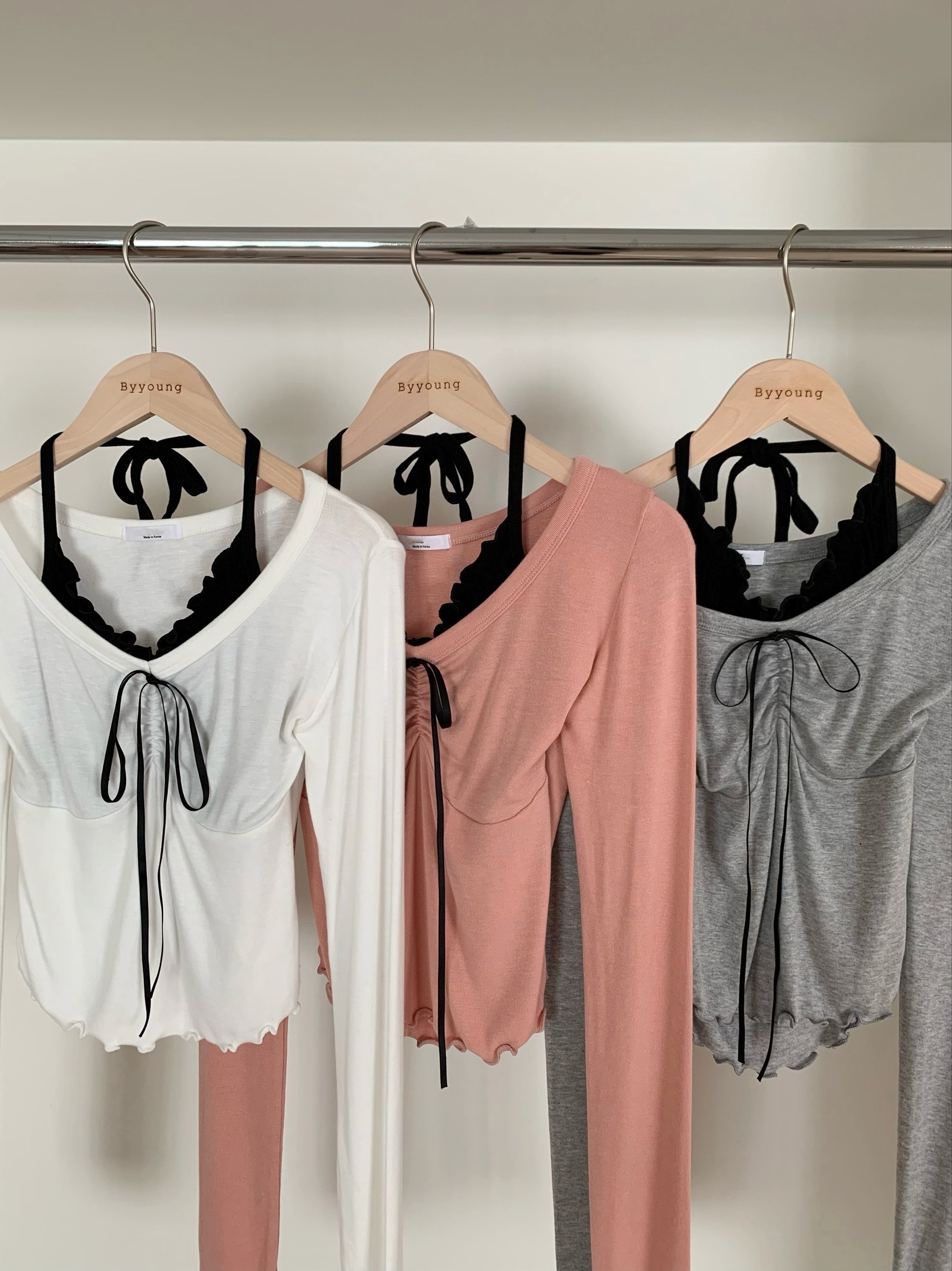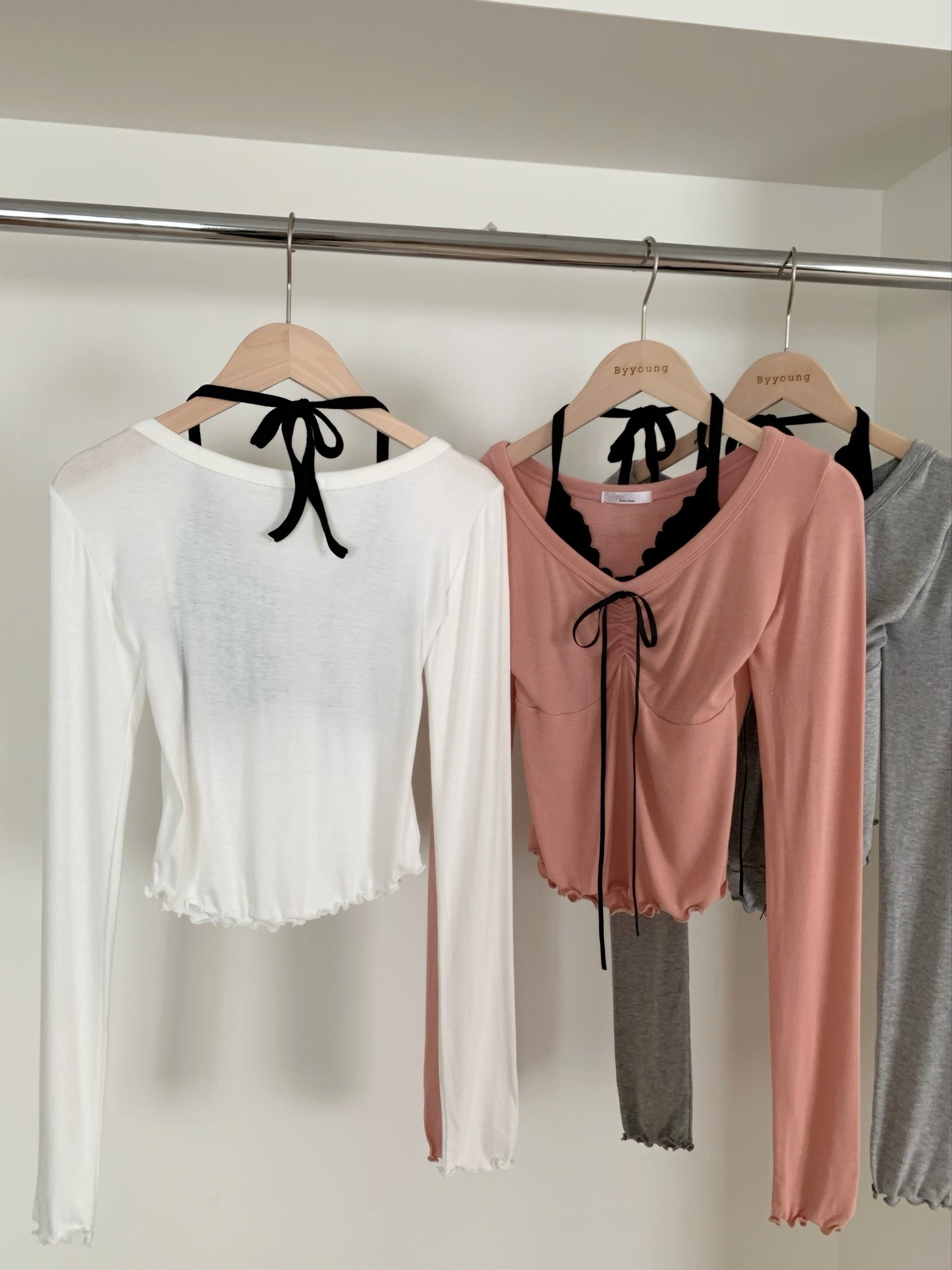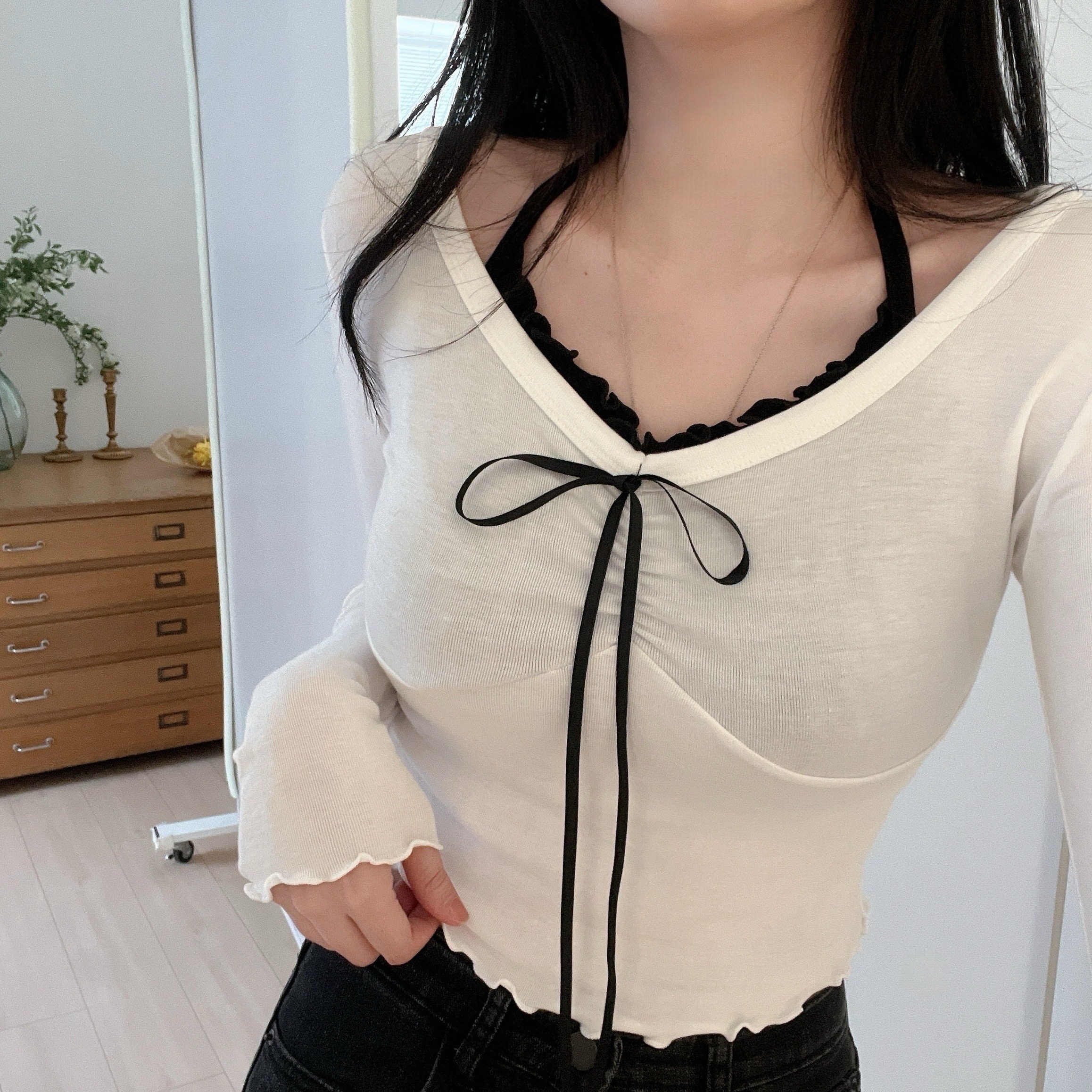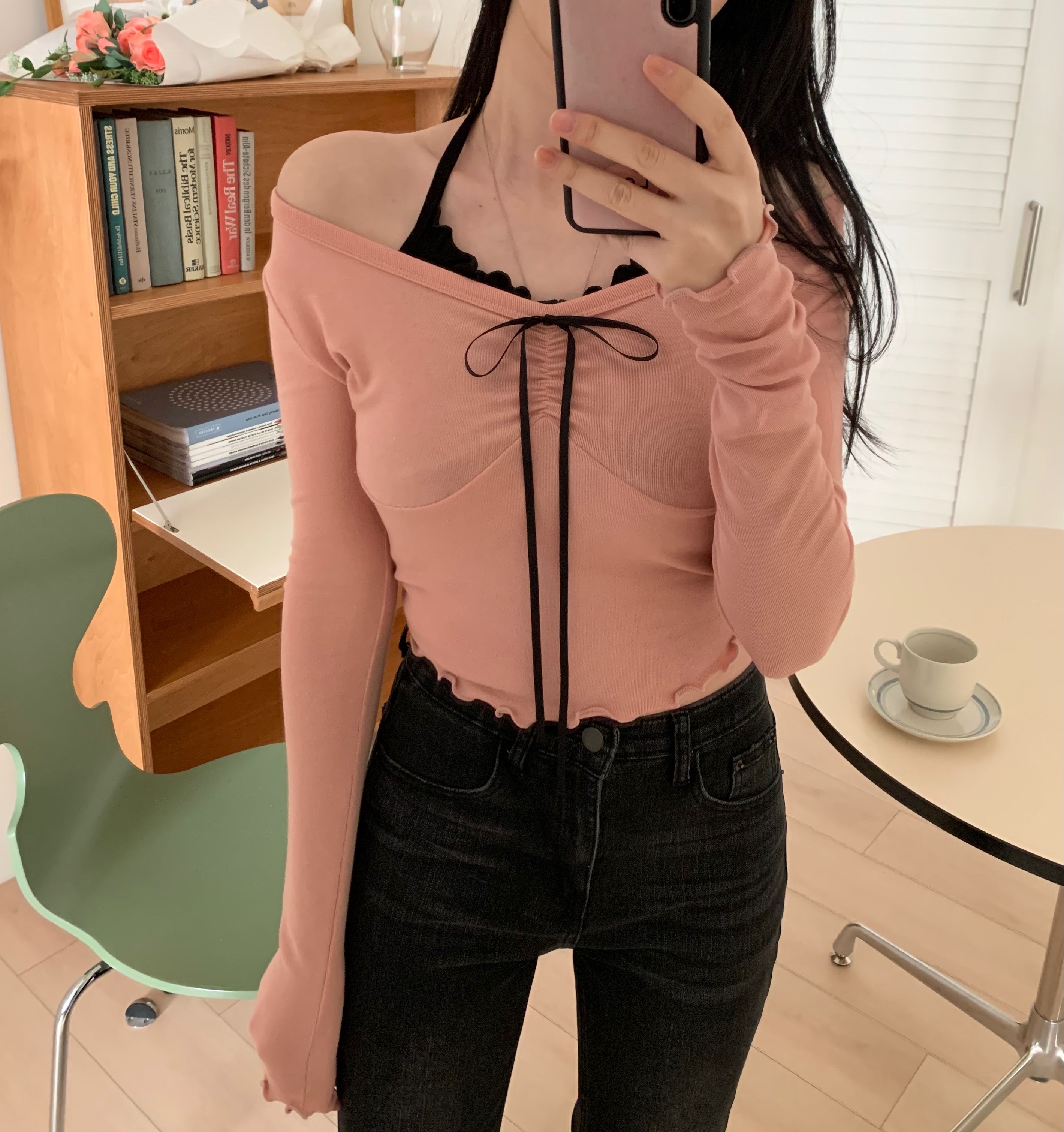 (3col) リボンホルターネックレイヤード長袖Tシャツ
