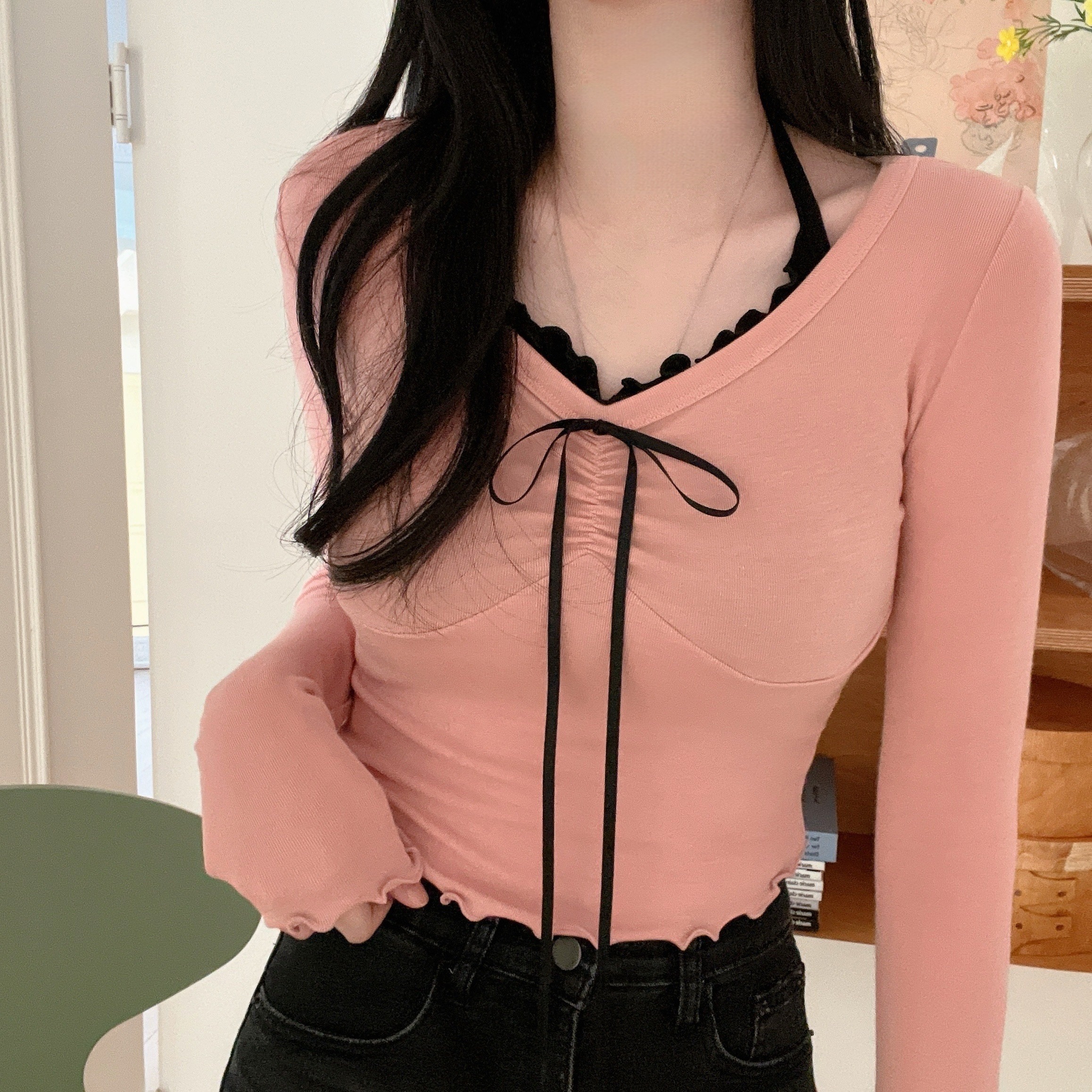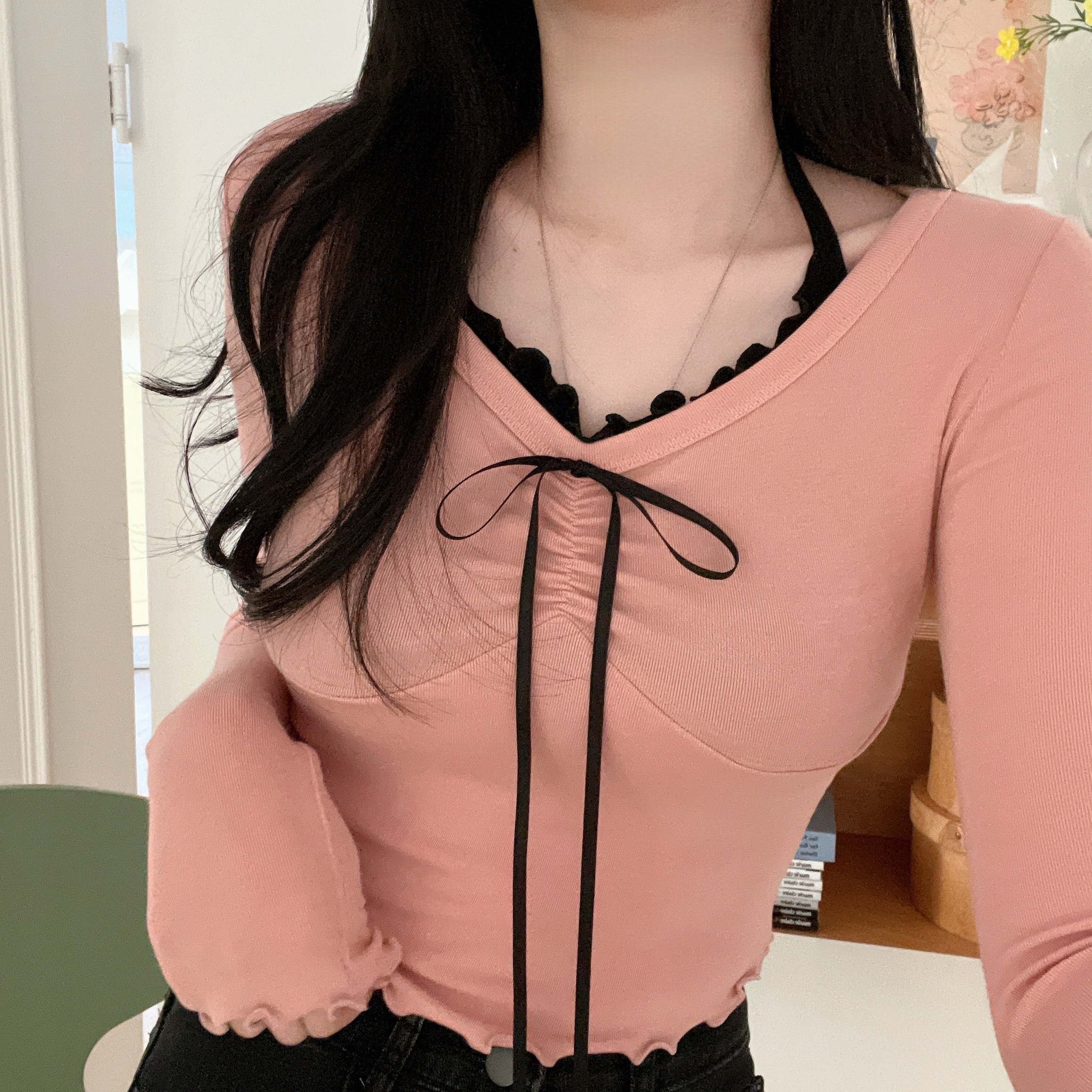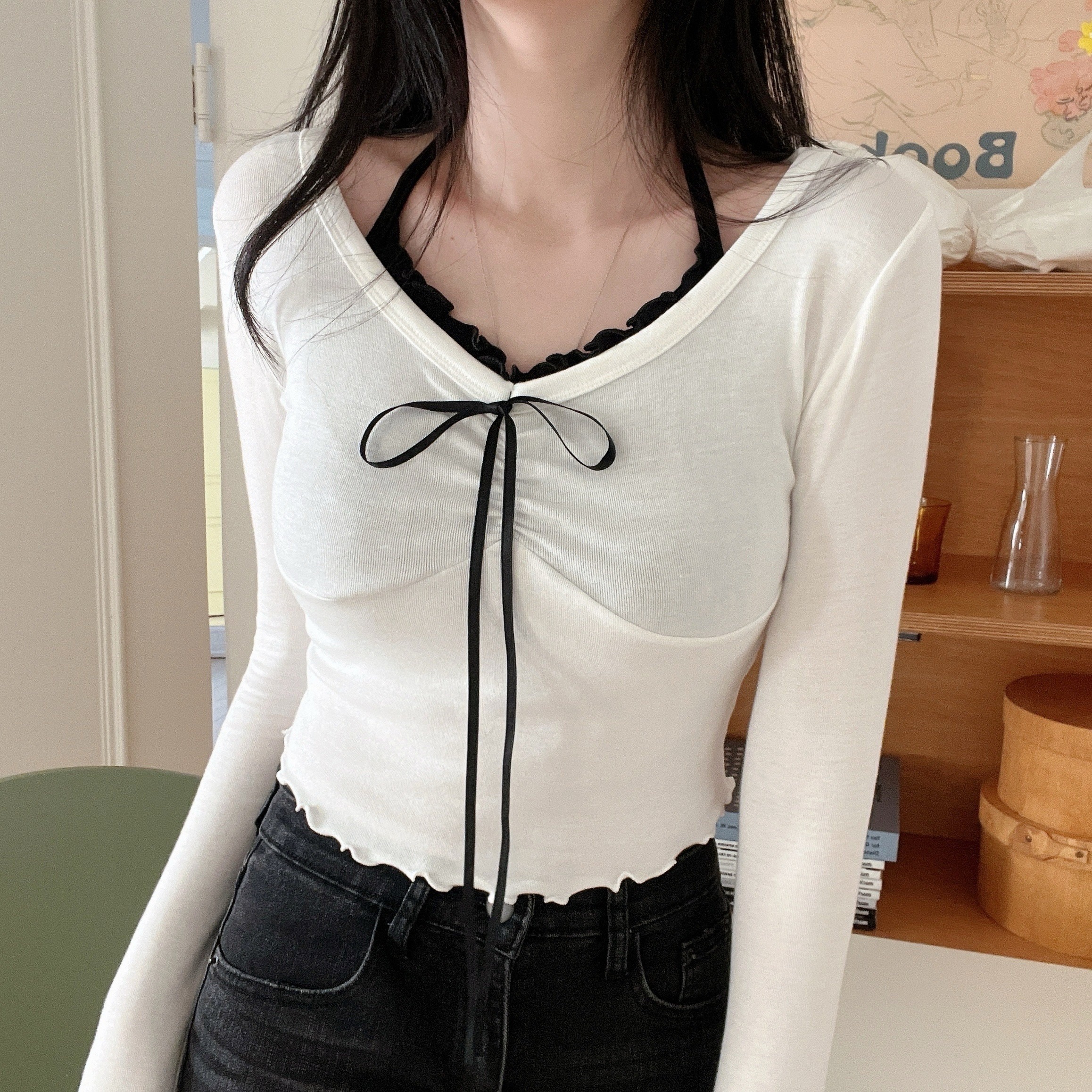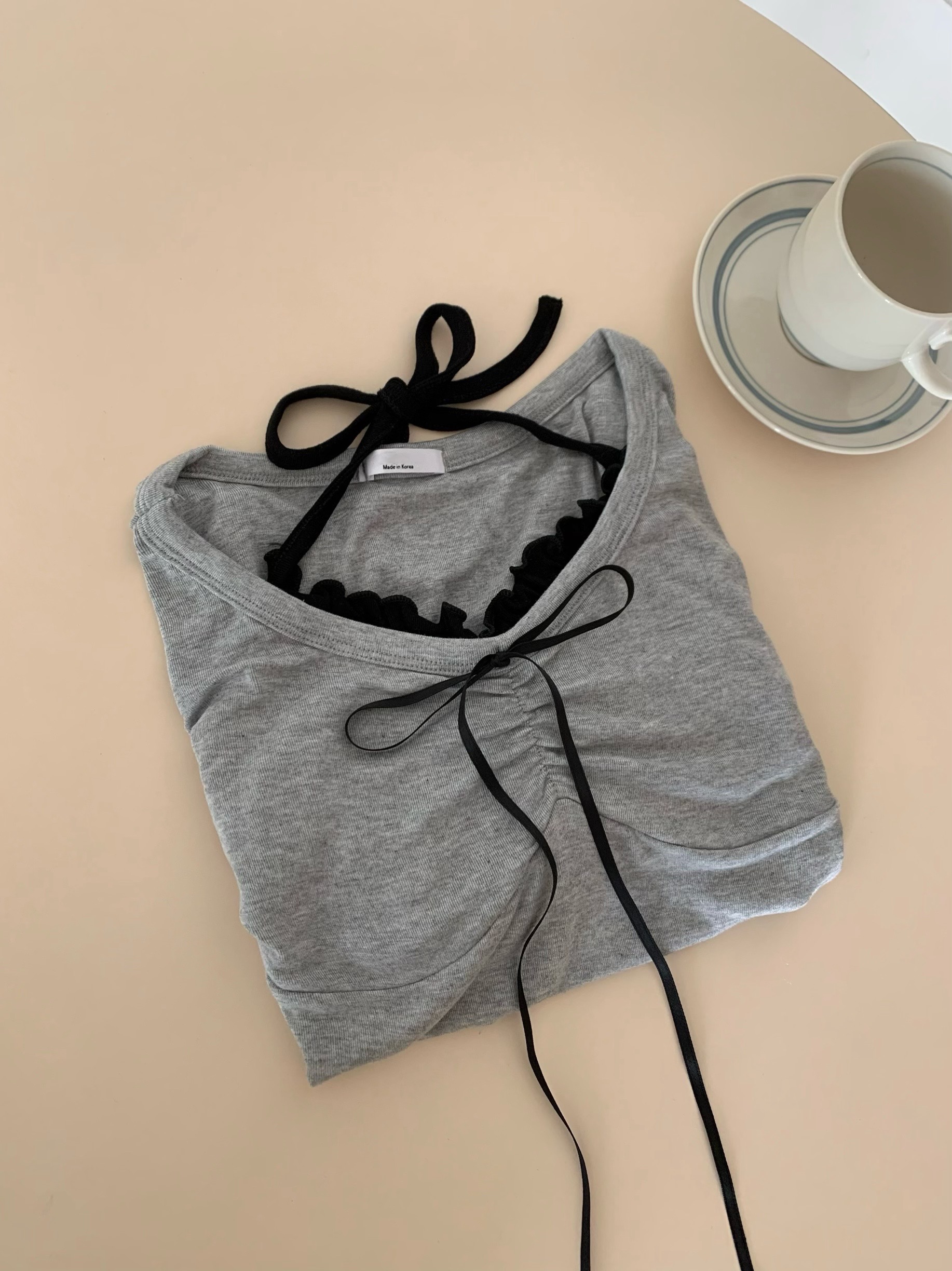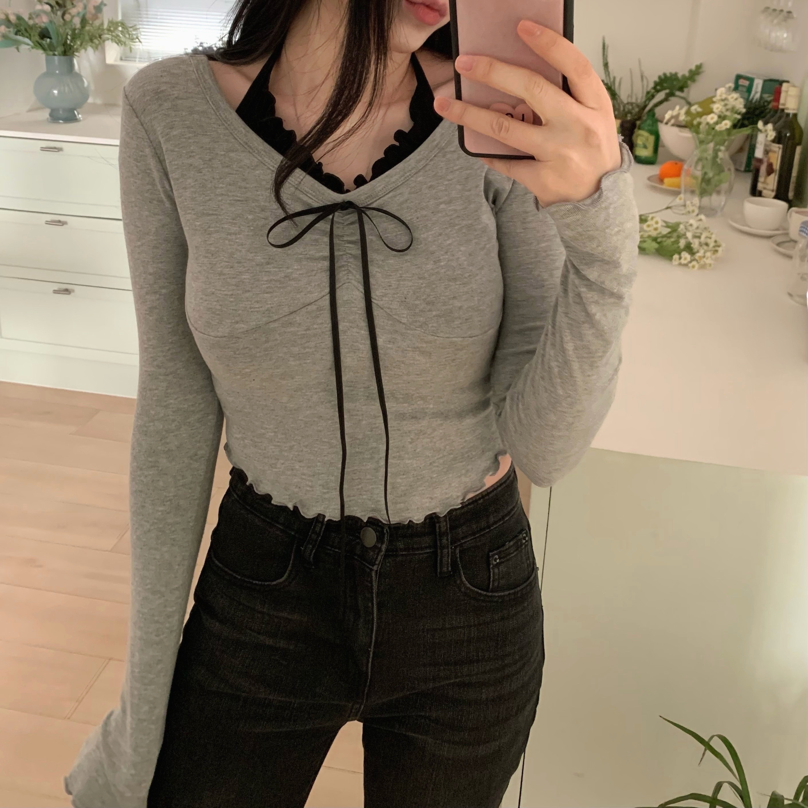 (3col) リボンホルターネックレイヤード長袖Tシャツ