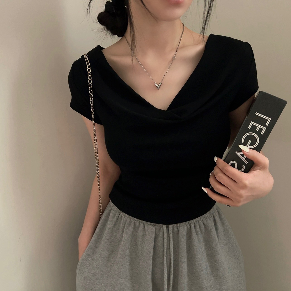 ドレープ半袖クロップドTシャツ