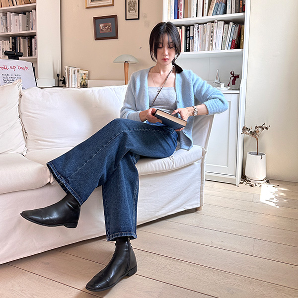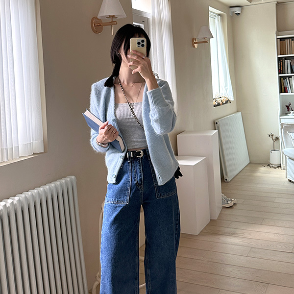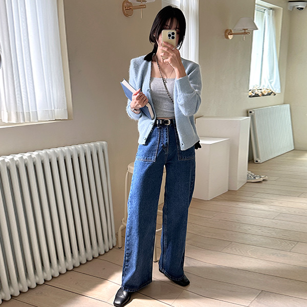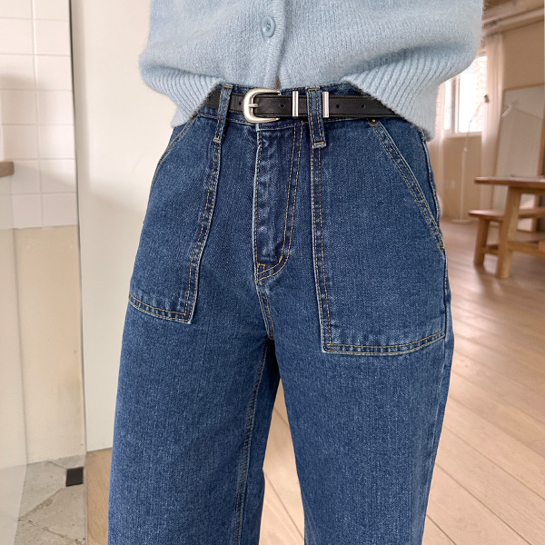 スクエアーポケットハイウエストストレートセミワイドデニムパンツ