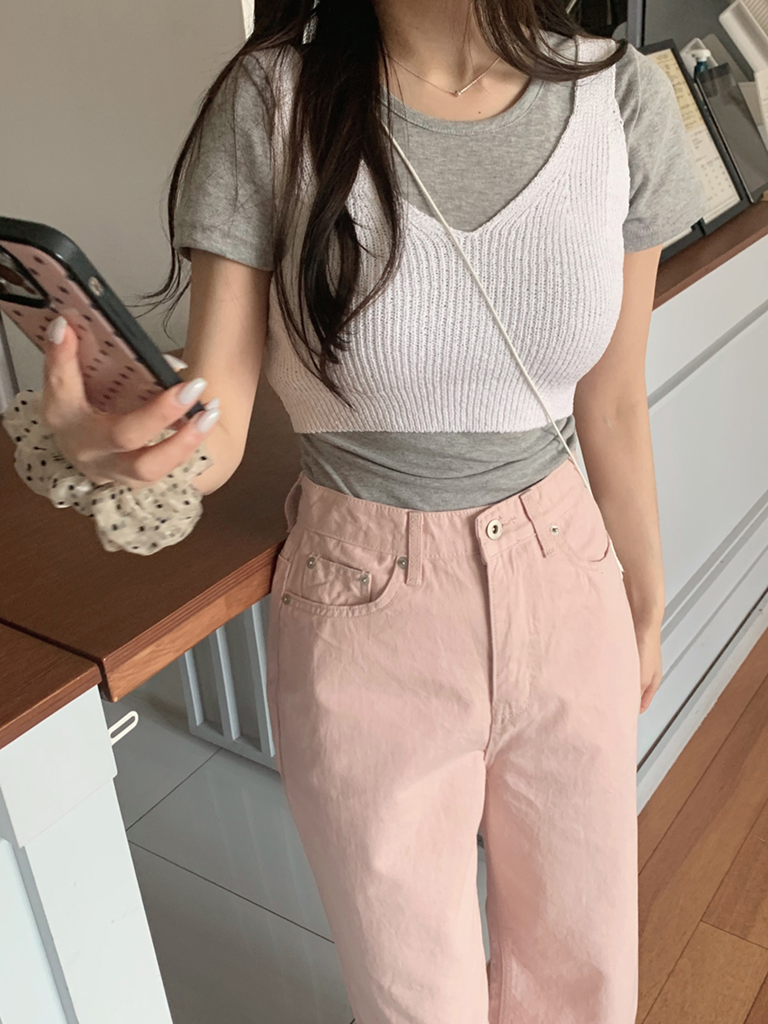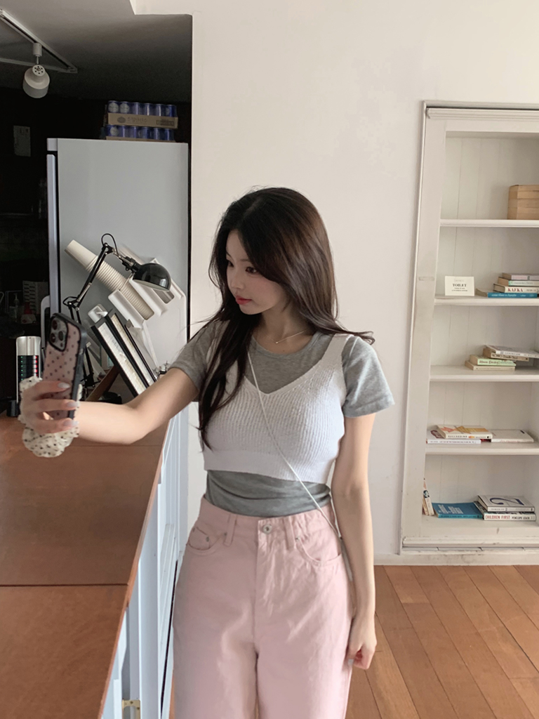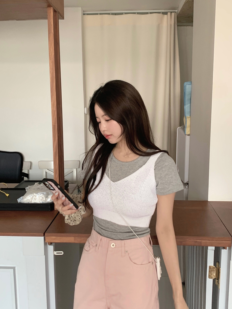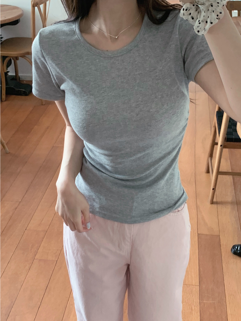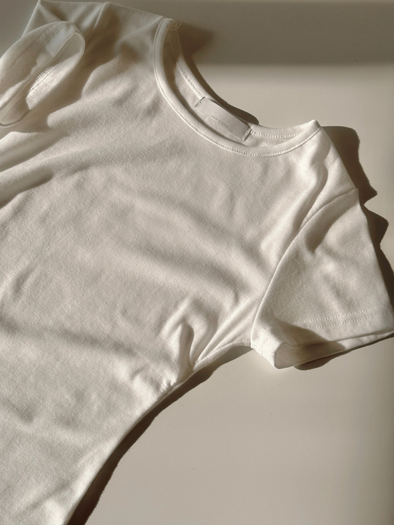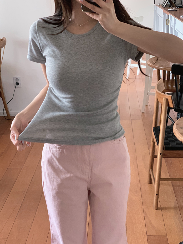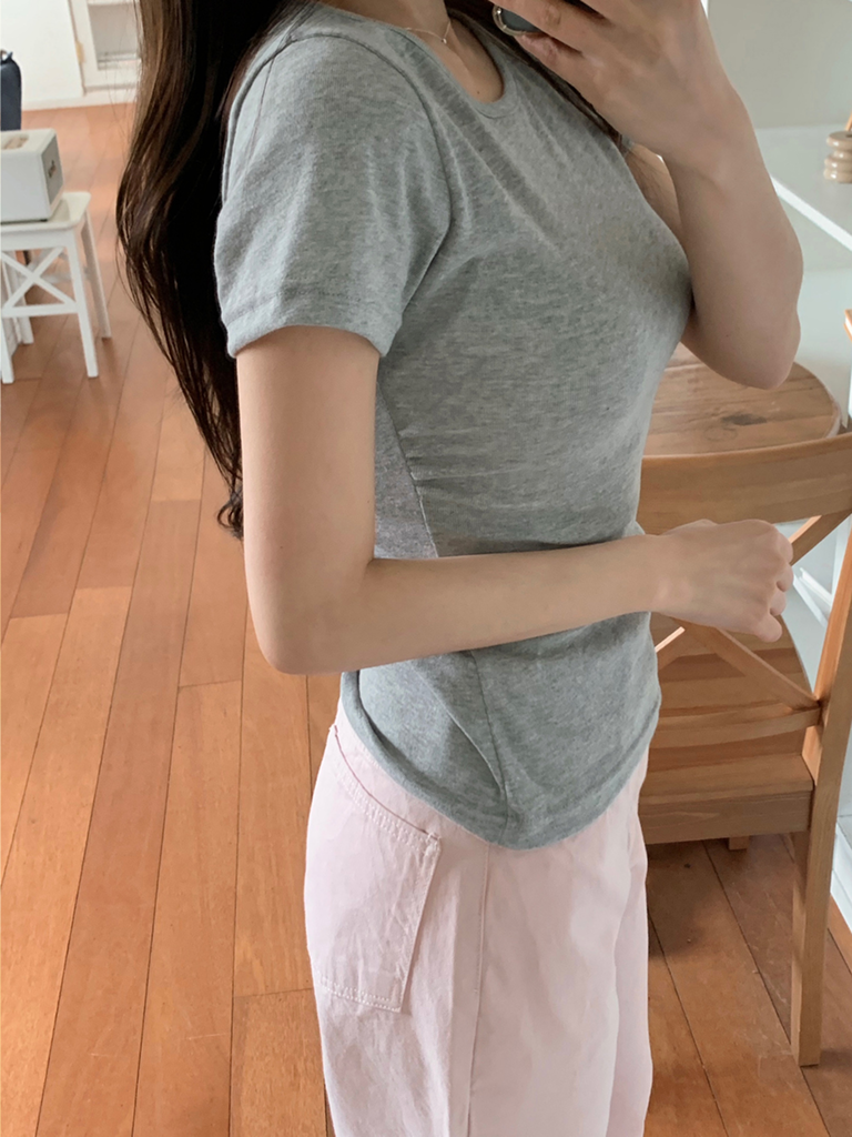 ラウンドサイドシャーリングスパン半袖Tシャツ