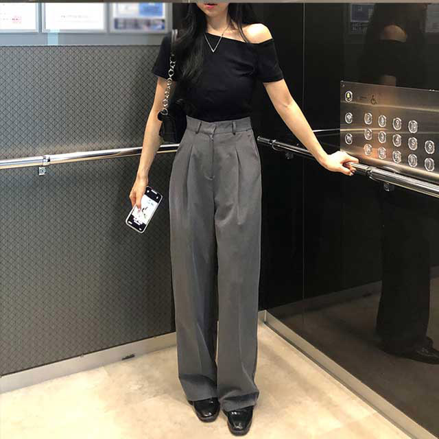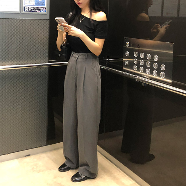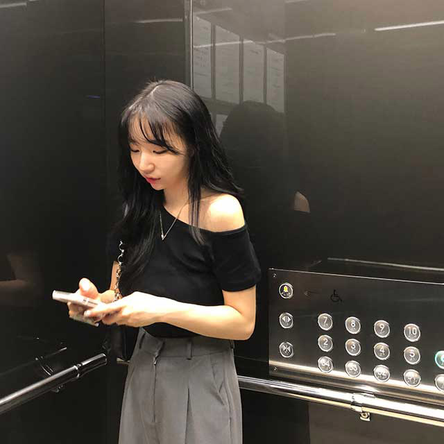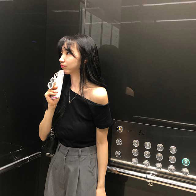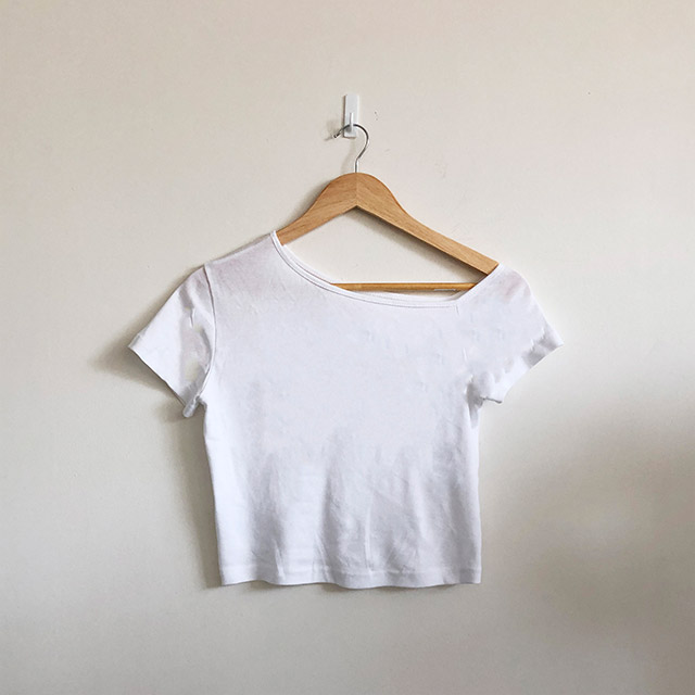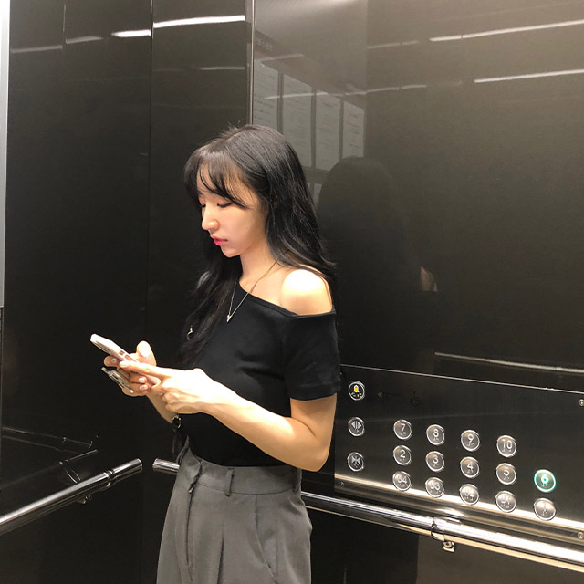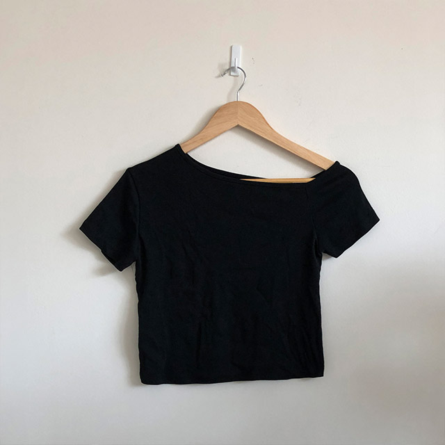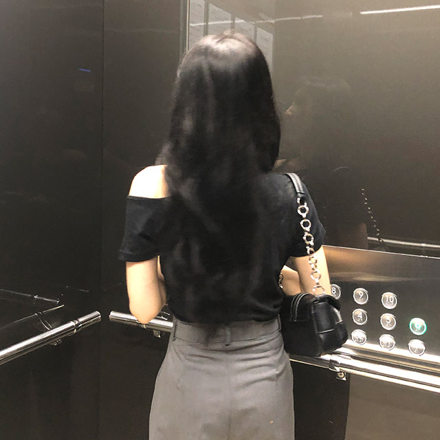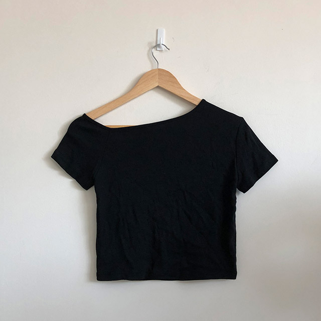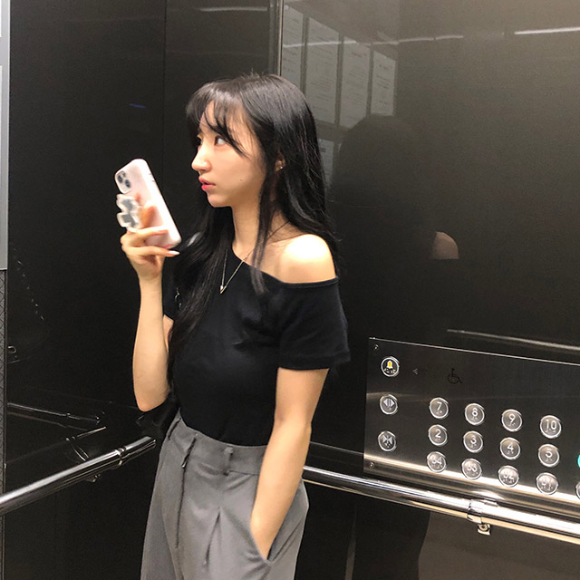 [2color]ハーフオフショルクロップド半袖Tシャツ