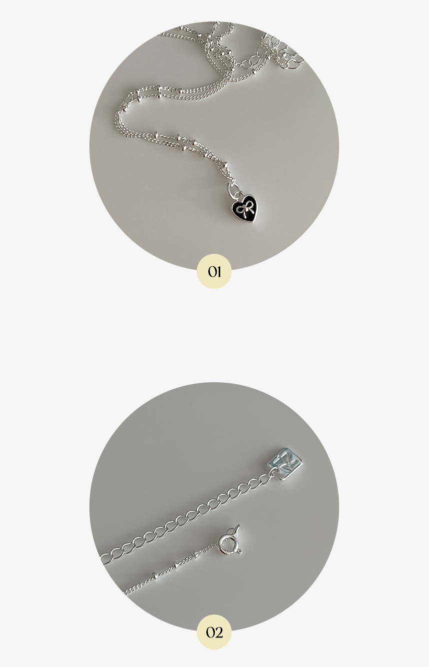 [シルバー92.5%] ミニブラックハートリボンネックレス(2color)