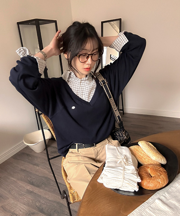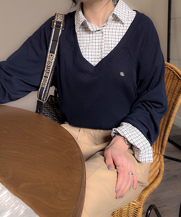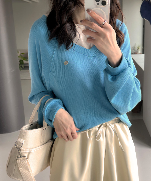 Vネックニットスウェットシャツ