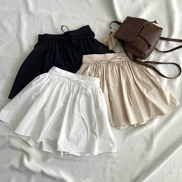 ストリングリボンフレアミニスカート(3color)