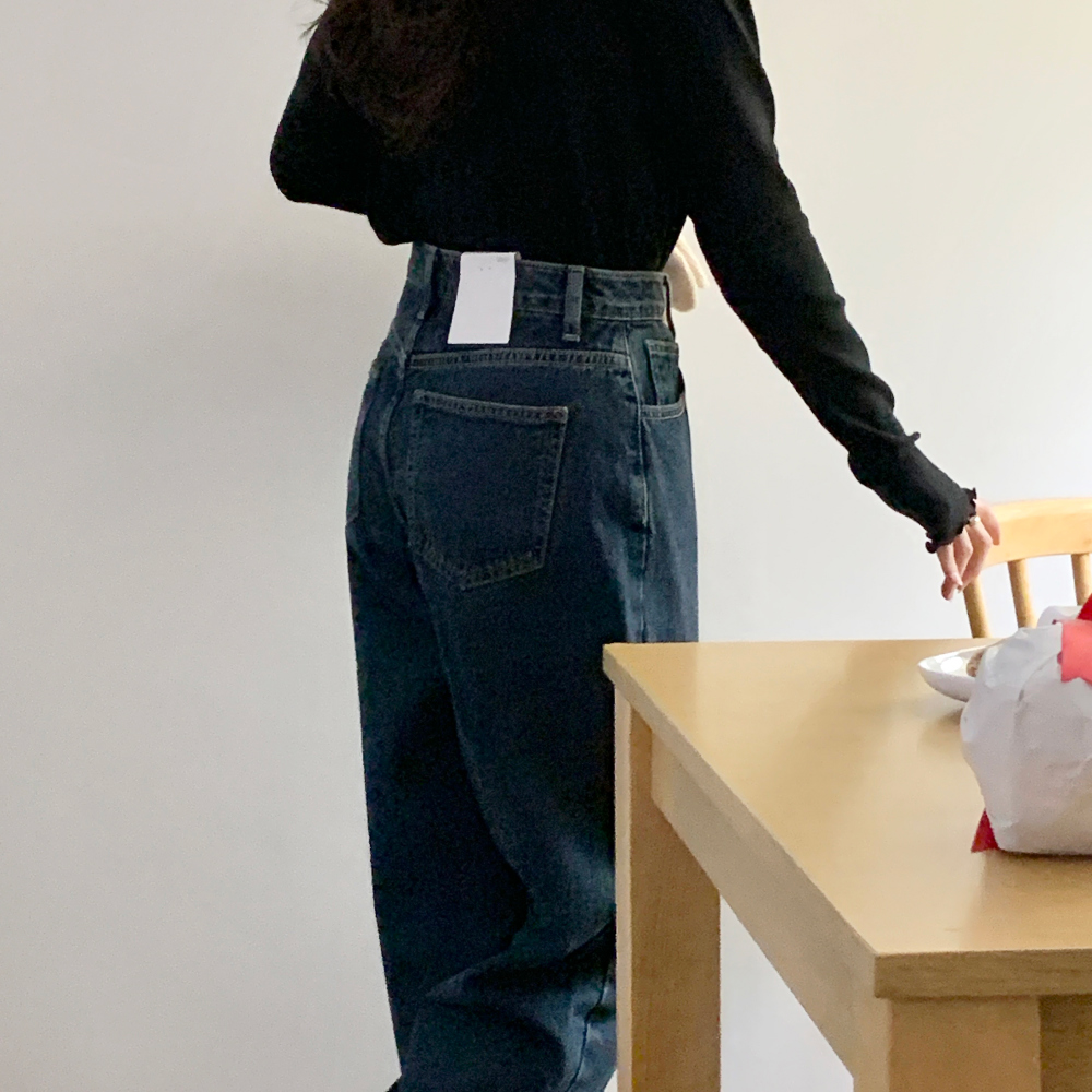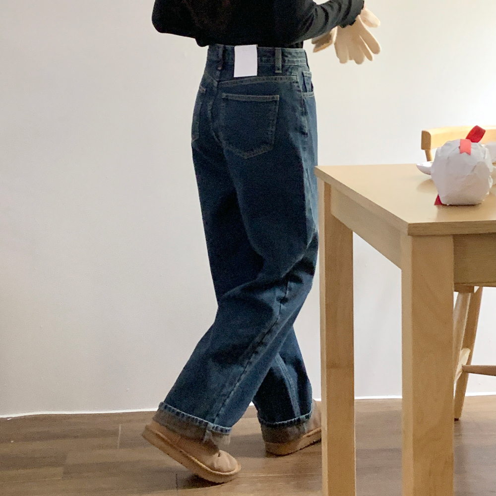 ハイウエストワイドウォッシュ裏起毛デニムパンツ