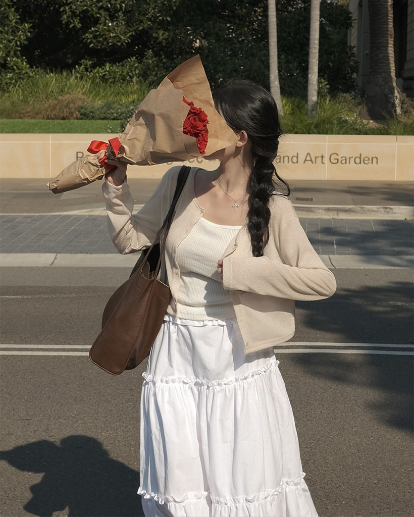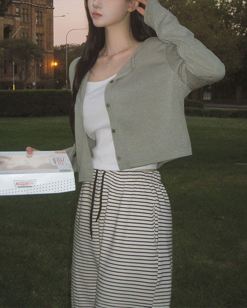 (ORIGINAL) ネイチャー、ブクルラウンドネックカーディガン