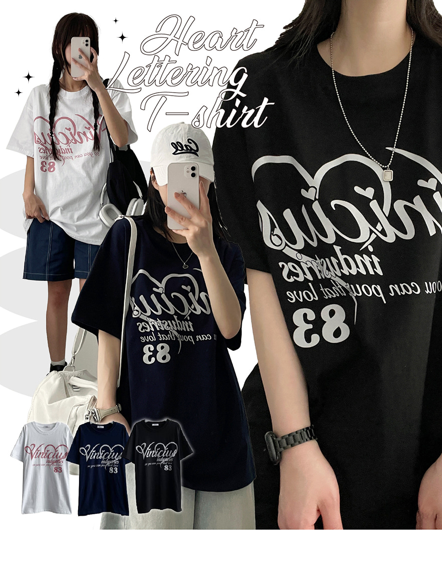 ハートプリントオーバーサイズ半袖Tシャツ