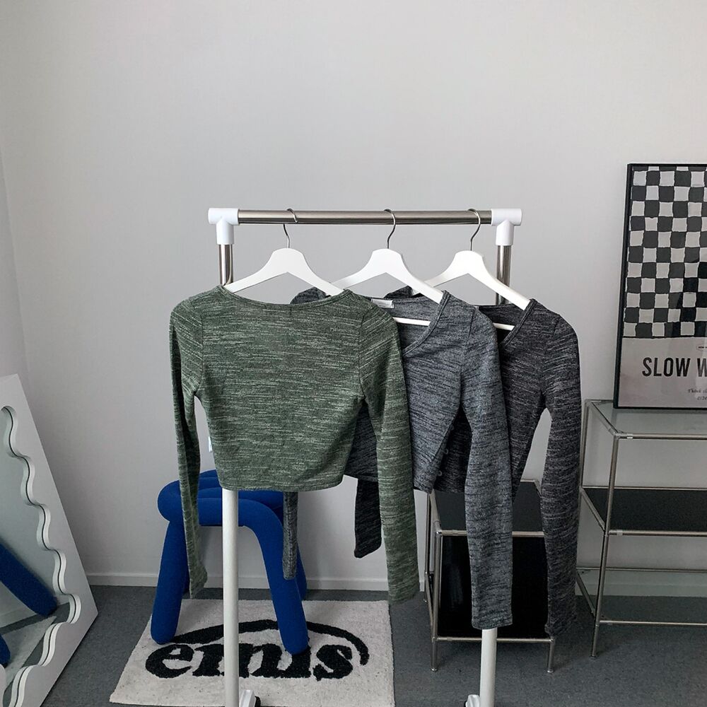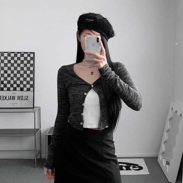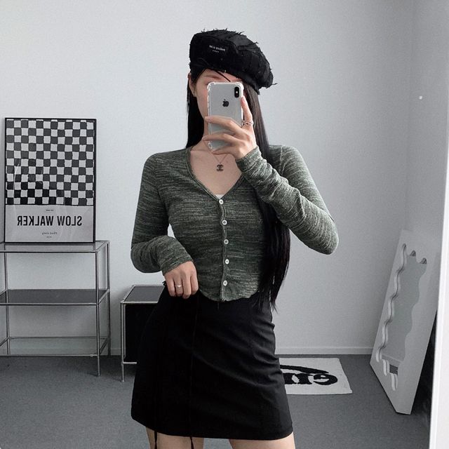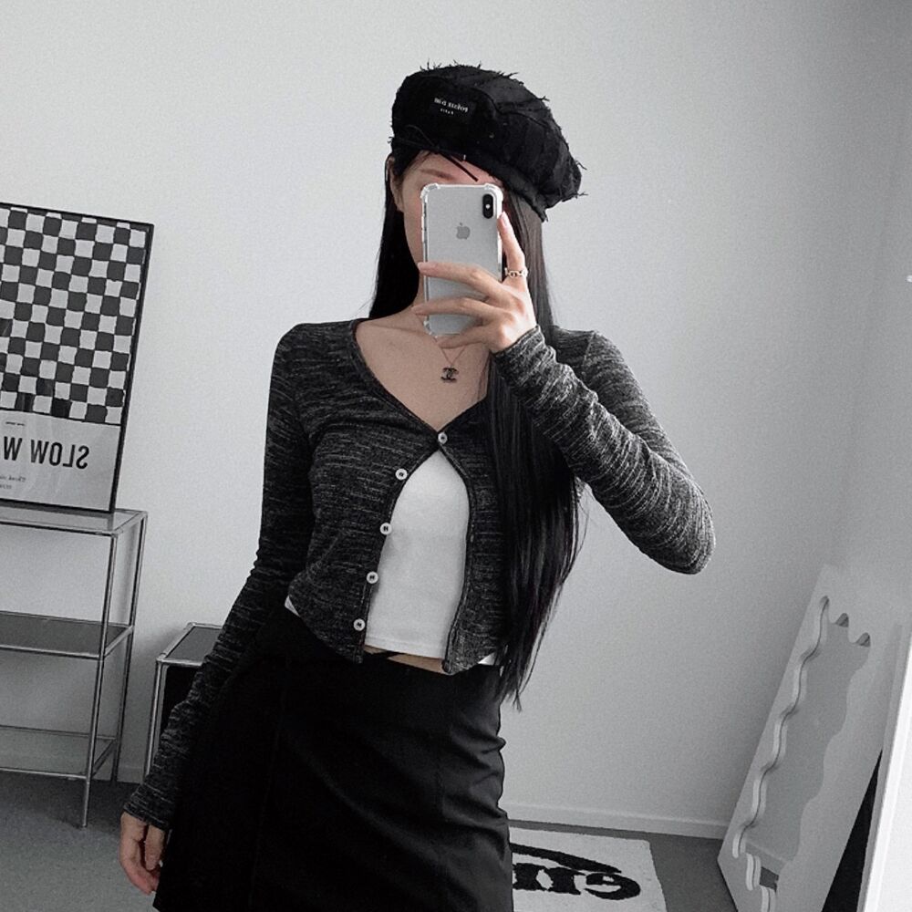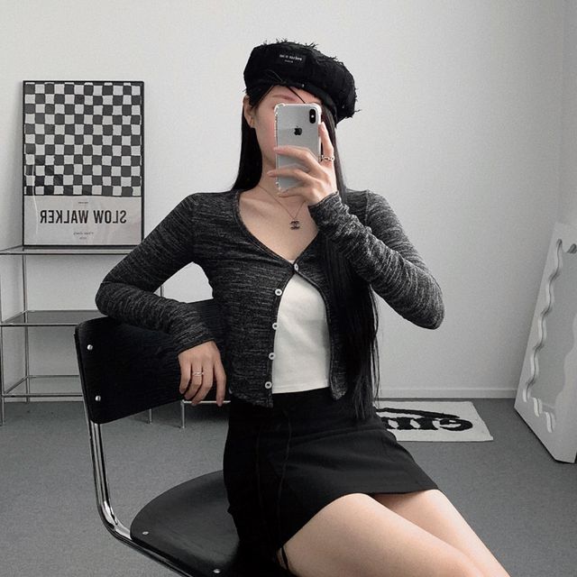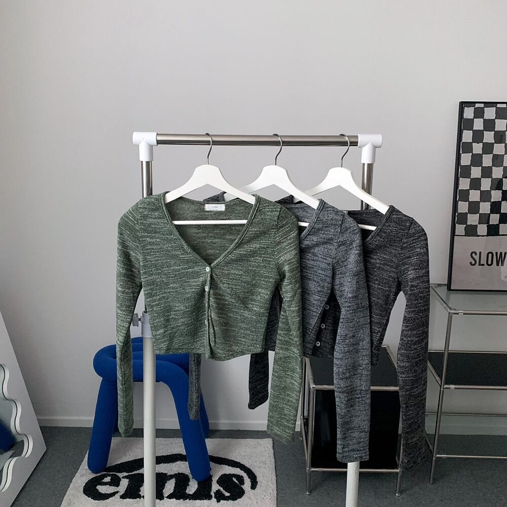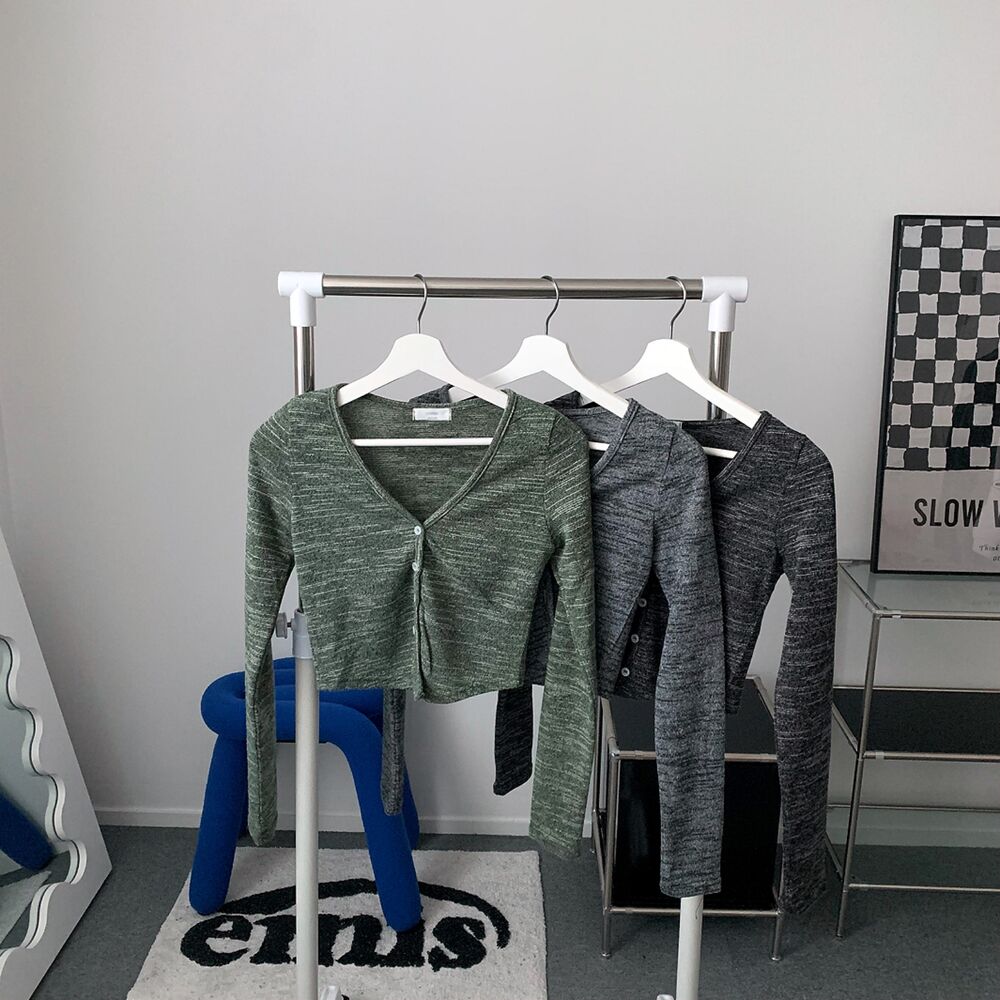 スリムメランジクロップドボタンVネックカーディガン(3color)
