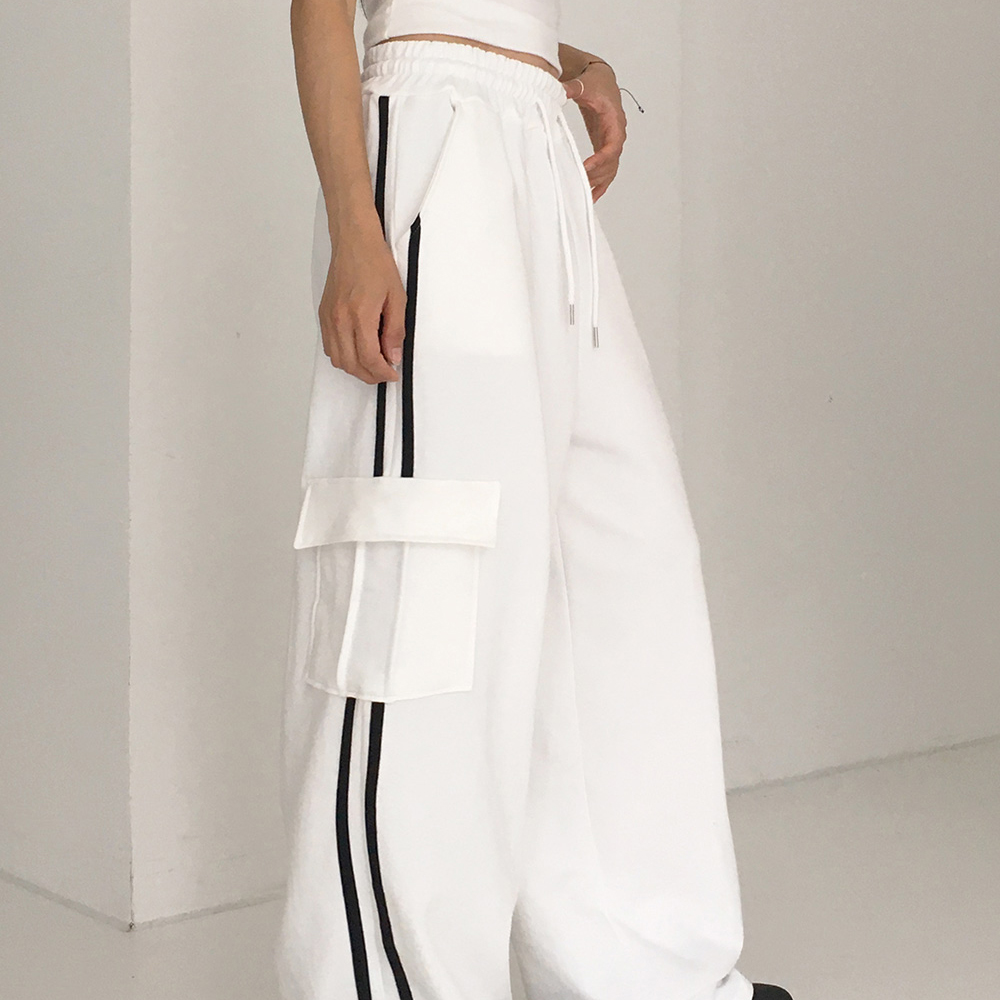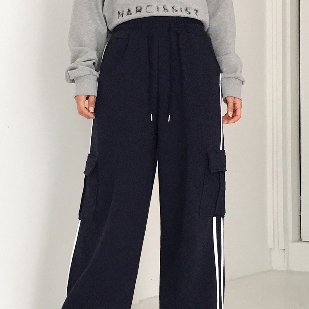 トラックバイカラーカーゴポケットパイルトレーニングパンツ