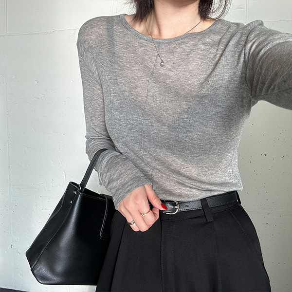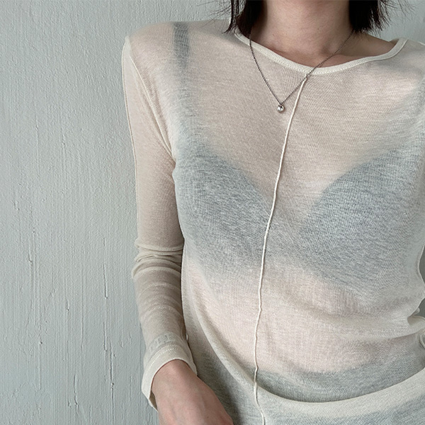 ウールテンセルシースルースリット長袖Tシャツインナー