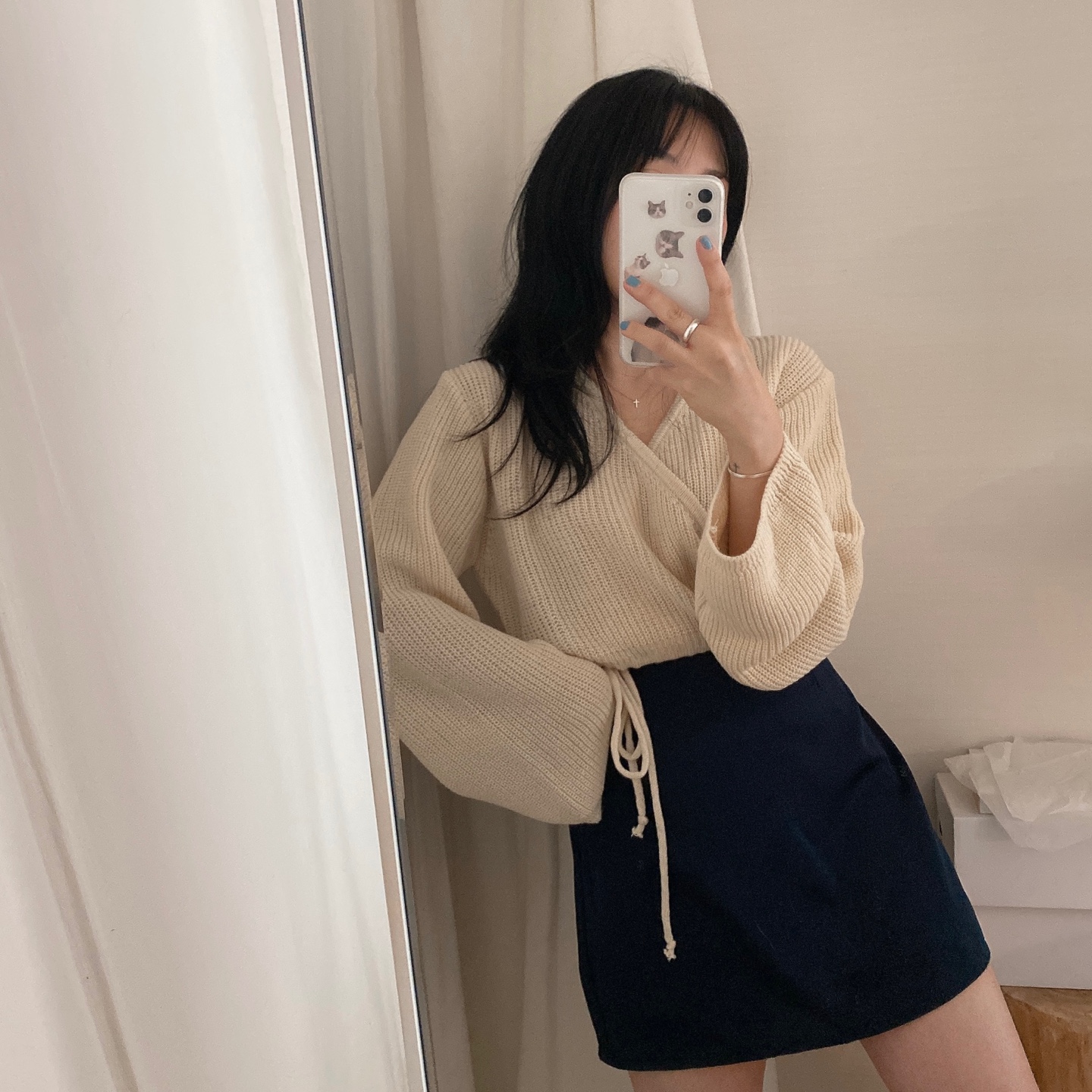 ラップVネックボレロリボンニット