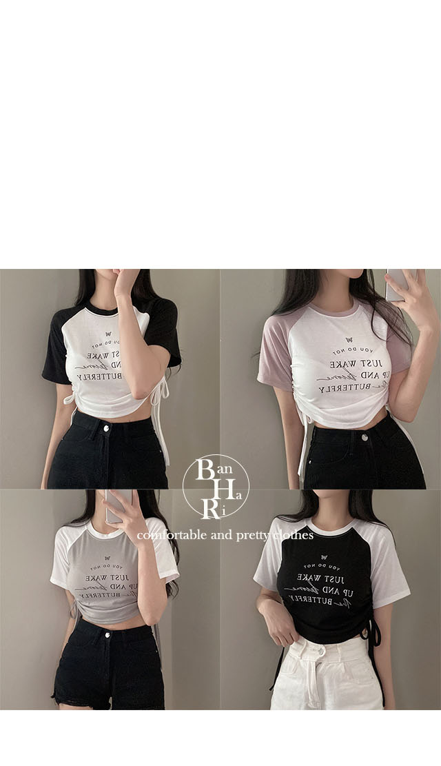 ラグランクロップドラウンドストリング半袖Tシャツ