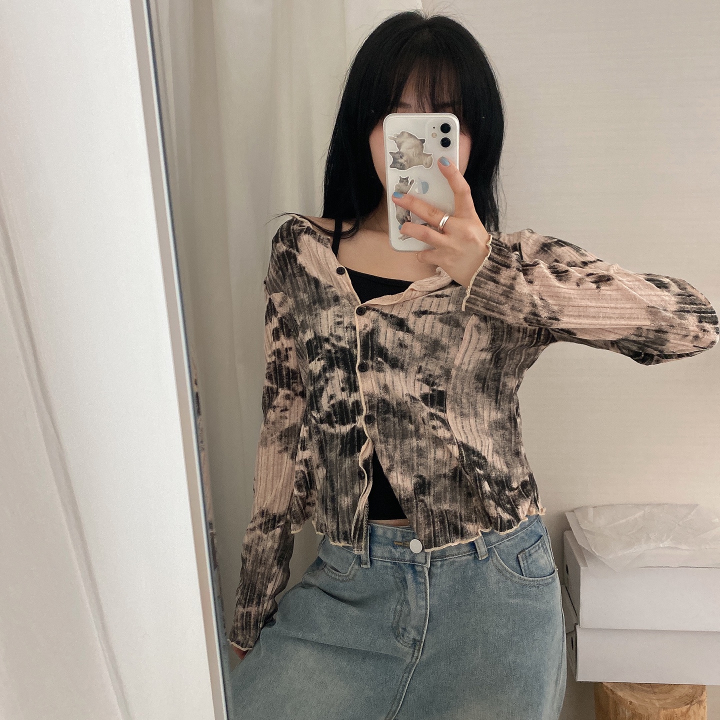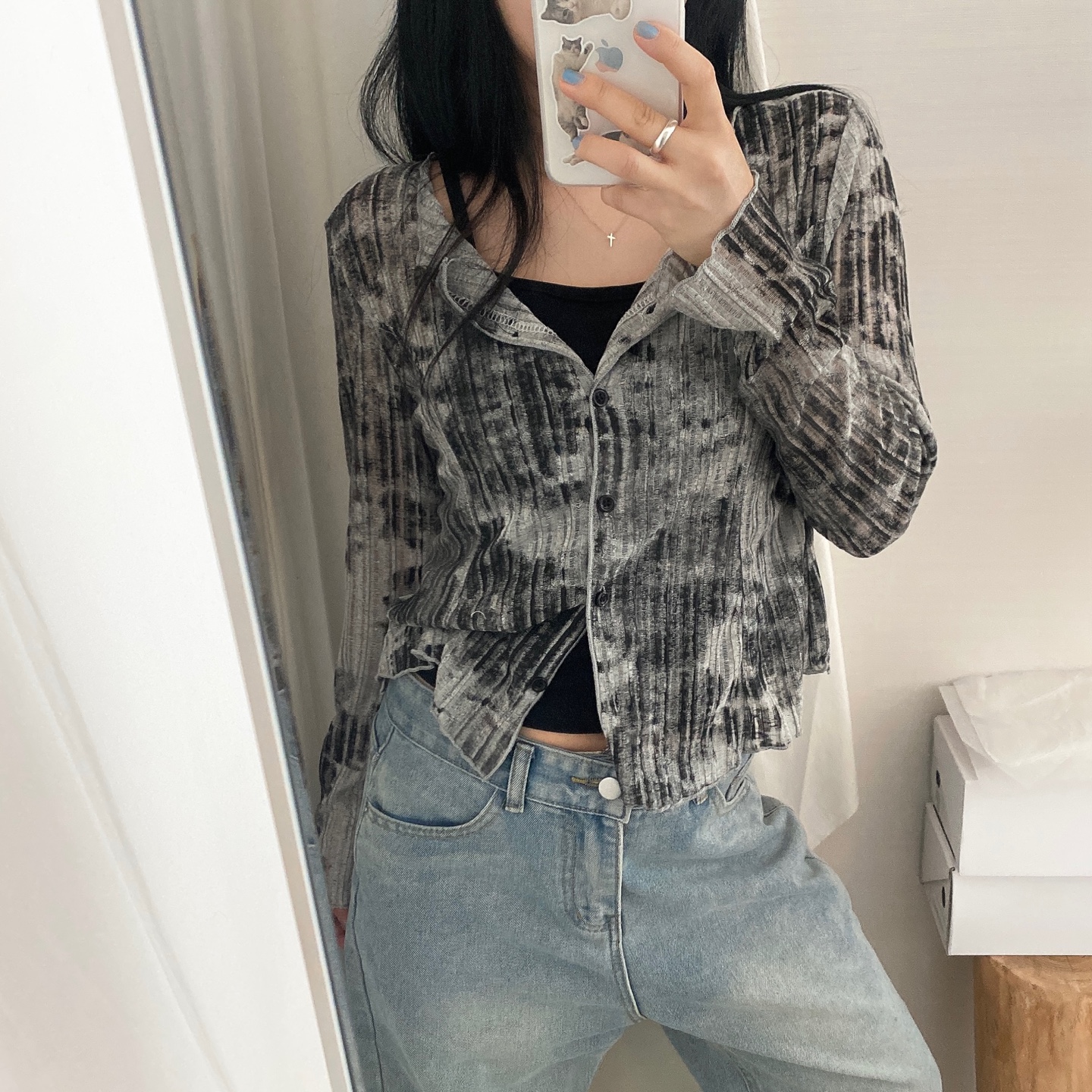 [SET] タイダイ捺染ウェーブボタンカーディガン&ノースリーブセット