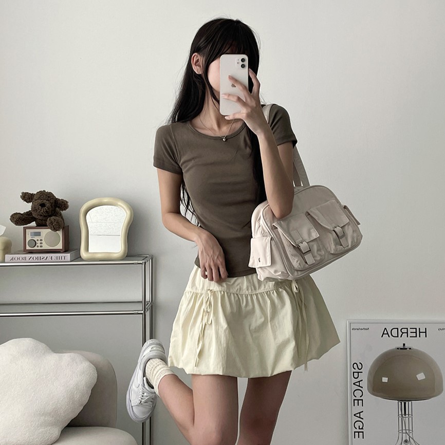 ナイロン裏バンディングリボンミニスカート (3color)